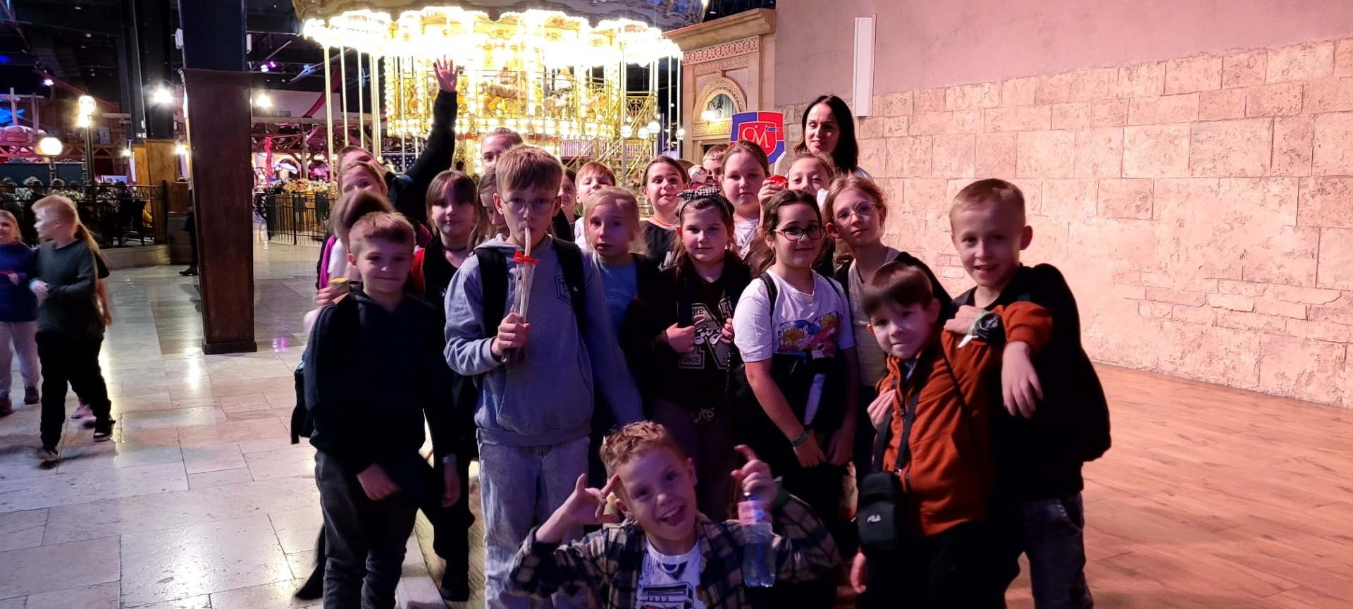 Dnia 15 listopada uczniowie klasy 4a z wychowawczynią Julitą Muszalską oraz panem Markiem Nowickim udali się do parku rozrywki Mandoria, aby wziąć udział w warsztatach w ramach projektu edukcyjnego „Bezpiecznie w szkole i po szkole”. Projekt objęty patronatem przez Inspekcję Transportu Drogowego miał na celu poprawę bezpieczeństwa dzieci ze szkół podstawowych poprzez zwiększenie ich wiedzy na temat zagrożeń mogących wystąpić w ich otoczeniu-zarówno w drodze do szkoły, jak i poza nią. Liczba miejsc w projekcie była ograniczona, nam się jednak udało. Oprócz udziału w warsztatach dzieci mogły korzystać bez ograniczeń ze wszystkich atrakcji parku: karuzeli, roller costerów, zjeżdżalni, małpiego gaju itp. Po wspólnej zabawie czekał pyszny obiad. Pełni wrażeń szczęśliwie wróciliśmy do domów.