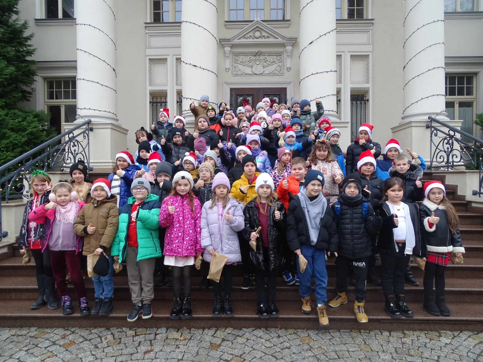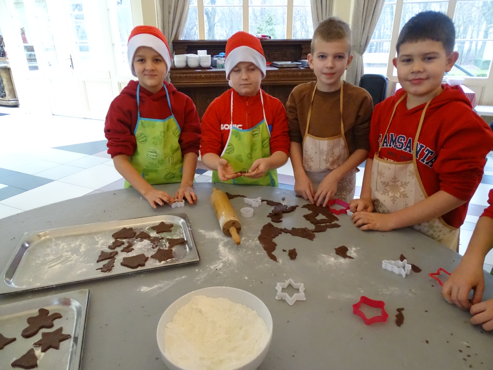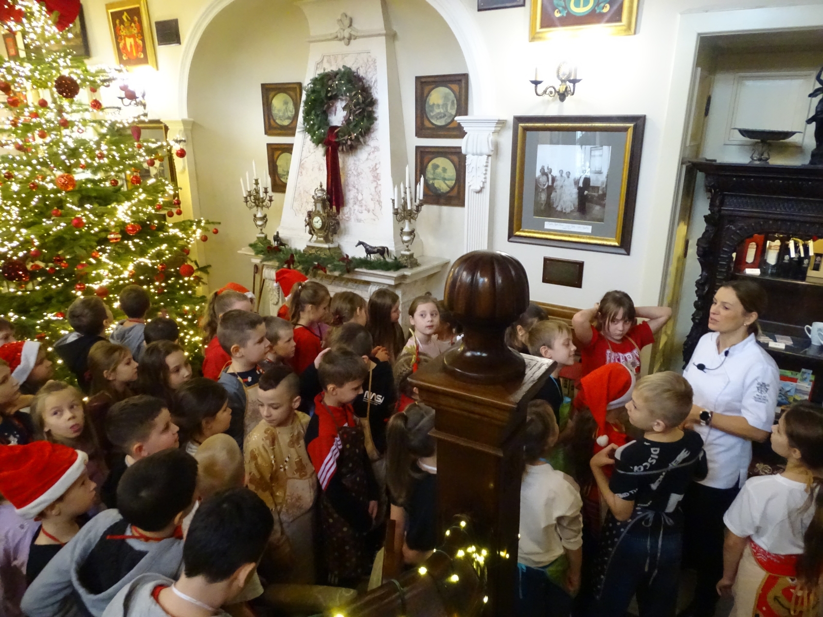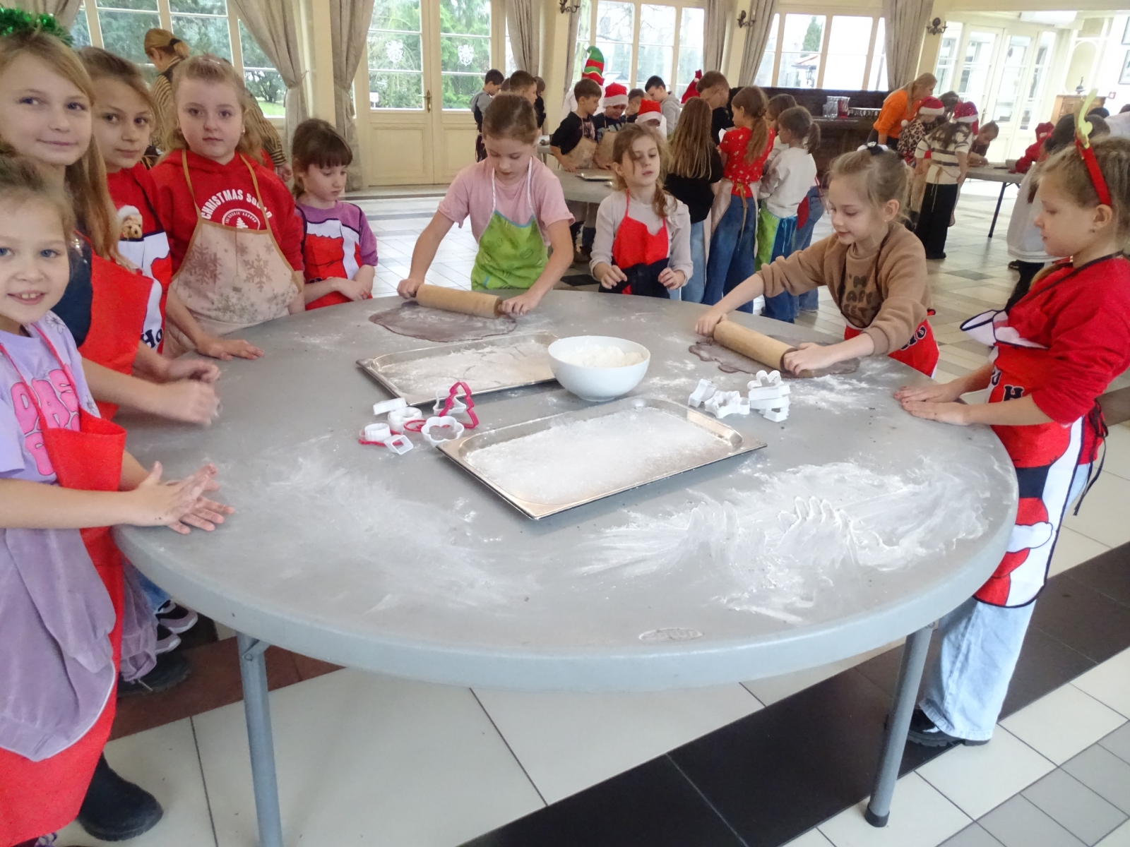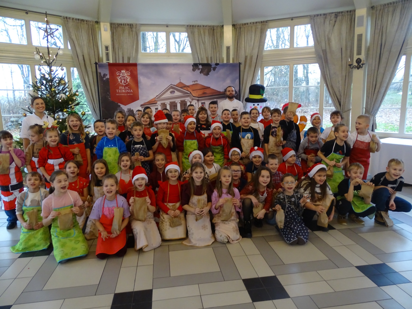 05 grudnia 2025r. uczniowie klas drugich wzięli udział w wyjątkowych warsztatach zorganizowanych w Pałacu w Tłokini Kościelnej. Już od pierwszych chwil uczniów zachwycił niezwykły, świąteczny klimat pałacu. Bajkowa sceneria i piękne dekoracje sprawiły, że dzieci przeniosły się w wyjątkowy, magiczny świat Bożego Narodzenia. Na początku naszych zajęć dzieci poznały historię pierników, tradycyjną recepturę ich wypieku, a także wielozmysłowo odkrywały składniki potrzebne do przygotowania ciasta piernikowego. Następnie samodzielnie wyrabiały, formowały i dekorowały pierniki, rozwijając swoje umiejętności kulinarne oraz kreatywność, przy okazji świetnie się przy tym bawiąc.