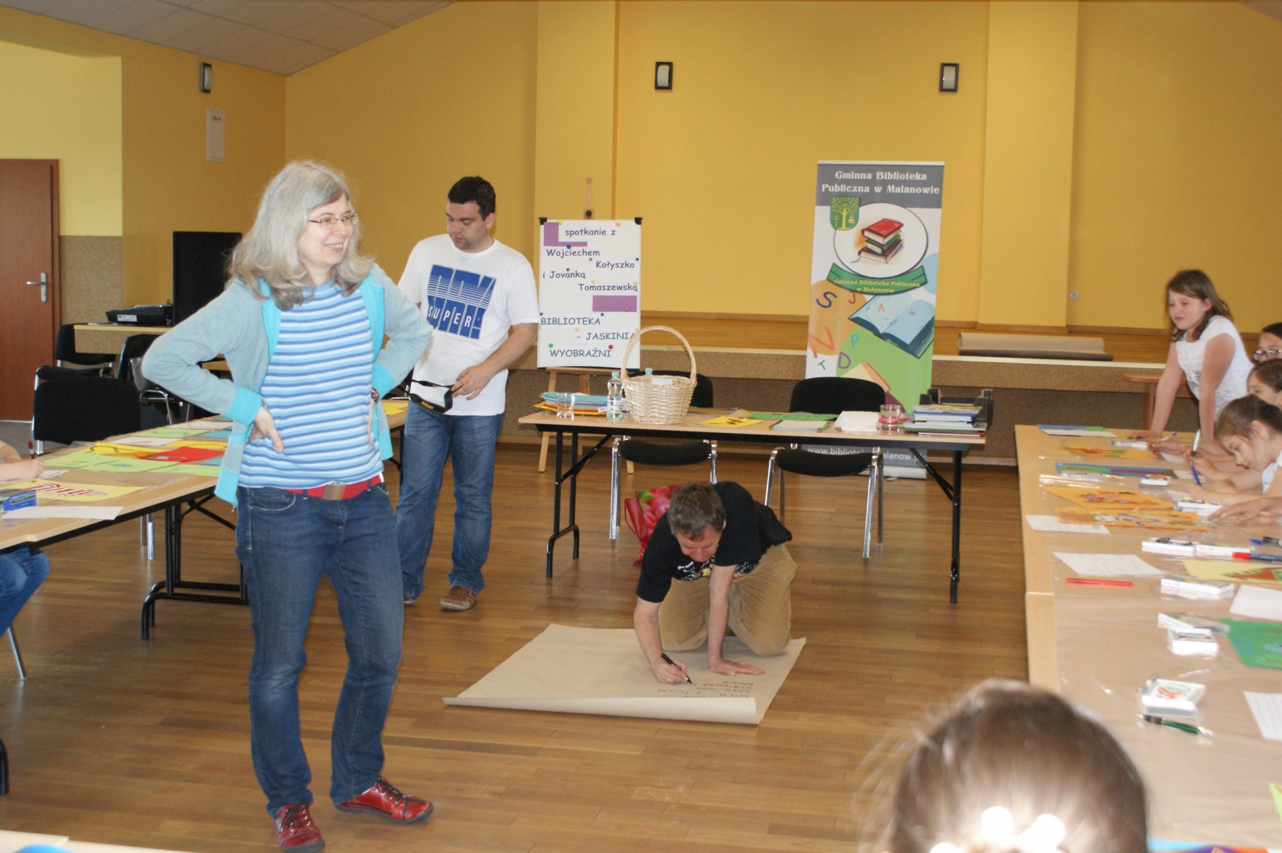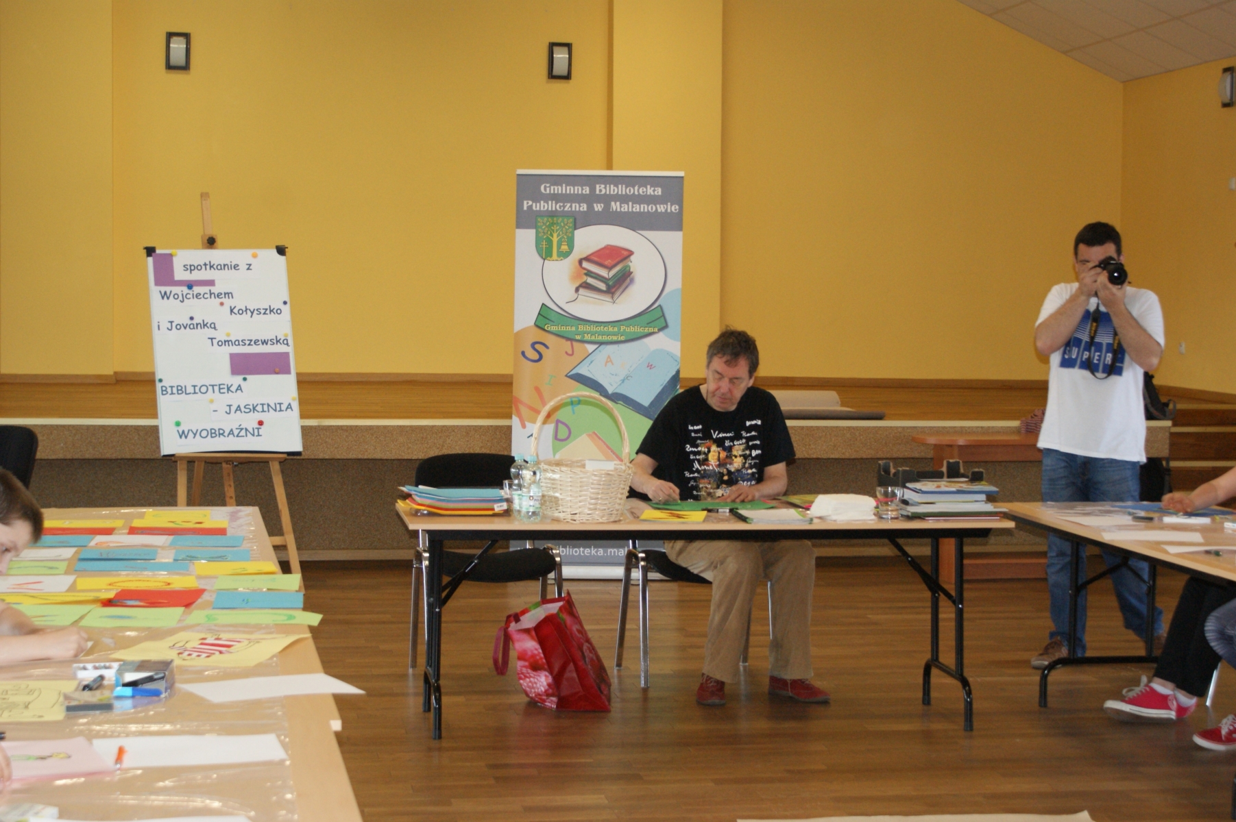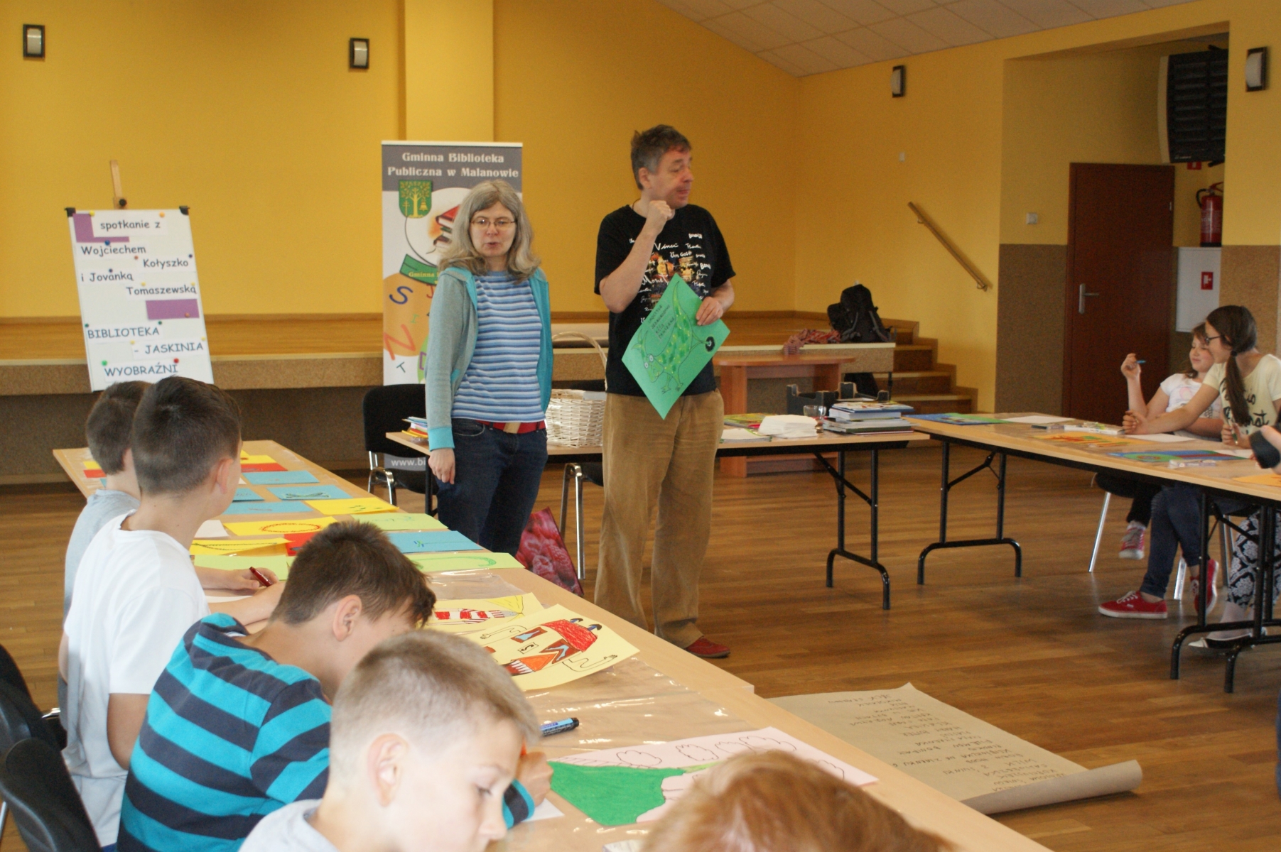 Warsztaty prowadzone były przez Wojciecha Kołyszko, autora książek dla dzieci oraz Jovankę Tomaszewską - ilustratorkę.