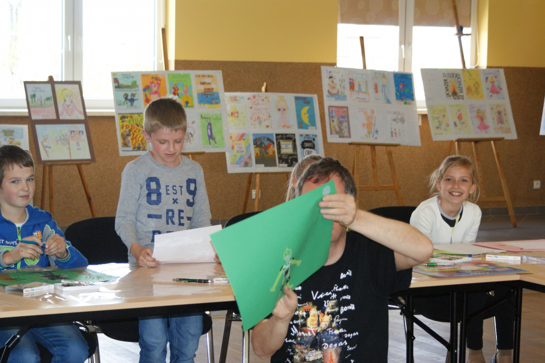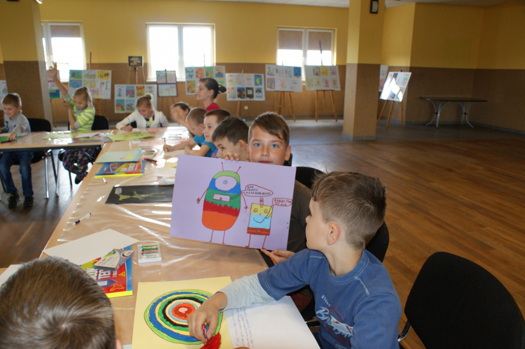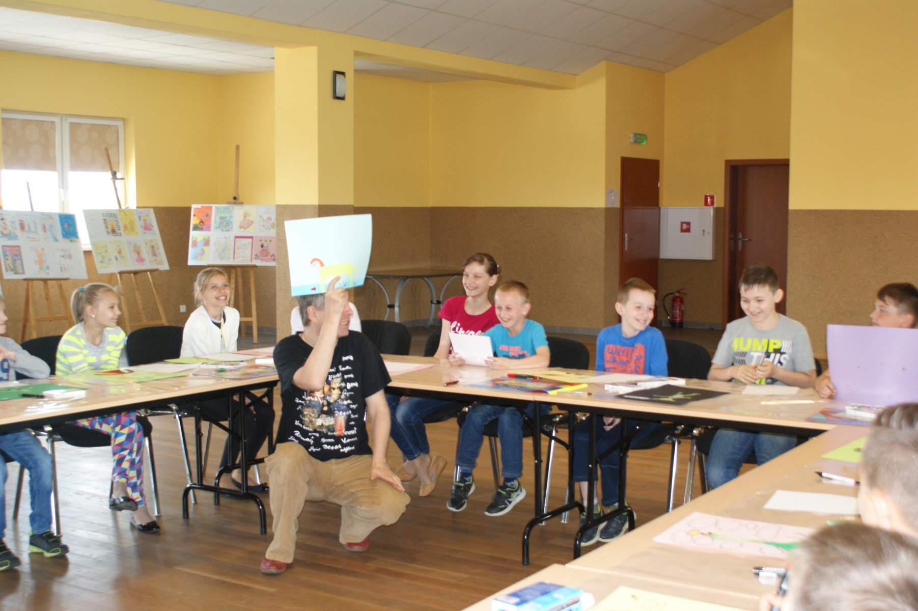 Uczniowie z dużym zaangażowaniem, pomysłowością i wyobraźnią wykonywali zadania plastyczne i literackie proponowane przez instruktorów. Rysowali symbole i postacie, które ilustrowały ich nastrój, interpretowali swoje dzieła, pisali do nich dialogi oraz rysowali abstrakcje. Następnie prezentowali swoje prace a pozostali uczestnicy odgadywali rodzaj książki przedstawionej przez autora abstrakcji. Poza tym uczniowie wykazywali się swoją wiedzą literacką, prowadzący natomiast prezentowali swoje książki.