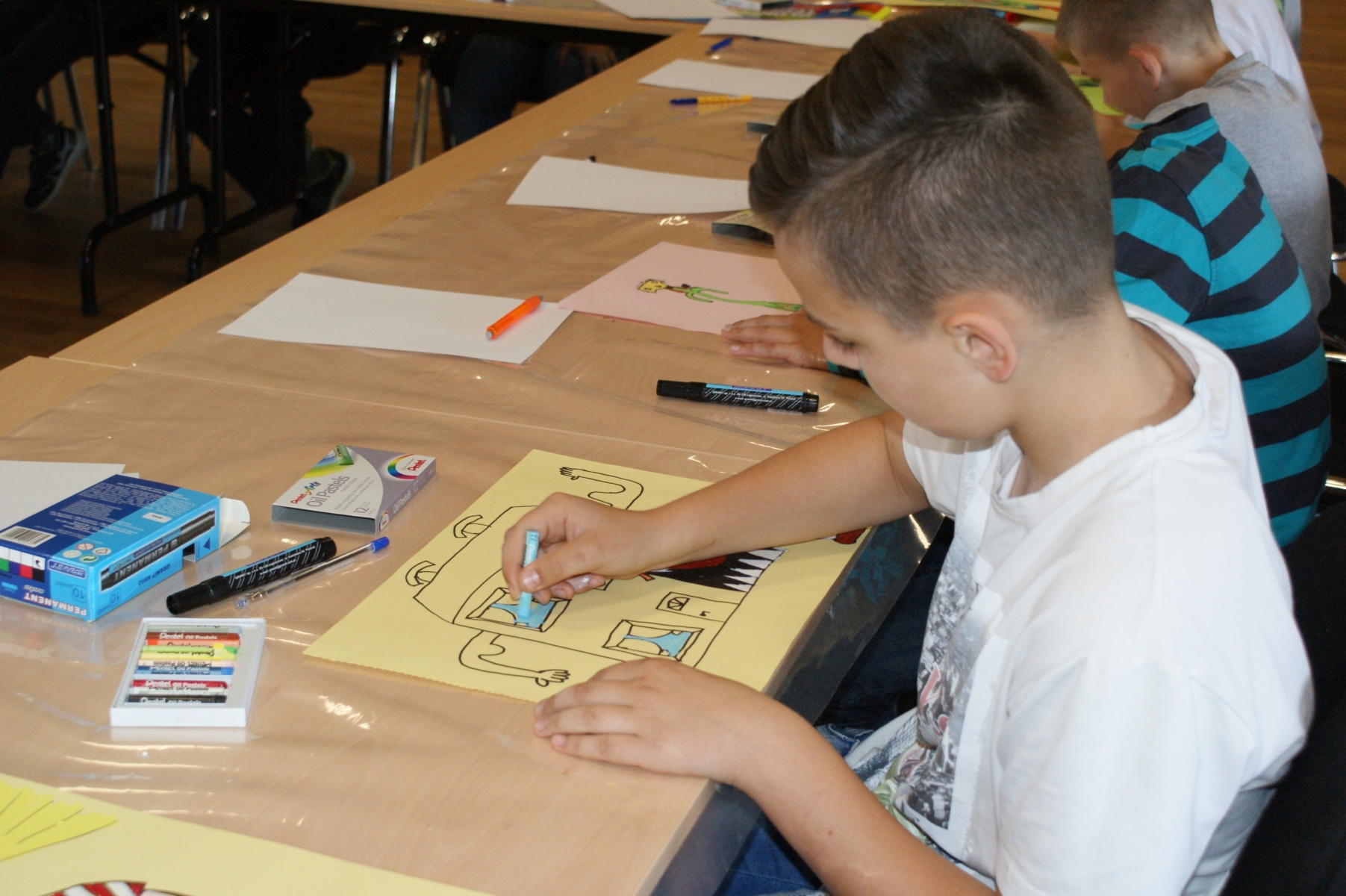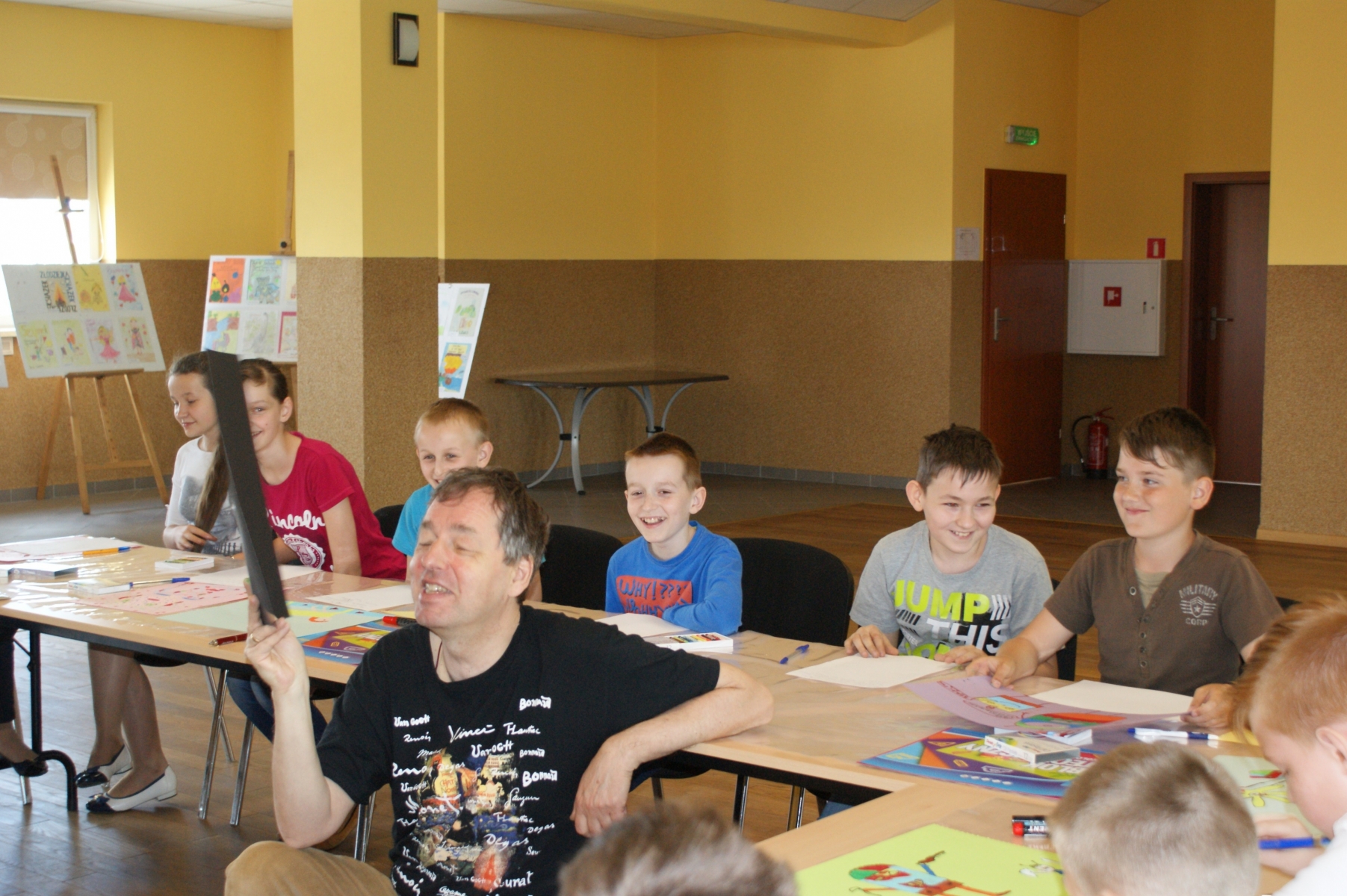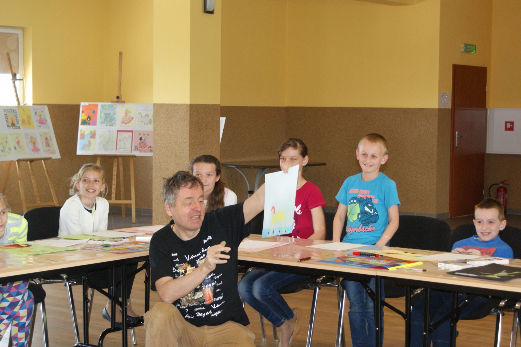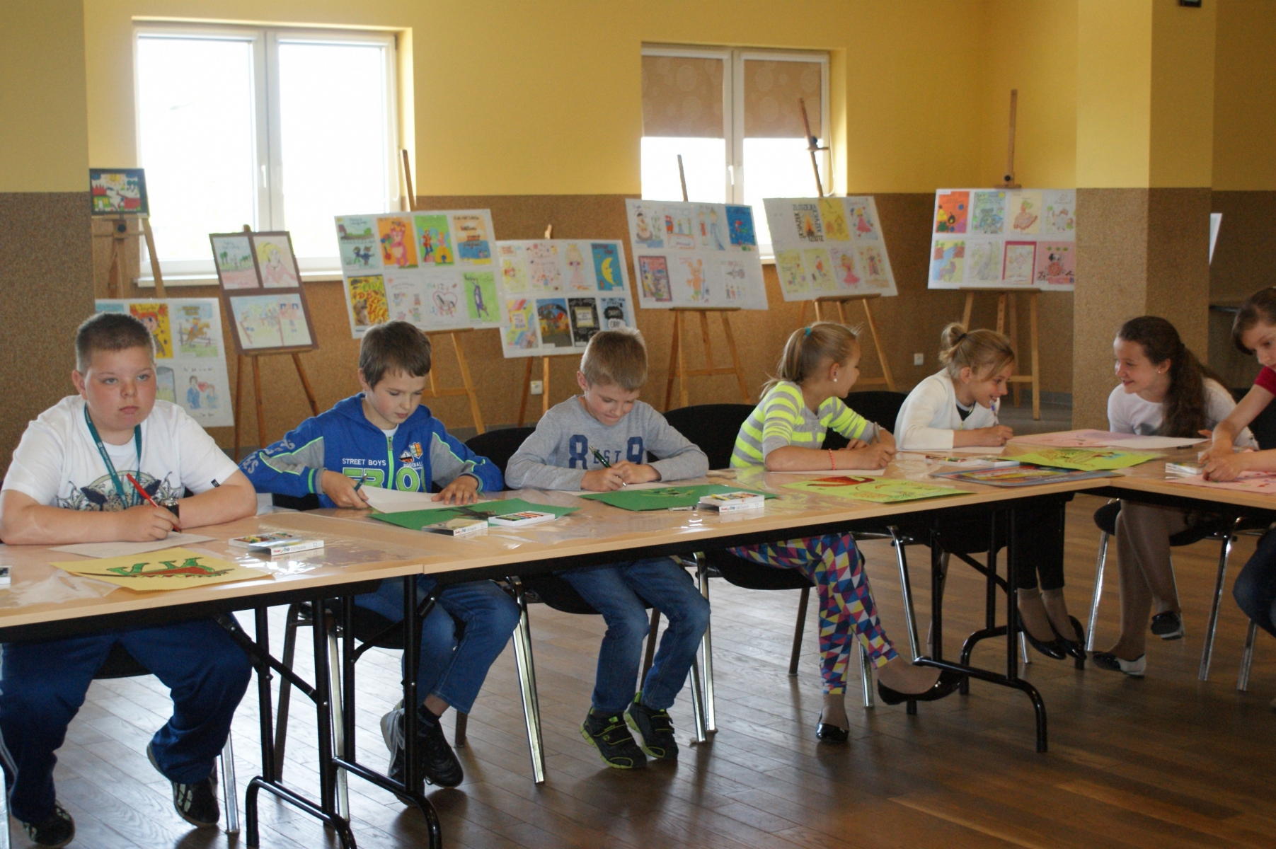 Uczniowie z dużym zaangażowaniem, pomysłowością i wyobraźnią wykonywali zadania plastyczne i literackie proponowane przez instruktorów. Rysowali symbole i postacie, które ilustrowały ich nastrój, interpretowali swoje dzieła, pisali do nich dialogi oraz rysowali abstrakcje. Następnie prezentowali swoje prace a pozostali uczestnicy odgadywali rodzaj książki przedstawionej przez autora abstrakcji. Poza tym uczniowie wykazywali się swoją wiedzą literacką, prowadzący natomiast prezentowali swoje książki.