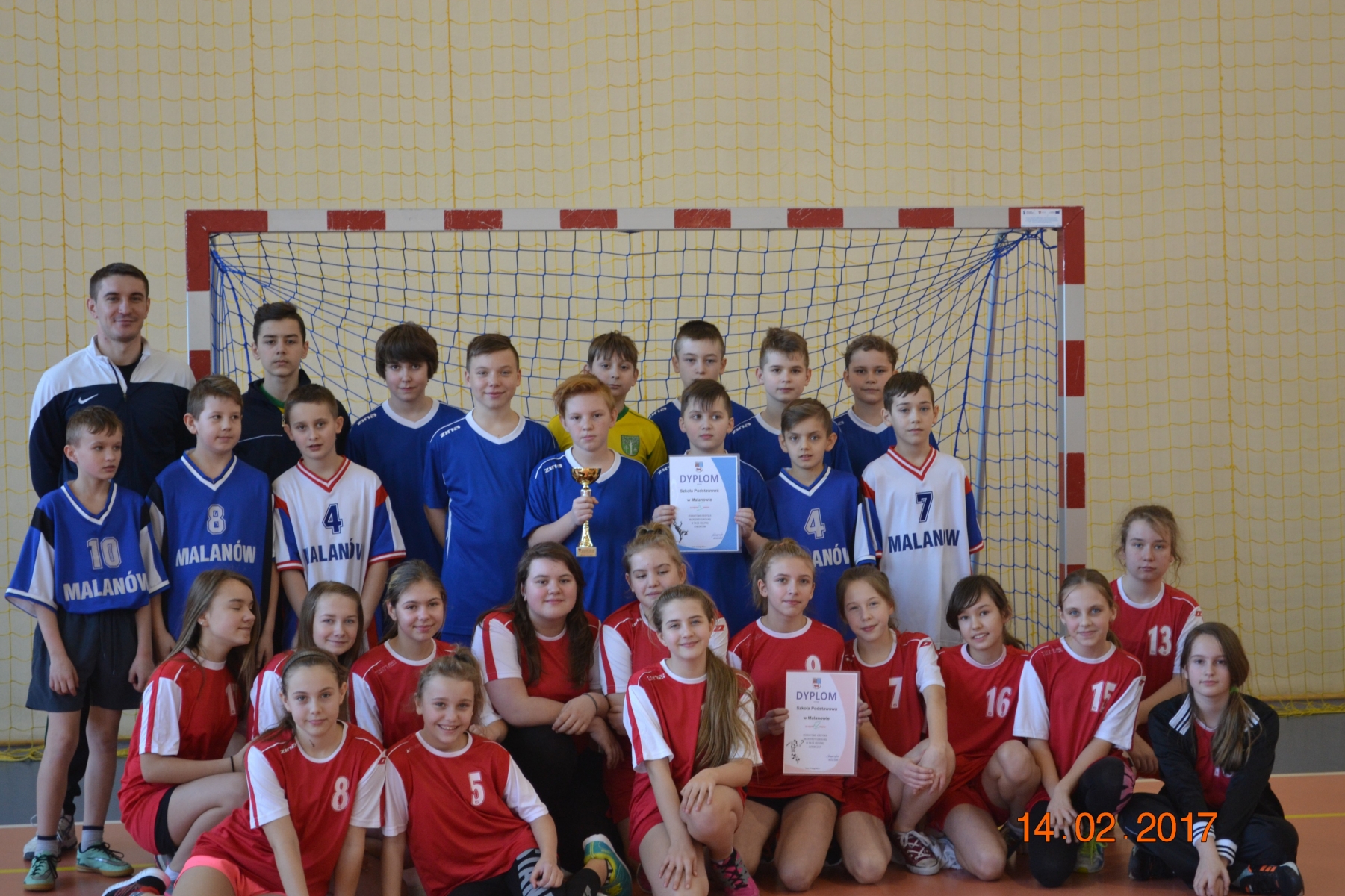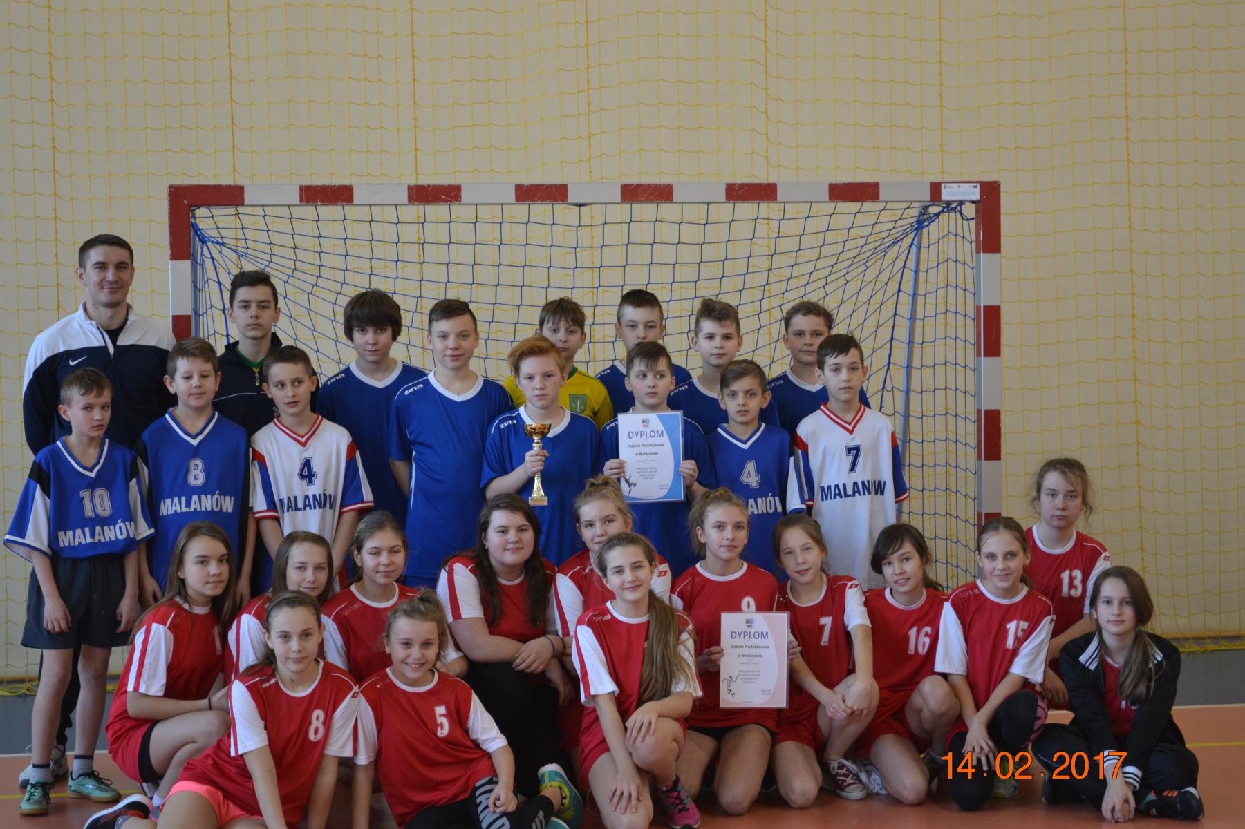 We wtorek 14 lutego byliśmy gospodarzem Finału Mistrzostw Powiatu Tureckiego w Piłce Ręcznej Chłopców i Dziewcząt Szkół Podstawowych. W rozgrywkach wystąpiło 8 drużyn, cztery najlepsze drużyny chłopców oraz cztery najlepsze drużyny dziewcząt, które wcześniej przebrnęły eliminacje międzyszkolne. Tylko dwie szkoły z całego powiatu wystawiły w finale po dwie reprezentacje, były to SP Malanów i SP 5 Turek. Każda z rywalizujących szkół reprezentowała wysoki poziom sportowy, jednak zwycięzca mógł być tylko jeden. Turniej przeprowadzono systemem pucharowym, zwycięzcy z pojedynków półfinałowych rywalizowali w meczu o miejsce pierwsze, przegrani natomiast o miejsce trzecie. W kategorii dziewcząt reprezentantki Malanowa przegrały w pierwszym meczu ze szczypiornistkami z Przykony. W kolejnym meczu, którego stawką było trzecie miejsce nieznacznie ulegliśmy SP Słodków. W kategorii chłopców mieliśmy więcej powodów do zadowolenia. Nasza reprezentacja awansowała z pierwszego miejsca z grupy eliminacyjnej i wystąpiła w meczu finałowym. W finale mierzyliśmy się z obrońcami tytułu czyli SP 5 Turek. W pierwszej połowie spotkania mecz był wyrównany, zmiana nastąpiła po przerwie gdyż przeciwnik nabrał rozpędu i odskoczył na kilka bramek, których do końca spotkania nie odrobiliśmy. W końcowym rozrachunku uznaliśmy wyższość przeciwnika i zajęliśmy drugie miejsce w turnieju. Wicemistrzostwo premiuje naszą reprezentacje do udziału w następnym etapie rozgrywek w ramach igrzysk młodzieży szkolnej. Zajęliśmy drugie miejsce i awansowaliśmy na mistrzostwa rejonu konińskiego, gdzie z SP 5 Turek będziemy reprezentować Powiat Turecki.