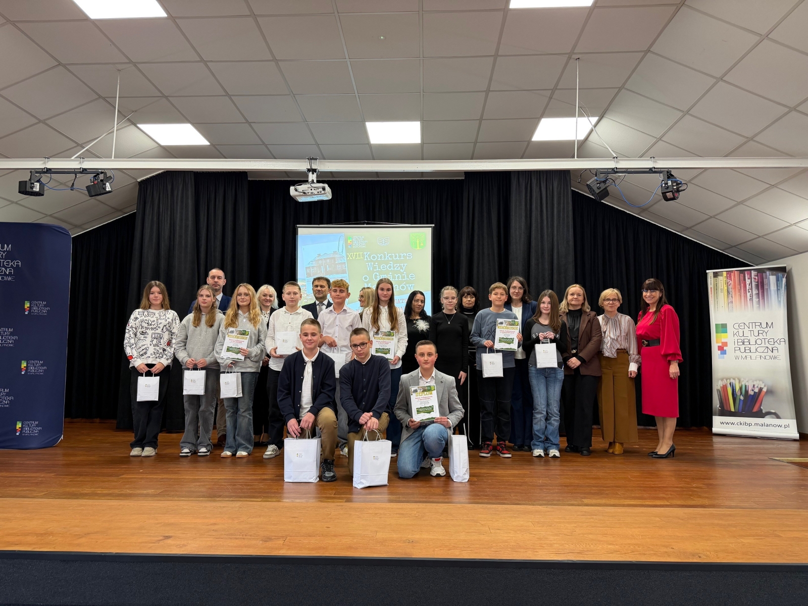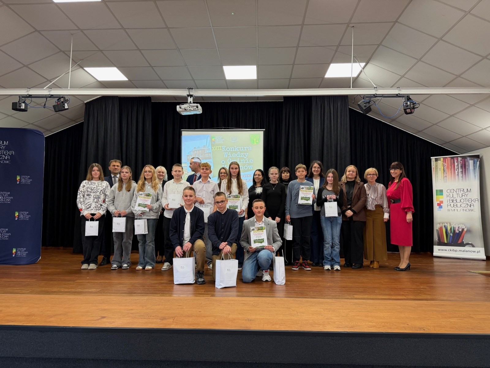 W środę 5 listopada 2025 r. uczniowie klas VII szkół podstawowych z terenu naszej gminy wzięli udział w Konkursie Wiedzy o Gminie Malanów, zorganizowanym przez Centrum Kultury i Bibliotekę Publiczną w Malanowie. Tegoroczna edycja turnieju odbyła się po raz siedemnasty.