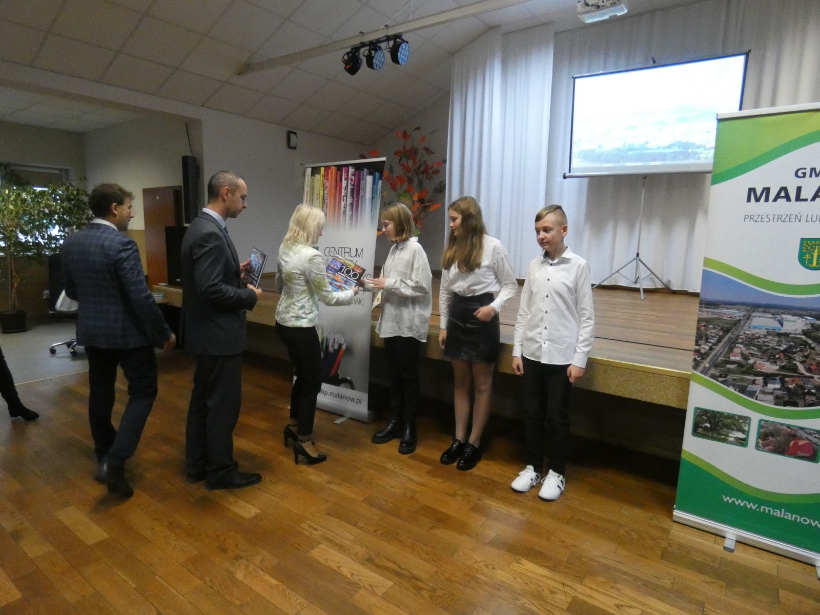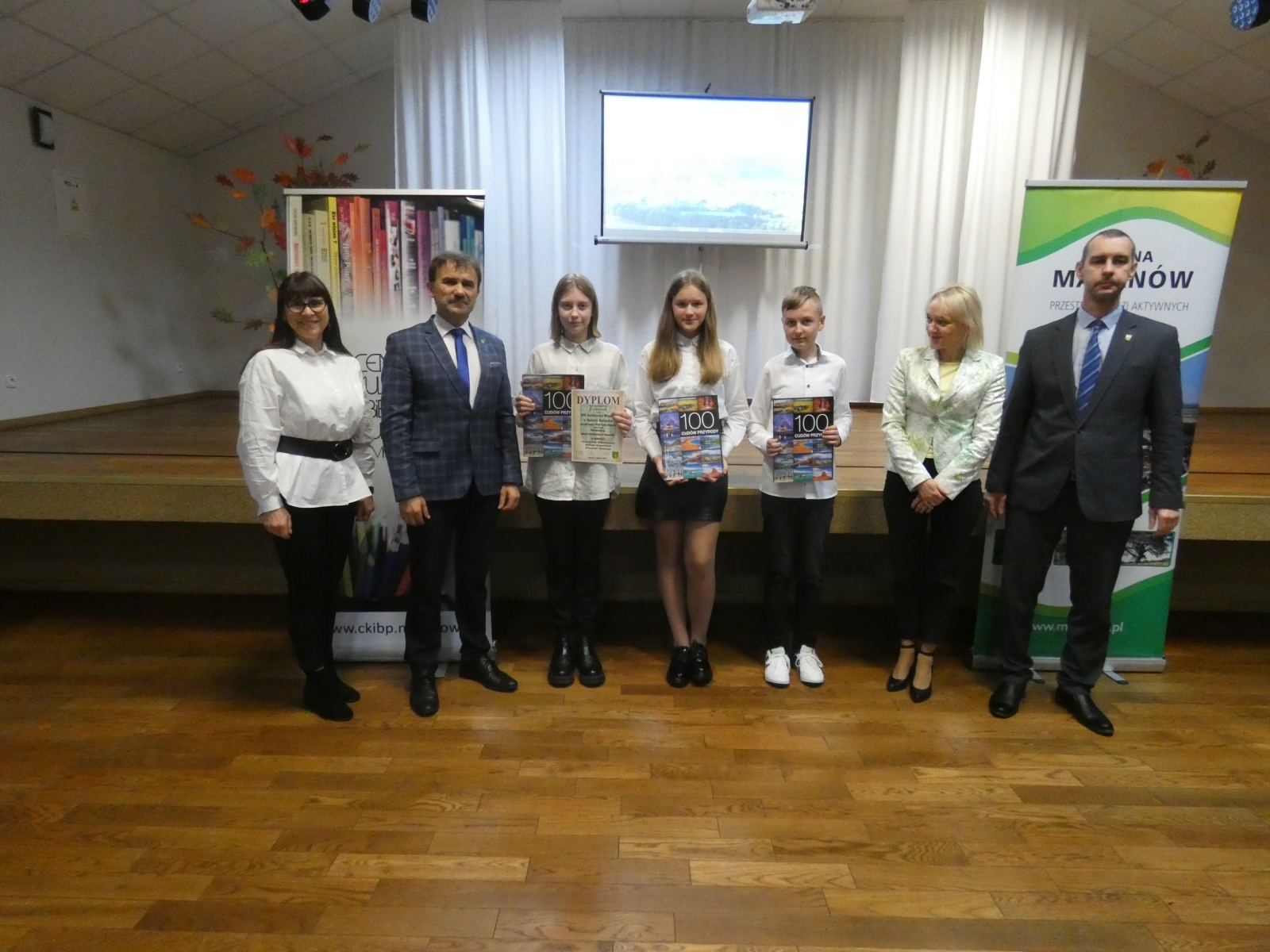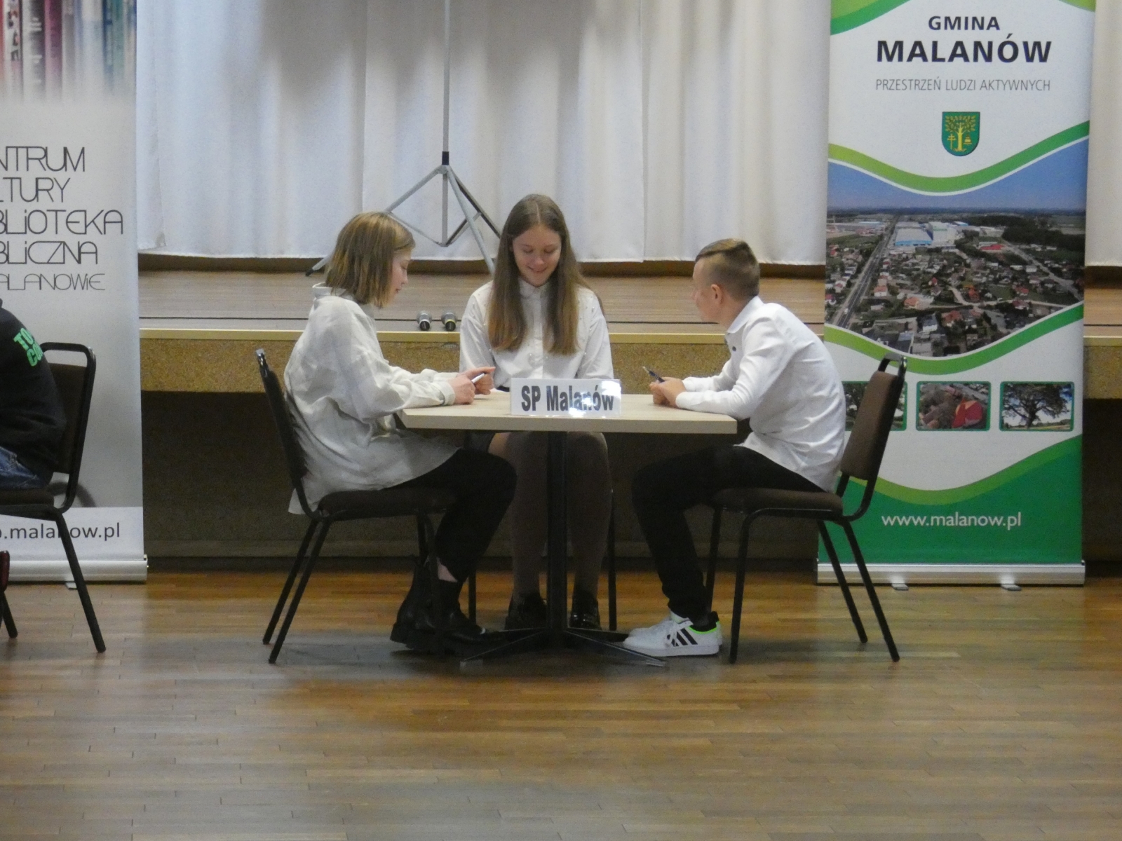W środę 16 listopada 2022 r. uczniowie klasy VII ze Szkoły Podstawowej w Malanowie wzięli udział w XIV Konkursie Wiedzy o Gminie Malanów, organizowanym przez Centrum Kultury i Bibliotekę Publiczną. Klasę reprezentowali: Zuzanna Błaszczyk, Alicja Czerniak i Kacper Szczap. Uczniowie zmagali się z pytaniami dotyczącymi historii, władz gminy, inwestycji, kultury, życia społecznego i życia szkolnego. Pozostali uczniowie z klasy przygotowali pisemną pracę dotyczącą „małych” inicjatyw, które mogłyby powstać w naszej okolicy. W konkursie klasa VII uplasowała się na II miejscu. Reprezentanci zostali nagrodzeni dyplomami i nagrodami książkowymi, a przede wszystkim ciepłym słowem uznania i podziękowaniami od dyrektor CKiBP Małgorzaty Przygońskiej oraz Wójta Gminy Malanów, Ireneusza Augustyniaka.