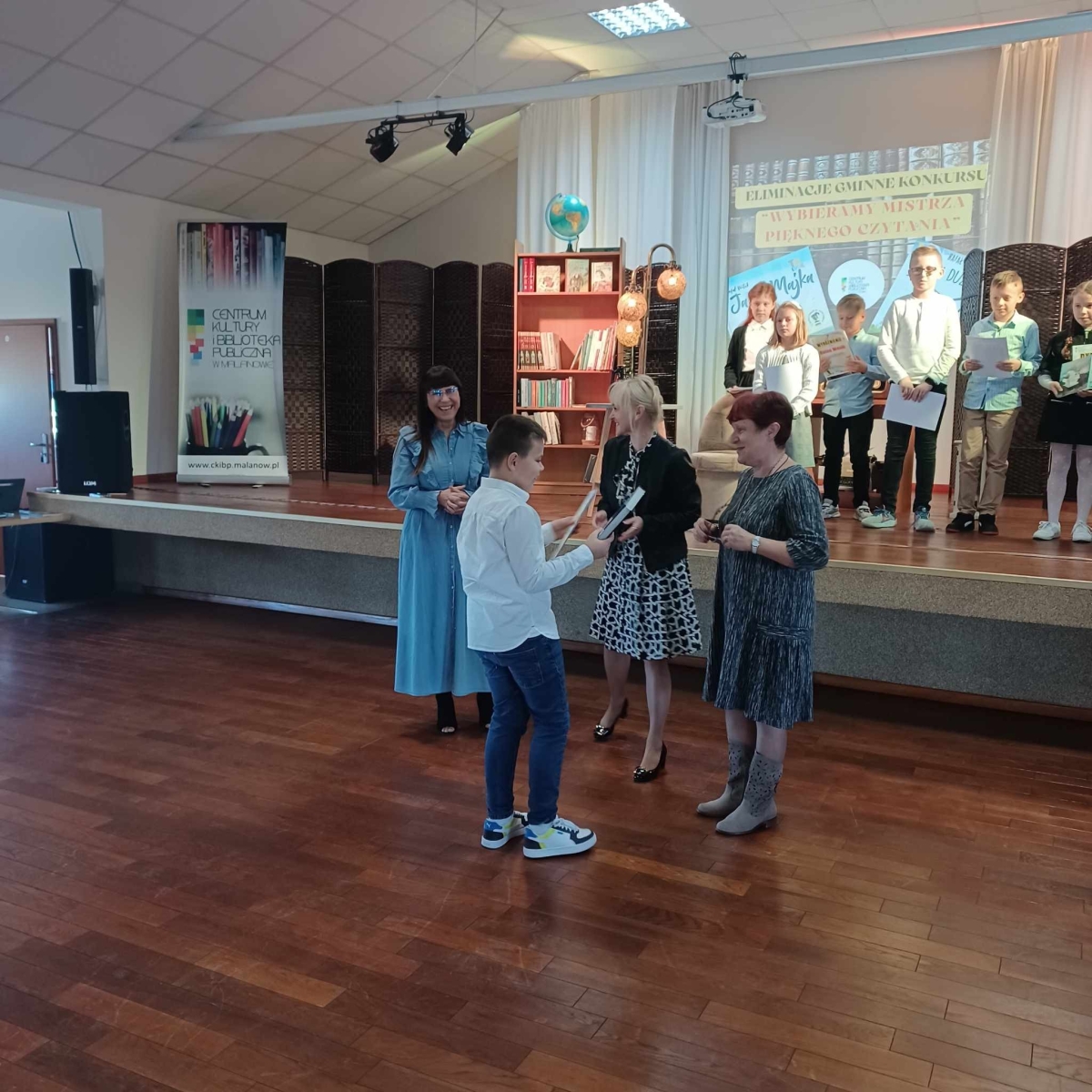 W środę 16 października br. w Centrum Kultury i Bibliotece Publicznej w Malanowie odbył się konkurs czytelniczy „ Wybieramy Mistrza Pięknego Czytania”. W konkursie wzięły udział 3-osobowe reprezentacje uczniów klas czwartych szkół podstawowych z gminy Malanów. W tym roku uczestnicy mieli za zadanie zaprezentować fragmenty powieści Rafała Witka. Każdy uczeń zaprezentował jeden wylosowany tekst oraz drugi samodzielnie przez siebie wybrany. Naszą szkołę reprezentowali uczniowie: Wiktor Glapa, Zosia Nawrocka i Jessica Sobczak z klasy IVa, Julia Kornacka, Łucja Łyskanowska i Małgorzata Misiek z klasy IV b. Po wysłuchaniu wystąpień wszystkich uczestników Mistrzem Pięknego Czytania został uczeń naszej szkoły, Wiktor Glapa. Uczennicy Małgosi Misiek przyznano wyróżnienie. Mistrz Pięknego Czytania Wiktor Glapa będzie reprezentował naszą gminę w konkursie powiatowym.