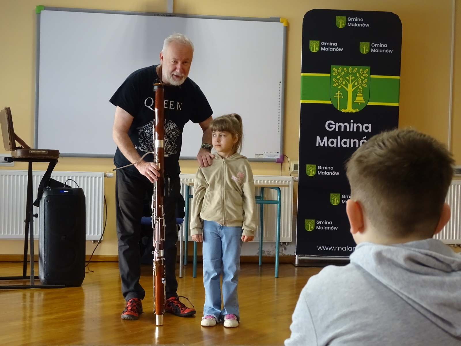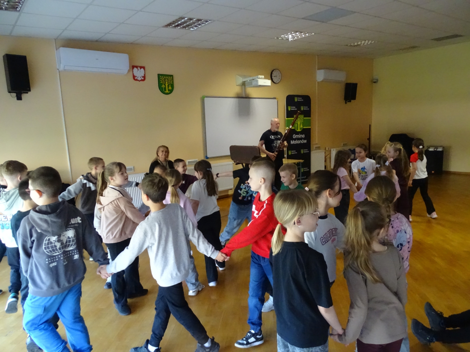 W Szkole Podstawowej w Malanowie, w dn.: 17.04.2026r., odbyła się kolejna audycja muzyczna pt.: „Wiosenne granie”. Pan Sławek przypomniał dzieciom brzmienie fagotu. Jest to instrument z rodziny dętych drewnianych. Uczniowie mieli okazję posłuchać wesołych utworów: „ Żartowniś”, „Prząśniczka”, „Wesoły wieśniak”, „Tijuana Taxi”.