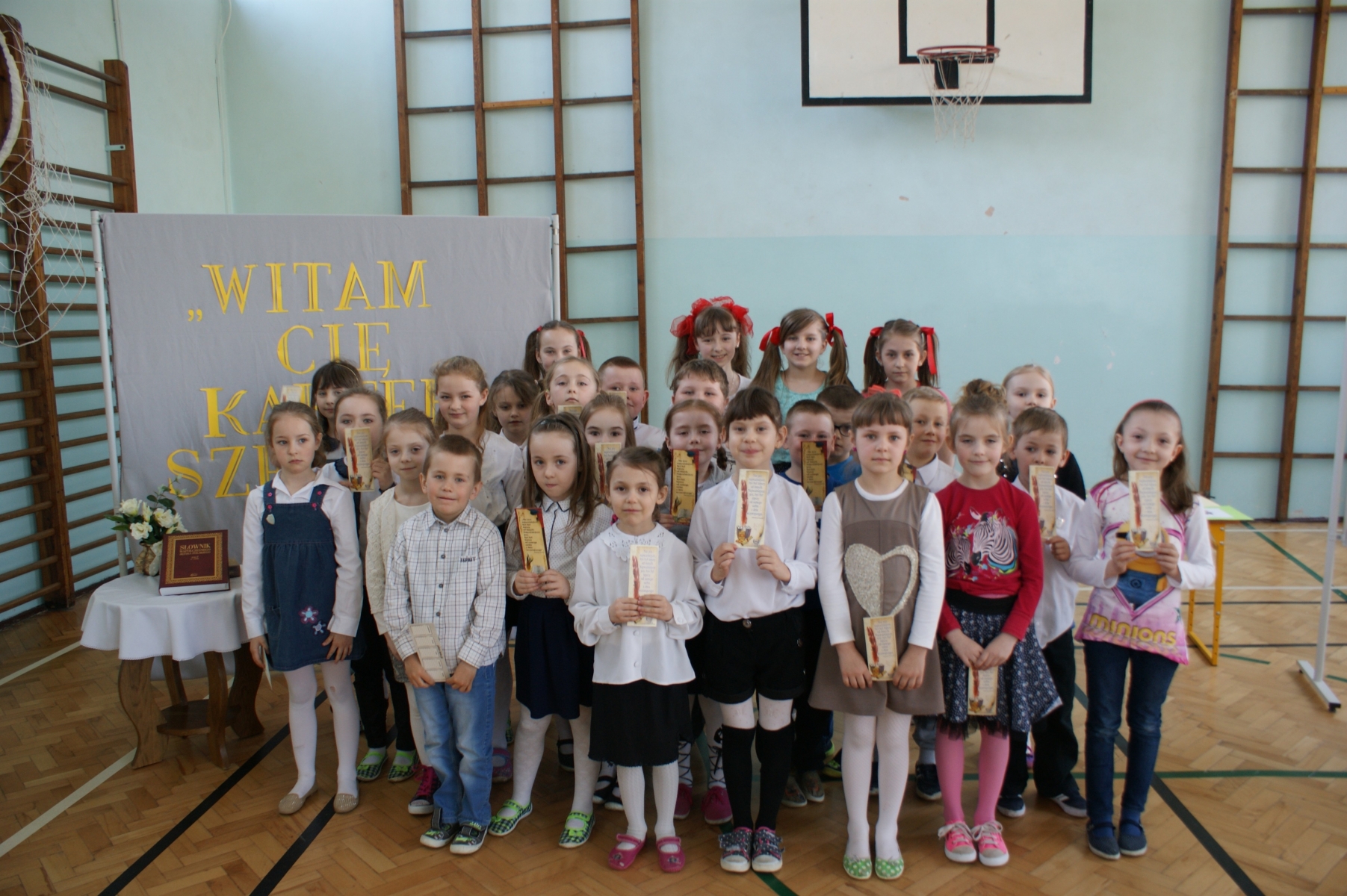 Tegoroczna uroczystość pasowania na czytelników odbyła się 26 kwietnia. Specjalnie na tę okazję przygotowano dla uczniów mały egzamin, który poprowadziły uczennice klasy IV b. Polegał on na rozwiązywaniu zagadek tematyką związanych z biblioteką oraz najpopularniejszymi baśniami i bajkami. Najważniejszym punktem pasowania było złożenie przyrzeczenia. Od tego momentu uczniowie klas pierwszych stali się pełnoprawnymi czytelnikami szkolnej biblioteki. Nowi czytelnicy otrzymali pamiątkowe zakładki do książek.