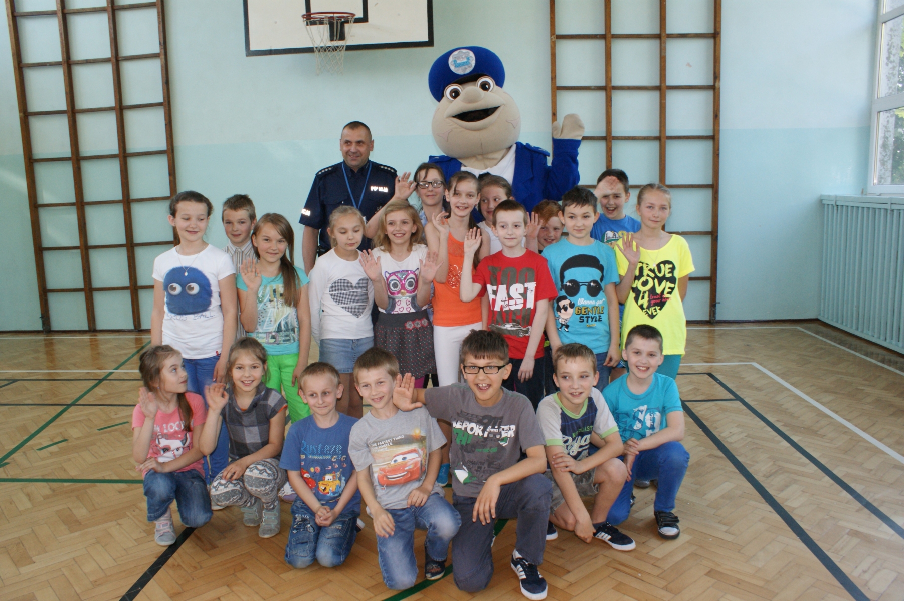 W dniu 21.05.2014 r. w naszej szkole gościli przedstawiciele Komendy Powiatowej Policji w Turku, na czele z sierżantem Pyrkiem. Pyrek to maskotka wielkopolskiej policji stworzona w 2003 roku przez dzieci dla dzieci. W spotkaniu uczestniczyli uczniowie klas I, II i III, którzy z zaciekawieniem przyglądali się Pyrkowi. Wszystkie dzieci zostały zaproszone na Miejsko-Powiatowy Dzień Dziecka i Rodziny, który odbędzie się 1 czerwca 2014 r. w Turku, a którego współorganizatorem jest KPP w Turku. Na koniec spotkania każda klasa wykonała sobie pamiątkowe zdjęcie z sympatycznym Pyrkiem.