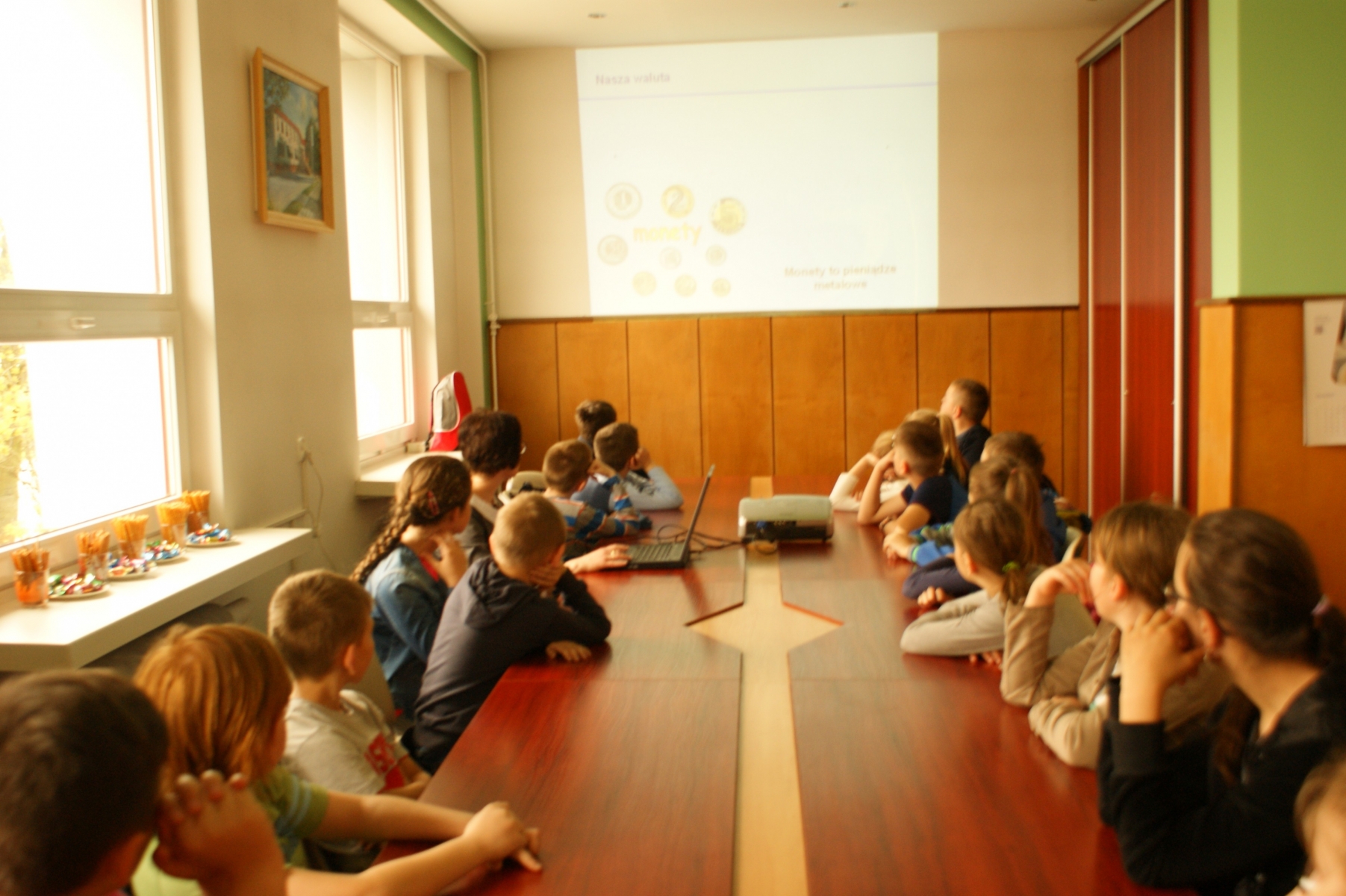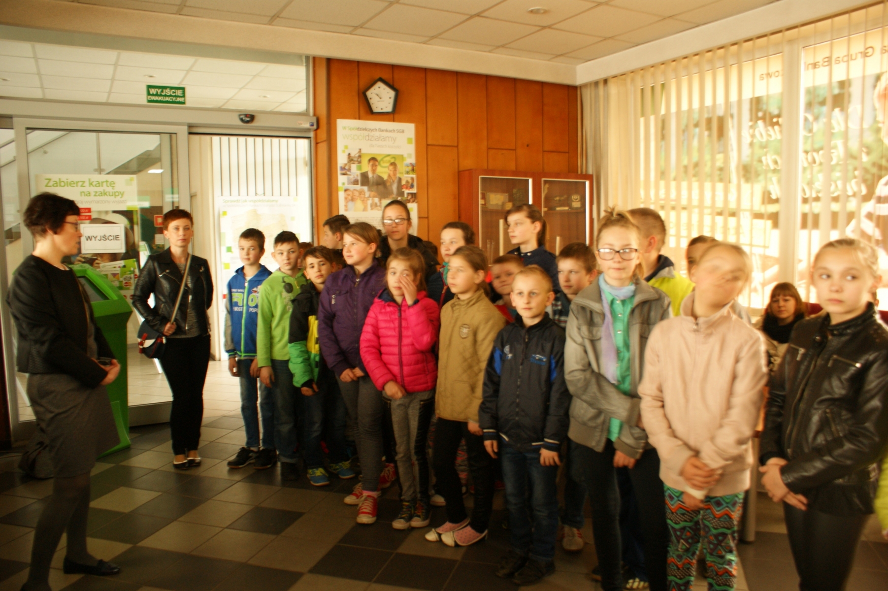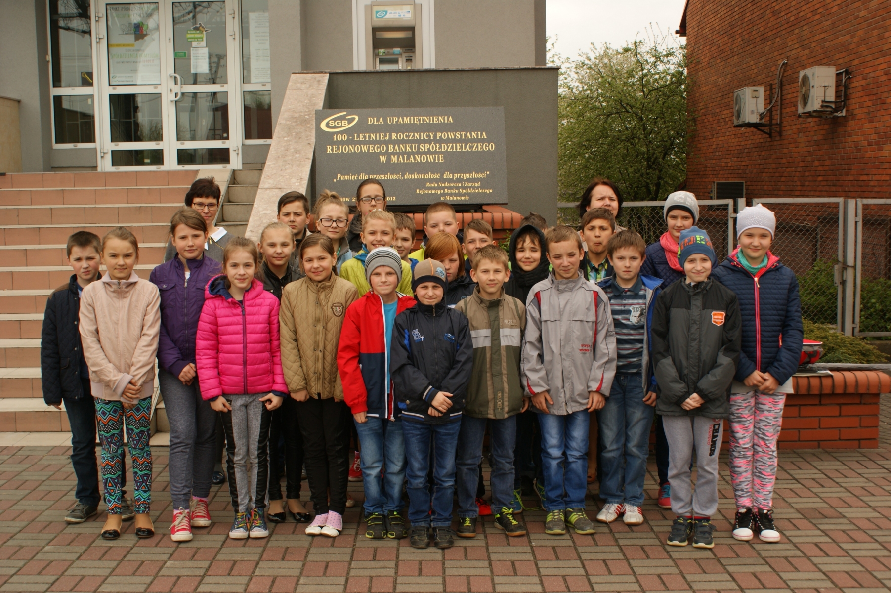 W dniu 29 kwietnia 2015r. uczniowie klasy IV a ze Szkoły Podstawowej w Malanowie wraz z wychowawczynią p. Emilią Stefaniak i opiekunem SKO p. Justyną Balcerzak wybrali się z wizytą do Banku Spółdzielczego w naszej gminie. Już na początku wszyscy zostali przywitani bardzo serdecznie przez p. Jolantę Cajdler - pracownika banku ds. marketingu. Uczniowie mogli zobaczyć tzw. część otwartą banku, dostępną dla klientów, którzy dokonują tam wpłat i wypłat jak również mogą zasięgnąć informacji na temat kredytów. Po zaproszeniu do sali konferencyjnej obejrzeli prezentację dotyczącą historii pieniądza. Na zakończenie wszyscy spotkali się z prezesem banku p. Janem Tygielskim i zrobili wspólne zdjęcie. Na pamiątkę wizyty uczniowie otrzymali długopisy z logo banku oraz kalendarzyki.