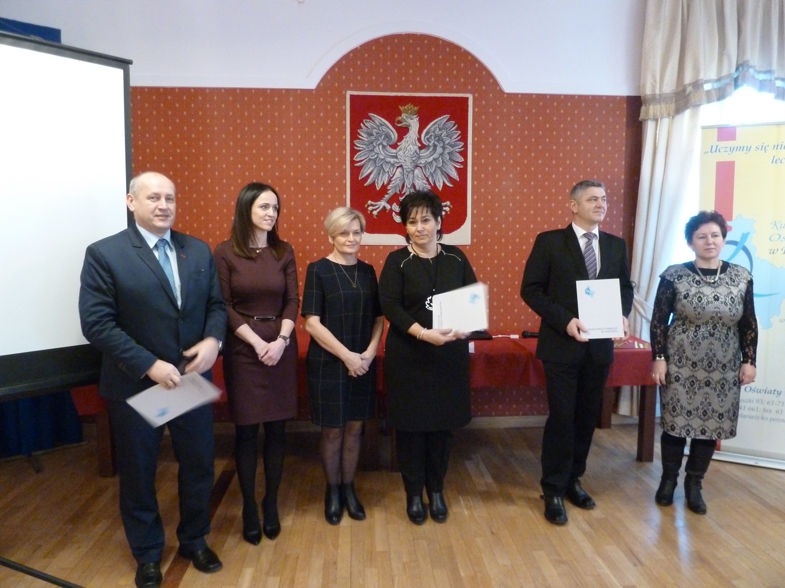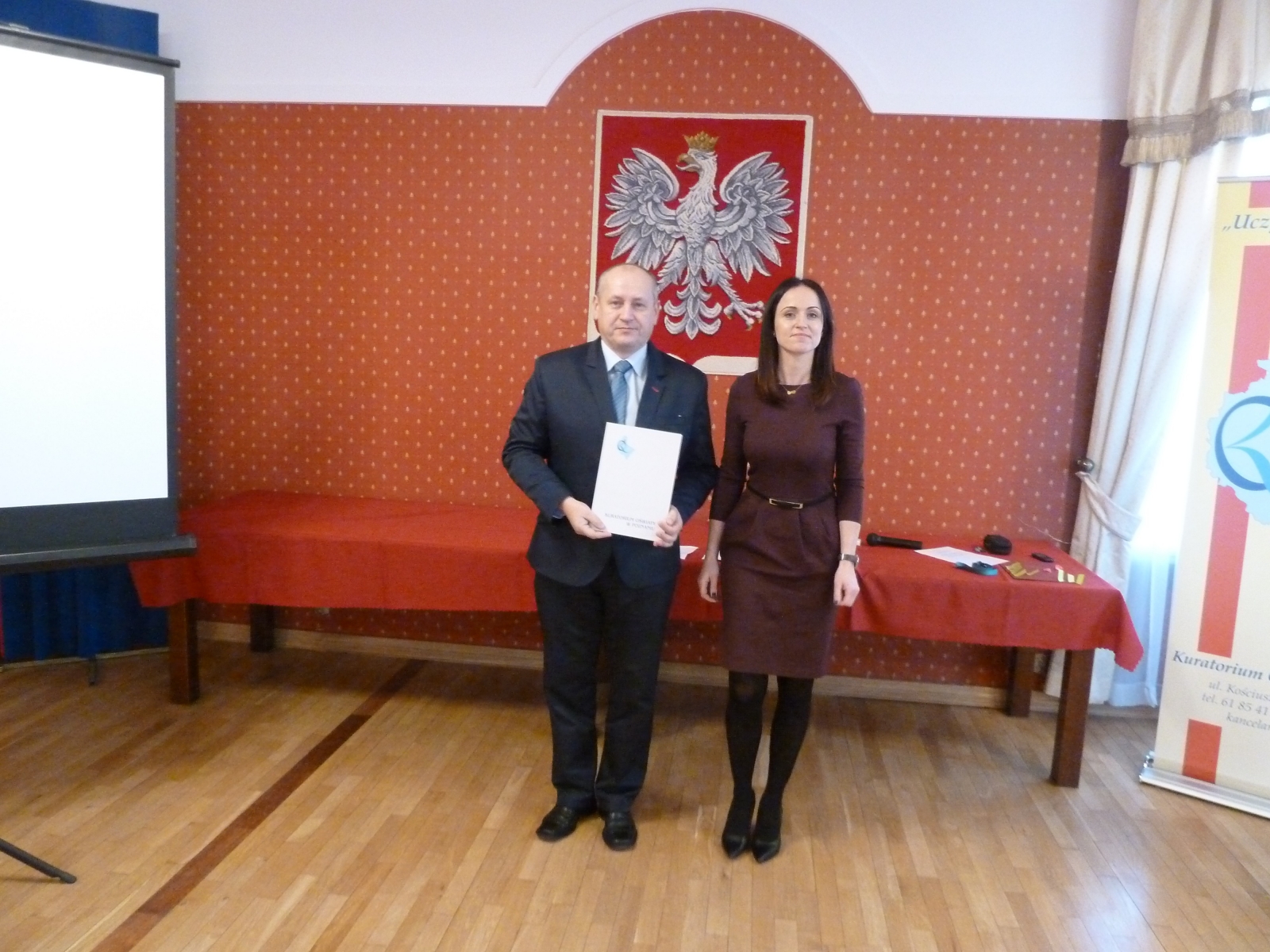Uroczyste wręczenie Certyfikatów Szkół Promujących Zdrowie odbyło się 13 grudnia w Urzędzie Wojewódzkim w Poznaniu. Naszą szkołę na tej uroczystości reprezentowali pan Marek Nowicki - dyrektor szkoły oraz pani Julita Muszalska – szkolny koordynator Szkół Promujących Zdrowie. Uczestników przywitała pani Katarzyna Wardzińska - koordynator wojewódzki projektu SzPZ. Następnie wystąpił Wicekurator Oświaty Zbigniew Talaga, w kilku słowach przedstawił zalety związane z promocją zdrowego stylu życia i aktywności dzieci i młodzieży, zarówno w szkole, jak i poza nią. Wicekurator Oświaty serdecznie pogratulował i wręczył Certyfikaty.