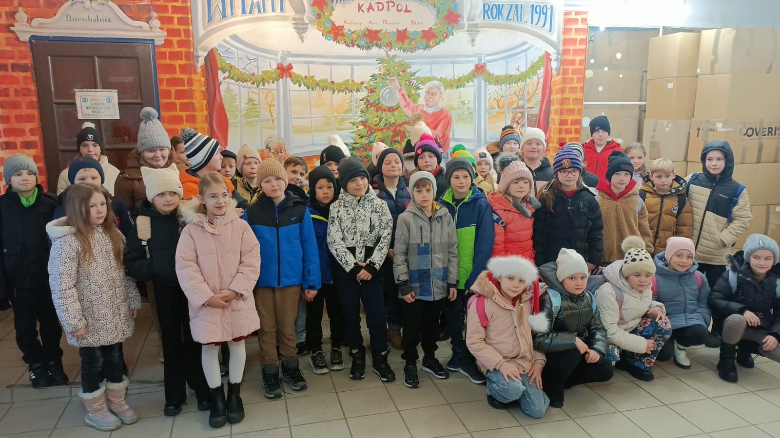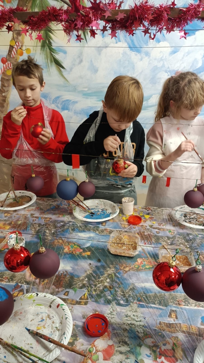 Pani przewodnik oprowadziła dzieci po Fabryce i zapoznała z kolejnymi etapami produkcji świątecznych ozdób. Pierwszym etapem zwiedzania była dmuchalnia szkła, gdzie w wysokiej temperaturze z kawałka szklanej rurki pracownicy fabryki tworzyli szklane kule, które potem trafiły do gorącej wody i były poddawane srebrzeniu. Potem bombki trafiają do lakierni, gdzie są zanurzane w lakierze o odpowiednim kolorze. Ostatnim etapem produkcji było dekorowanie. Dzieci oglądały produkowane ręcznie bombki o różnych kształtach wzorach i kolorach. Dużą atrakcją były warsztaty plastyczne, podczas których dzieci samodzielnie dekorowały ozdoby według własnego pomysłu. Na pamiątkę wycieczki otrzymały bombkę z imieniem oraz własnoręcznie wykonane szklane ozdoby. Na terenie fabryki znajdował się również sklep firmowy, gdzie można było zakupić wiele różnorodnych, ręcznie malowanych ozdób.