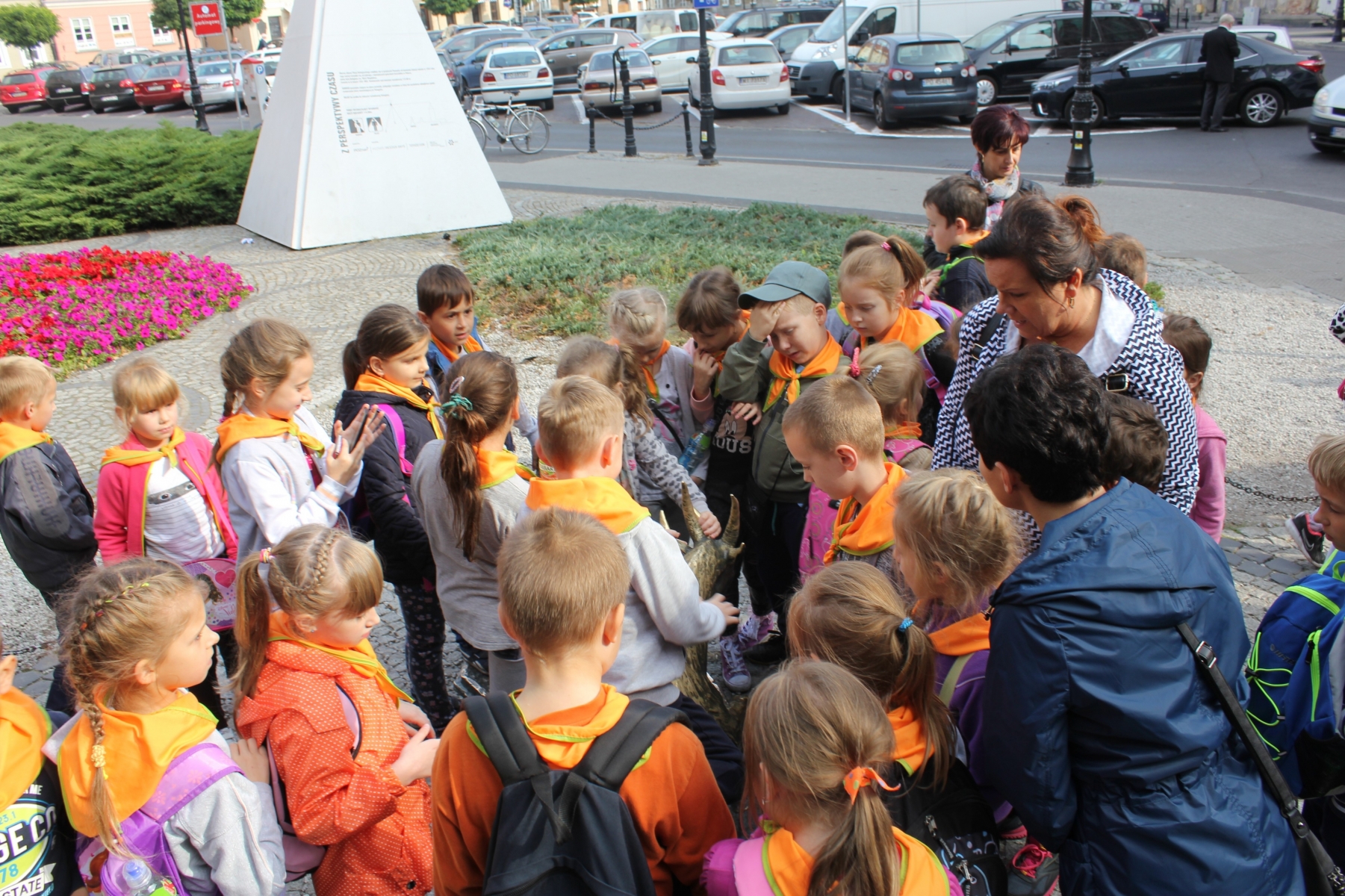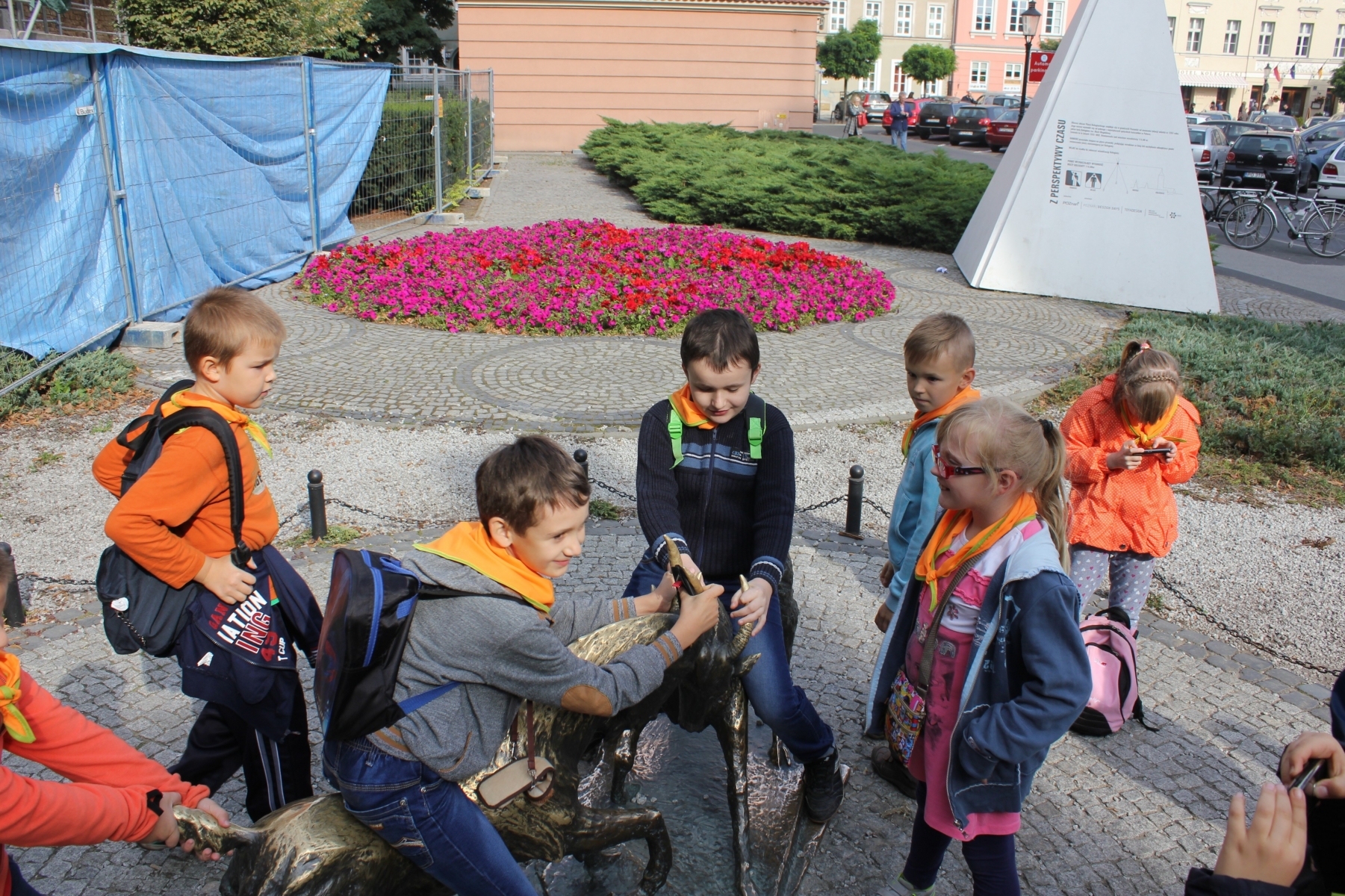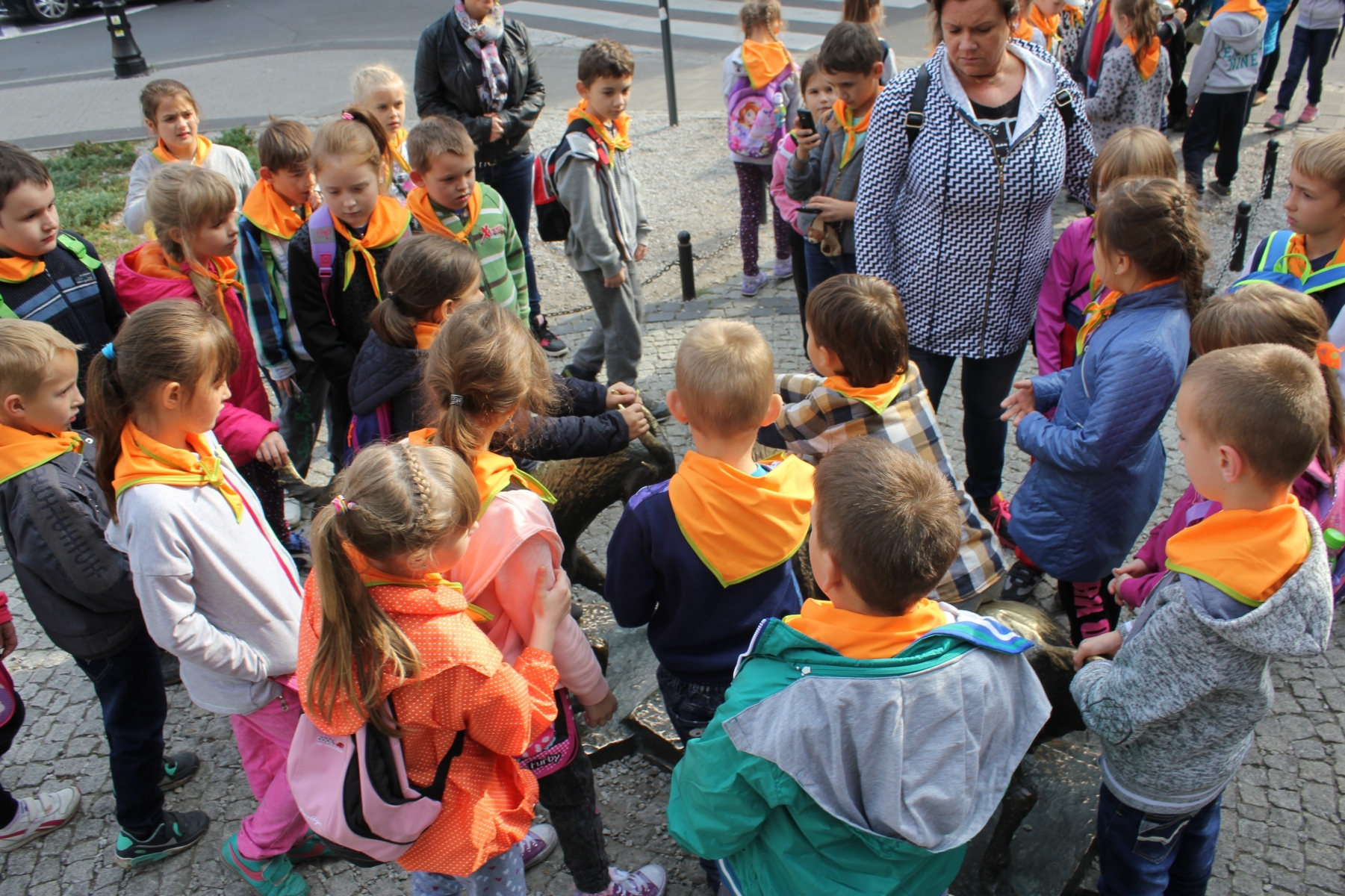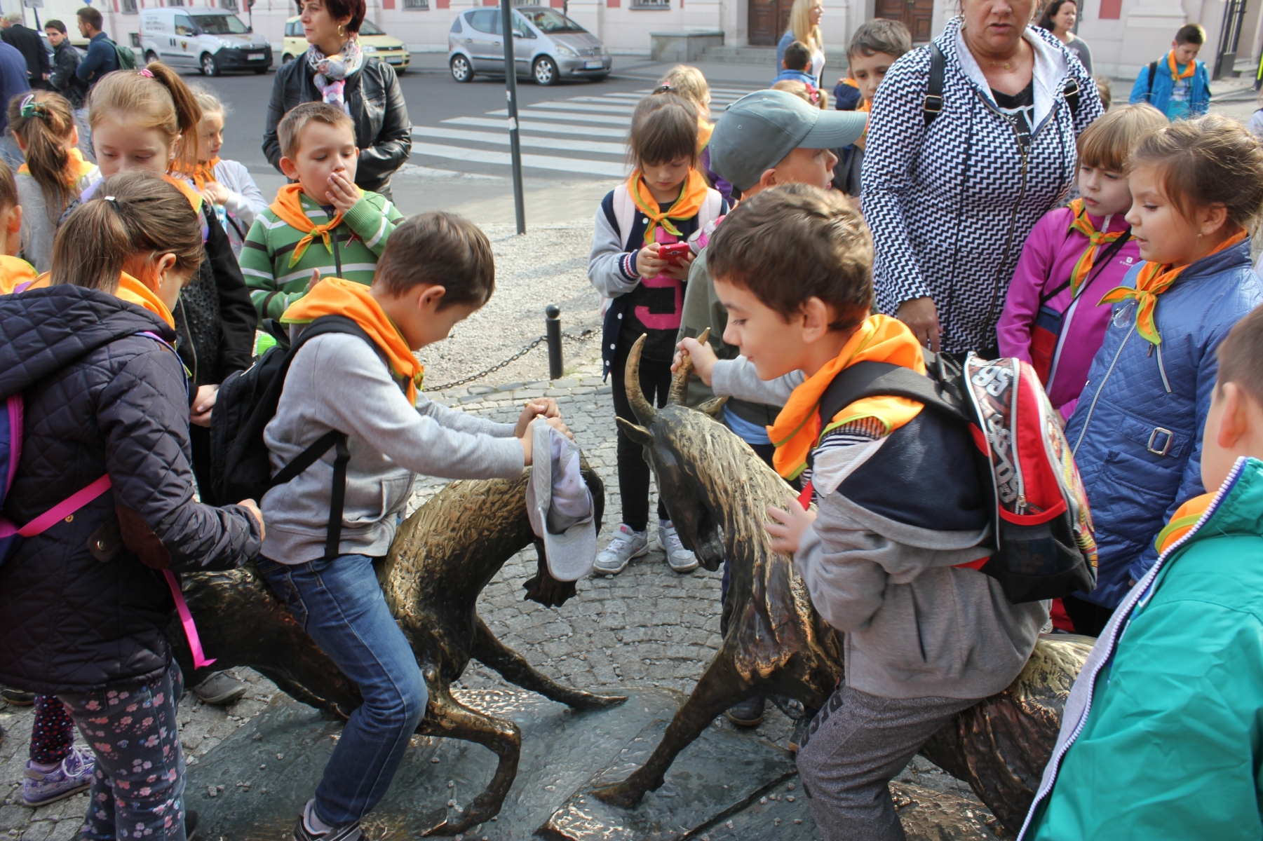 Pierwszym punktem zwiedzania była Palmiarnia. Zobaczyliśmy drzewo cocacolowe, baobab, kiełbasiane, ogromne kaktusy, mnóstwo kwitnących storczyków i wiele innych egzotycznych roślin. Mogli samodzielnie nakarmić ryby w akwarium. Po tropikalnych roślinach kolejnym punktem wycieczki był spacer po Starym Mieście, mali turyści podziwiali architekturę dawnych kamienic i Ratusza. Tradycyjnie o godz. 12.00 obserwowali poznańskie koziołki, których historię przybliżyła nam pani przewodnik. Zaprowadziła również dzieci do Pomnika Koziołków, gdzie siadając na koziołku, każdy wymyślał życzenie i ściskał jego rogi, z nadzieją, że się spełni. Muzeum Powstania Wielkopolskiego to jeszcze trudny temat dla dzieci, ale przecież bliski – Powstańcy Wielkopolscy są przecież Patronem naszej szkoły. Dzieci z zainteresowaniem słuchały opowieści o tym jak nasi przodkowie walczyli o wolną i niepodległą Polskę i podziwiały powstańczy trud.