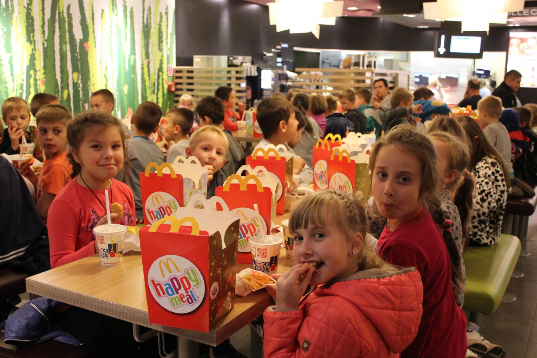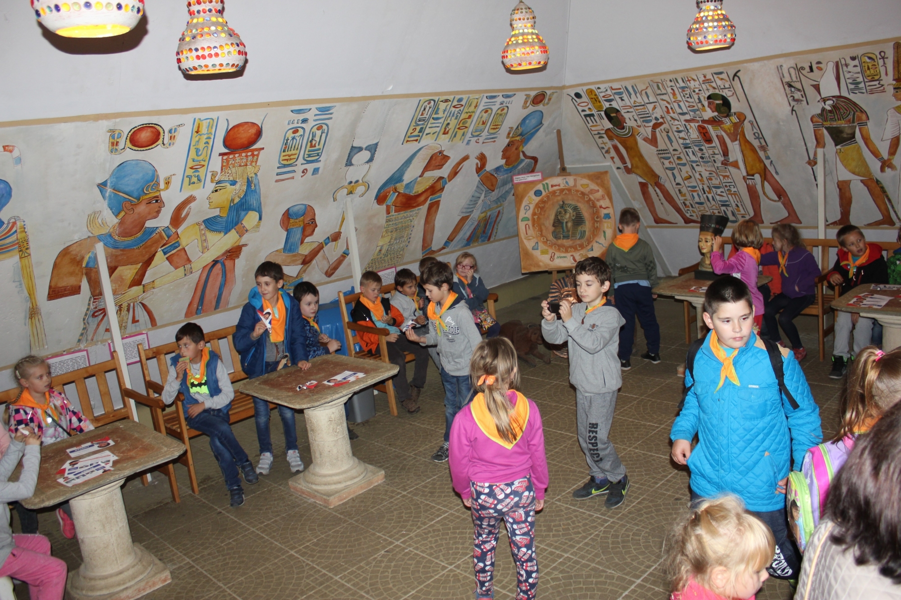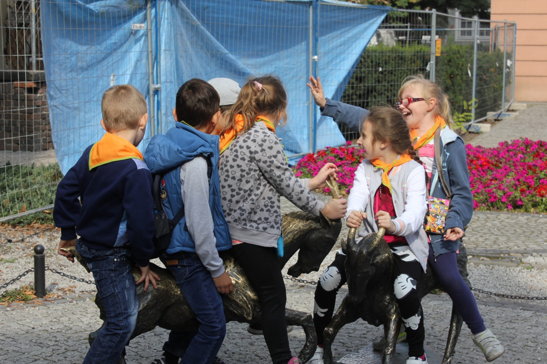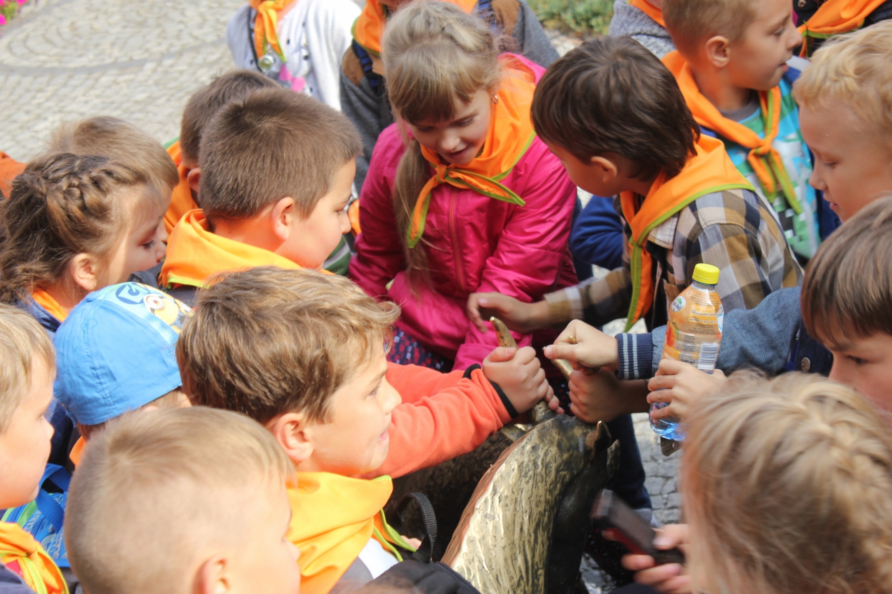 Pierwszym punktem zwiedzania była Palmiarnia. Zobaczyliśmy drzewo cocacolowe, baobab, kiełbasiane, ogromne kaktusy, mnóstwo kwitnących storczyków i wiele innych egzotycznych roślin. Mogli samodzielnie nakarmić ryby w akwarium. Po tropikalnych roślinach kolejnym punktem wycieczki był spacer po Starym Mieście, mali turyści podziwiali architekturę dawnych kamienic i Ratusza. Tradycyjnie o godz. 12.00 obserwowali poznańskie koziołki, których historię przybliżyła nam pani przewodnik. Zaprowadziła również dzieci do Pomnika Koziołków, gdzie siadając na koziołku, każdy wymyślał życzenie i ściskał jego rogi, z nadzieją, że się spełni. Muzeum Powstania Wielkopolskiego to jeszcze trudny temat dla dzieci, ale przecież bliski – Powstańcy Wielkopolscy są przecież Patronem naszej szkoły. Dzieci z zainteresowaniem słuchały opowieści o tym jak nasi przodkowie walczyli o wolną i niepodległą Polskę i podziwiały powstańczy trud.