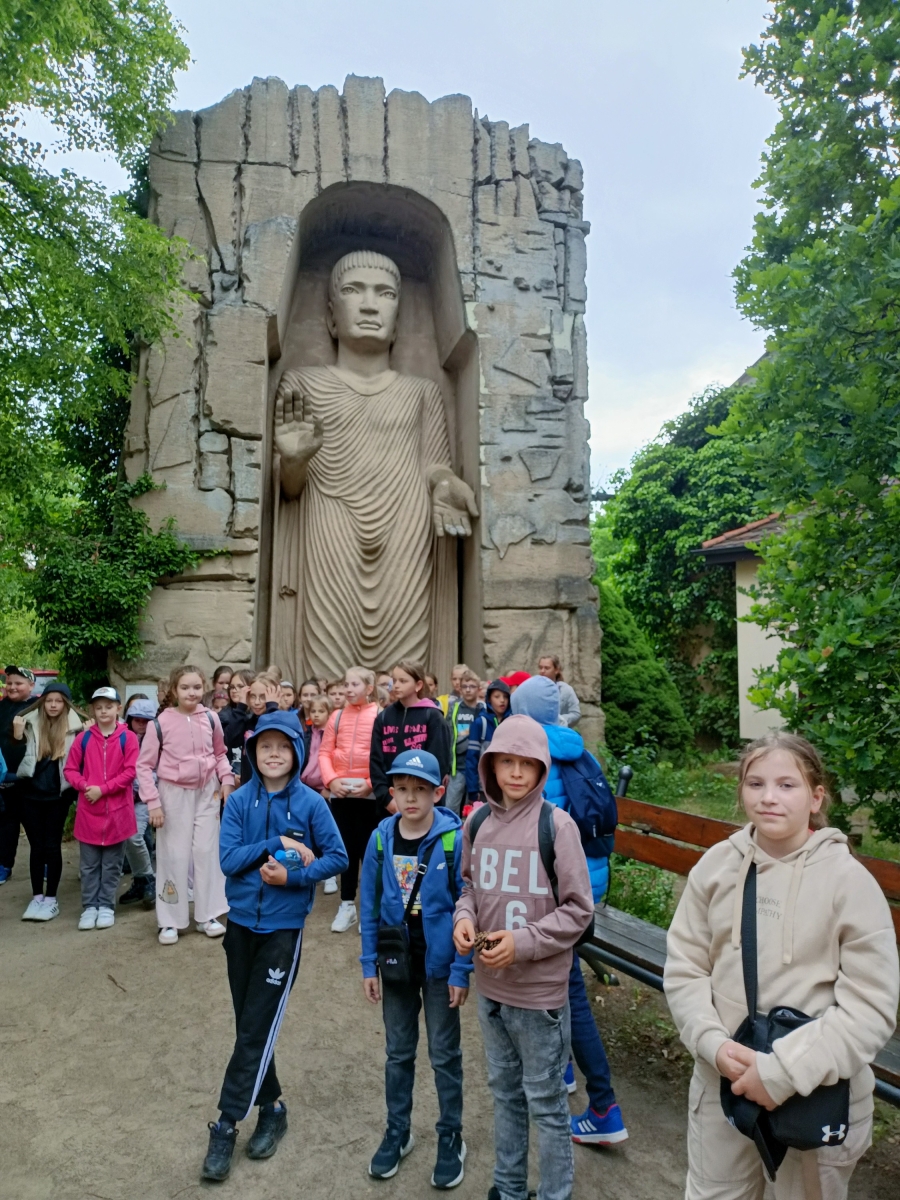 Uczniowie klas trzecich Szkoły Podstawowej w Malanowie, 14 czerwca 2023r., wybrali się na wycieczkę do stolicy Wielkopolski. Pierwszym punktem wycieczki był pobyt w Muzeum Arkadego Fiedlera w Puszczykowie. W dawnym domu pisarza – podróżnika mieści się muzeum poświęcone jego pamięci. Wnętrze budynku roztacza niesamowity klimat dalekich podróży. Zgromadzone eksponaty to prawdziwa mieszanka kultur, przedmiotów i związanych z nimi wierzeń. Na ścianach wiszą indiańskie maski i galeria fotografii. Egzotykę przywołują wielobarwne motyle wyeksponowane w gablotach, wypchane tukany, krokodyle i kajmany i wiele innych. W Ogrodzie Kultur i Tolerancji okalającym willę Fiedlerów dzieci zobaczyły indiański totem, kalendarz Azteków, legendarną Bramę Słońca, pomnik Sfinksa, a także piramidę wzorowaną na najsłynniejszej piramidzie świata - piramidzie Cheopsa. Największą atrakcją tego miejsca była replika legendarnego żaglowca Krzysztofa Kolumba wykonana w skali 1:1 – „Santa Maria”.