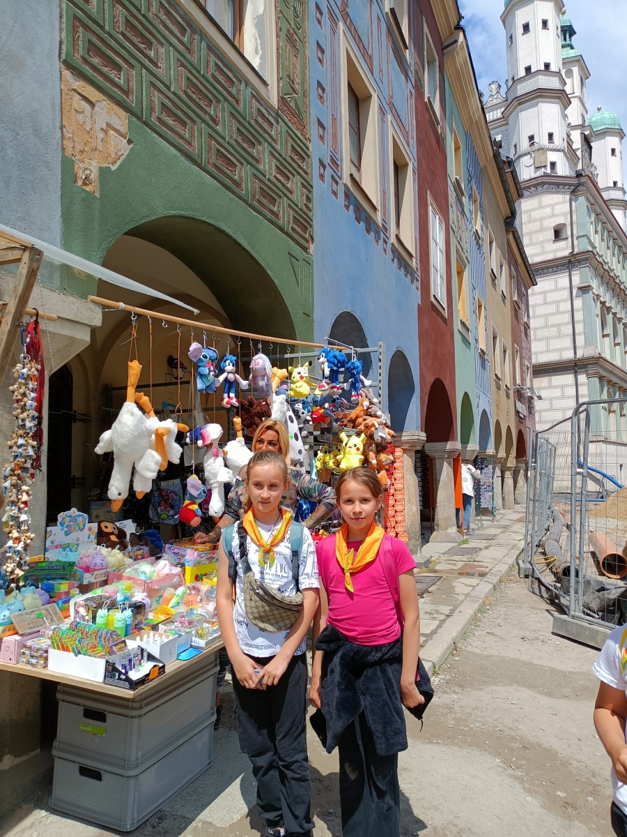 Kolejnym puntem wycieczki był pobyt na Starym Rynku. W oczekiwaniu na godzinę 12:00 i trykające się na wieży Ratusza koziołki, dzieci słuchały legend i opowieści związanych z Poznaniem i jego historią, kupowały pamiątki.