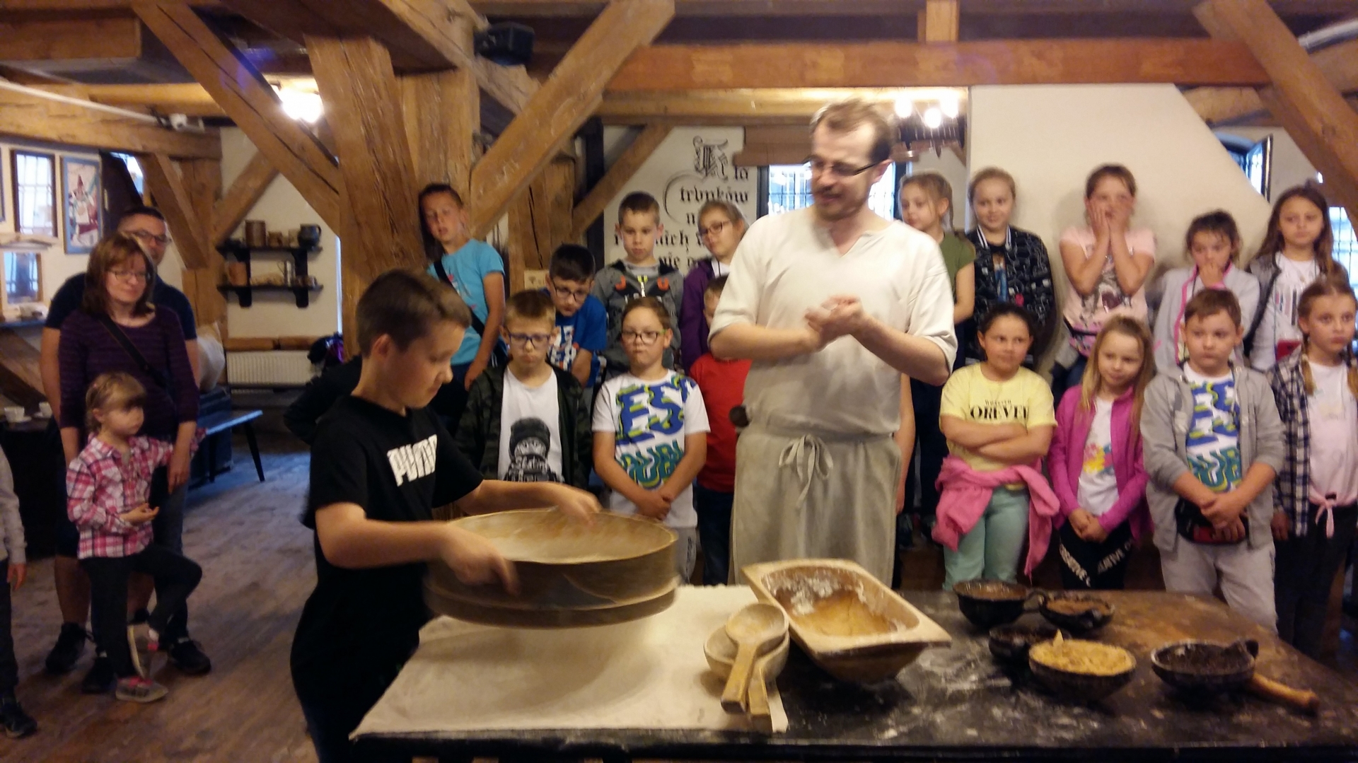 Po obiedzie uczniowie pojechali do Centrum Nauki – Młyn Wiedzy. Pobyt okazał się ogromną dawką wiedzy i zabawy. Stworzone w sposób interaktywny stanowiska pozwalały, aby zwiedzający mogli sami, w bezpiecznych warunkach przeprowadzać doświadczenia i badać zjawiska z różnych dziedzin nauki. Kolejne piętra dostarczały nowych, coraz ciekawszych wrażeń, a czas tam spędzony minął bardzo szybko.