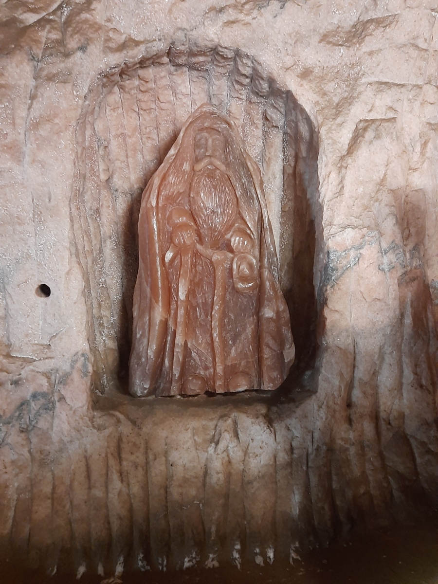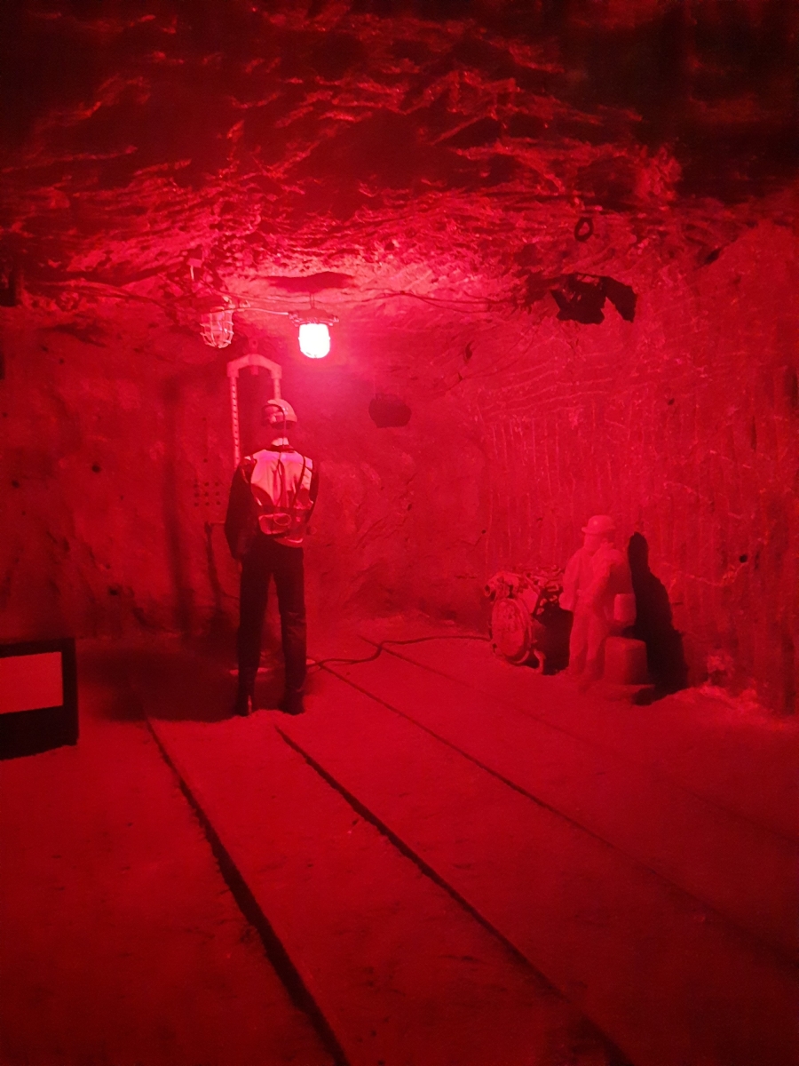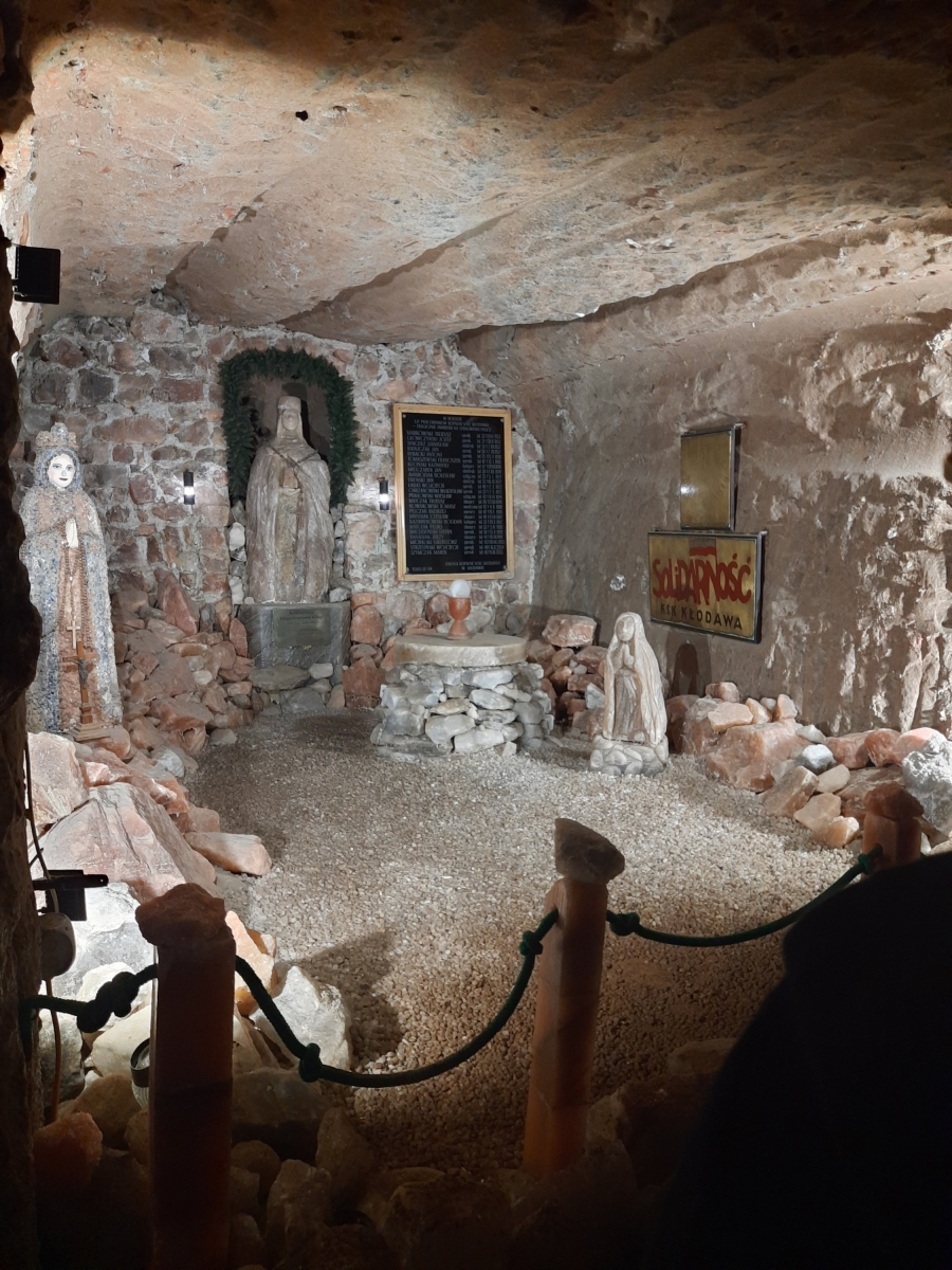 Po dotarciu na miejsce spotkaliśmy się z naszymi przewodnikami. Ze względów bezpieczeństwa wszyscy otrzymaliśmy górnicze kaski, a przewodnicy poinstruowali nas jak należy zachować się w kopalni. Zwiedzanie rozpoczęło się od zjazdu windą z prędkością 6 m/s. Było to niezapomniane przeżycie. Znaleźliśmy się 600 metrów pod ziemią na najgłębszej na świecie trasie turystycznej. Pod nami na głębokości 750 metrów pracowali górnicy. Rozpoczęliśmy wędrówkę solnymi korytarzowymi do kaplicy św. Kingi – patronki górników, gdzie wysłuchaliśmy legendy o św. Kindze i jej magicznym pierścieniu, który wskazał pokłady soli w Polsce. Zwiedzając wyeksploatowane komory solne poznaliśmy historię powstania kłodawskich złóż. Zobaczyliśmy maszyny używane w podziemnym górnictwie solnym. Byliśmy świadkami inscenizowanego wybuchu kruszącego solne skały. Dowiedzieliśmy się wiele o ciężkiej pracy górnika i różnych metodach pozyskiwania soli. Podziwialiśmy liczne solne rzeźby i witraże z soli. W jednej z potężnych sal odbywają się obchody górniczych świąt, a także inne uroczystości. Pobito tu rekord Guinnessa w kategorii – najniżej odbywający się koncert muzyczny na świecie wykonany przez orkiestrę kaliską. Kopalnia soli w Kłodawie wywarła na nas niesamowite wrażenie. Była to fascynująca i niezapomniana wyprawa do wnętrza Ziemi. Na pamiątkę każdy uczeń dostał bryłkę soli o pięknej barwie. Był także czas na kupienie pamiątek.