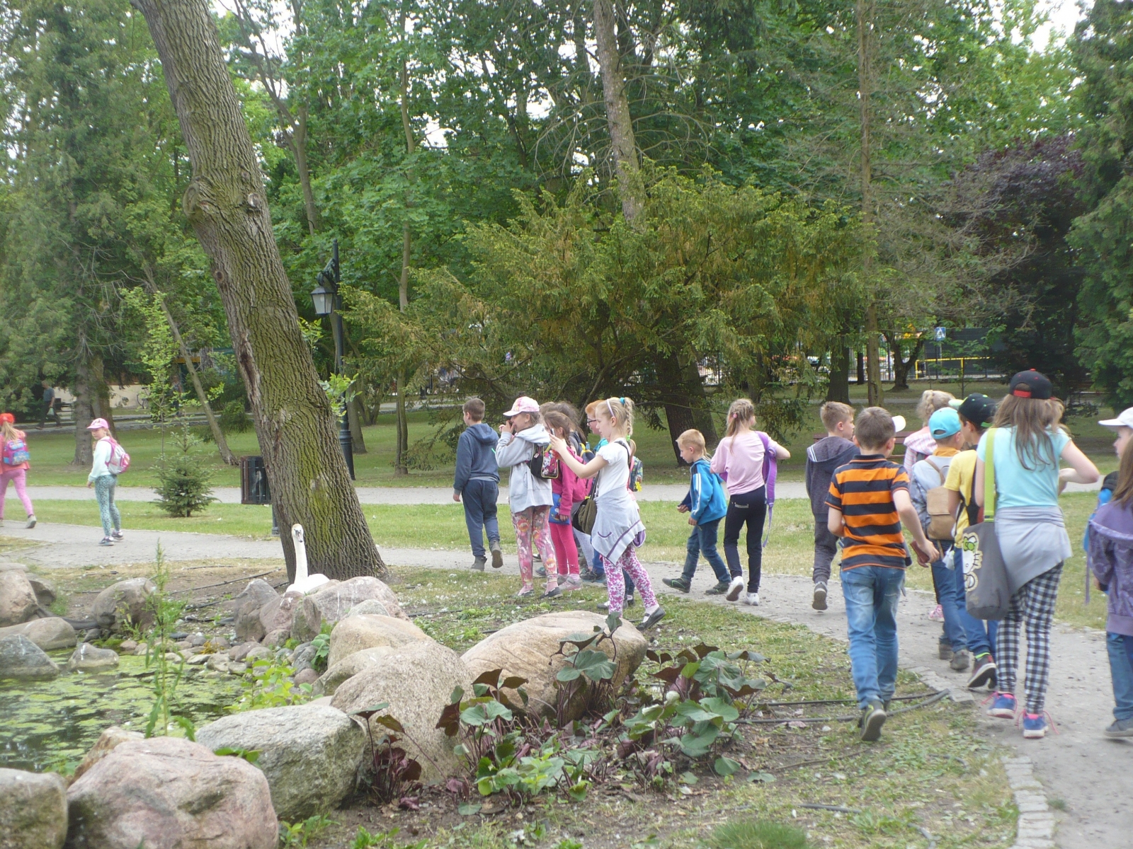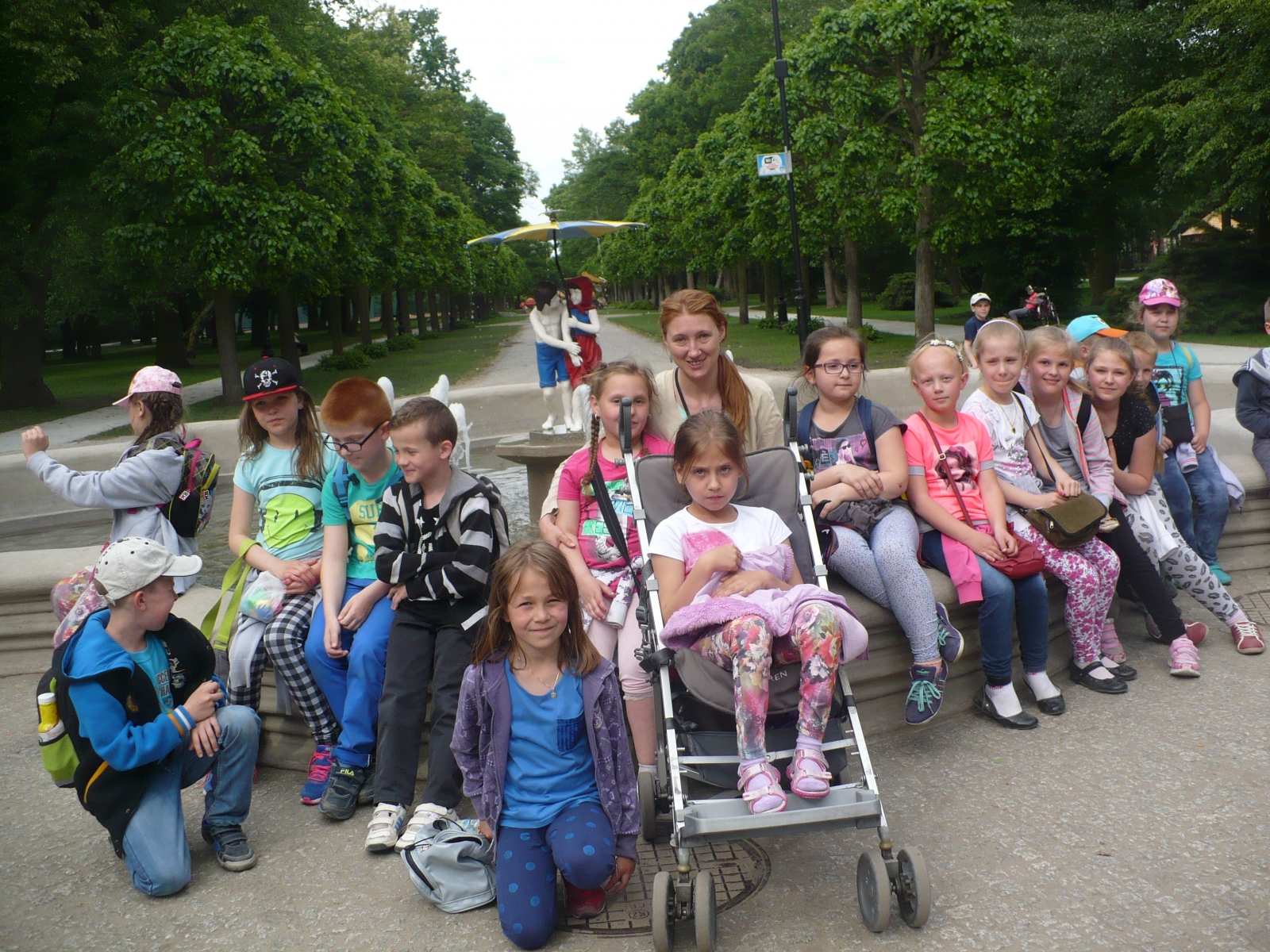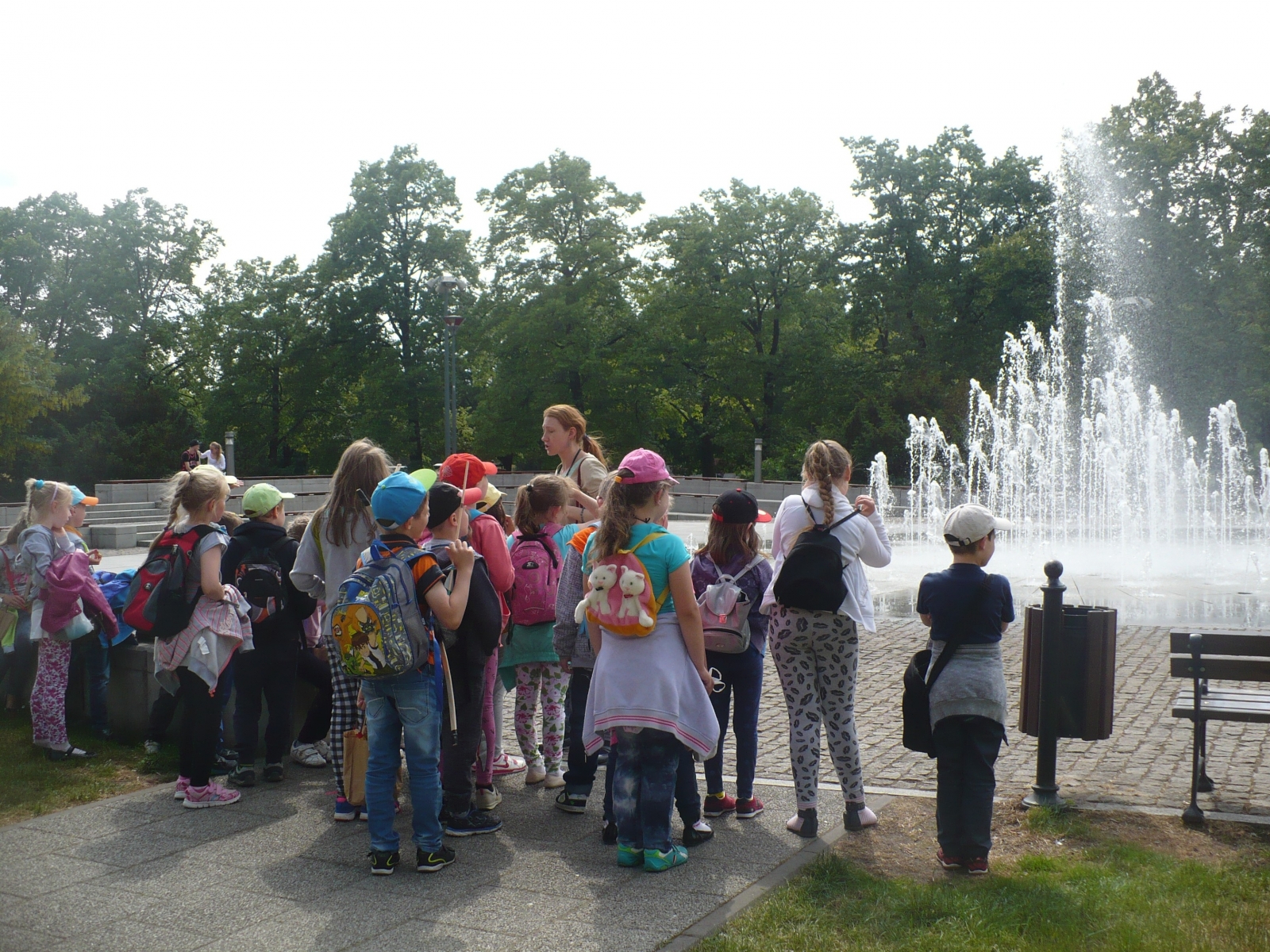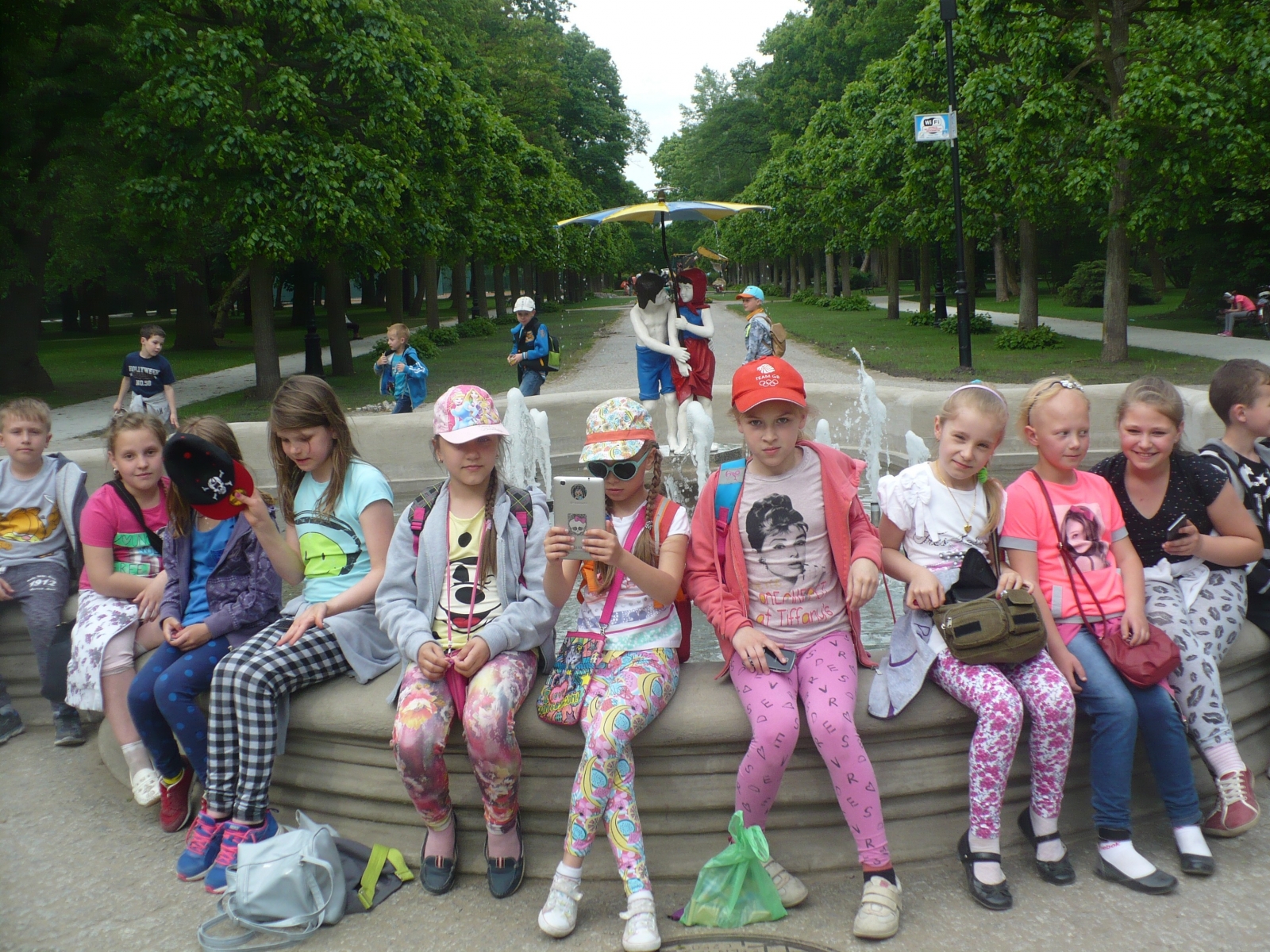 dzieci ruszyły w dalszą drogę do Ciechocinka – słynnego uzdrowiska. Najpierw spacerowały obok Tężni i wdychały solanki. Potem uczniowie podziwiali kolorowe dywany z kwiatów oraz fontanny w Parku Zdrojowym. Największe zainteresowanie wzbudziły piękne pawie; kolorowy – królewski i biały – albinos. Po zrobieniu pamiątkowego zdjęcia przy fontannie „Grzybek” oraz zjedzeniu smacznych lodów dzieci ruszyły w drogę powrotną do domu.