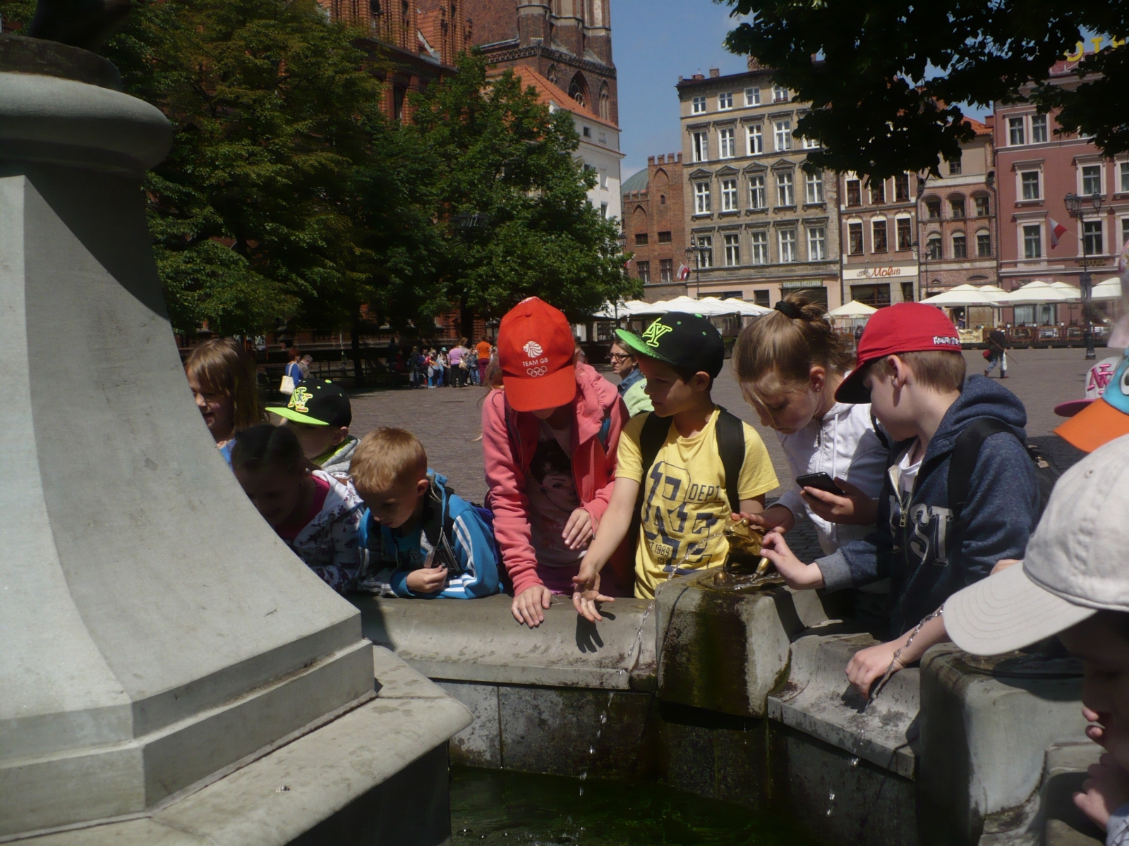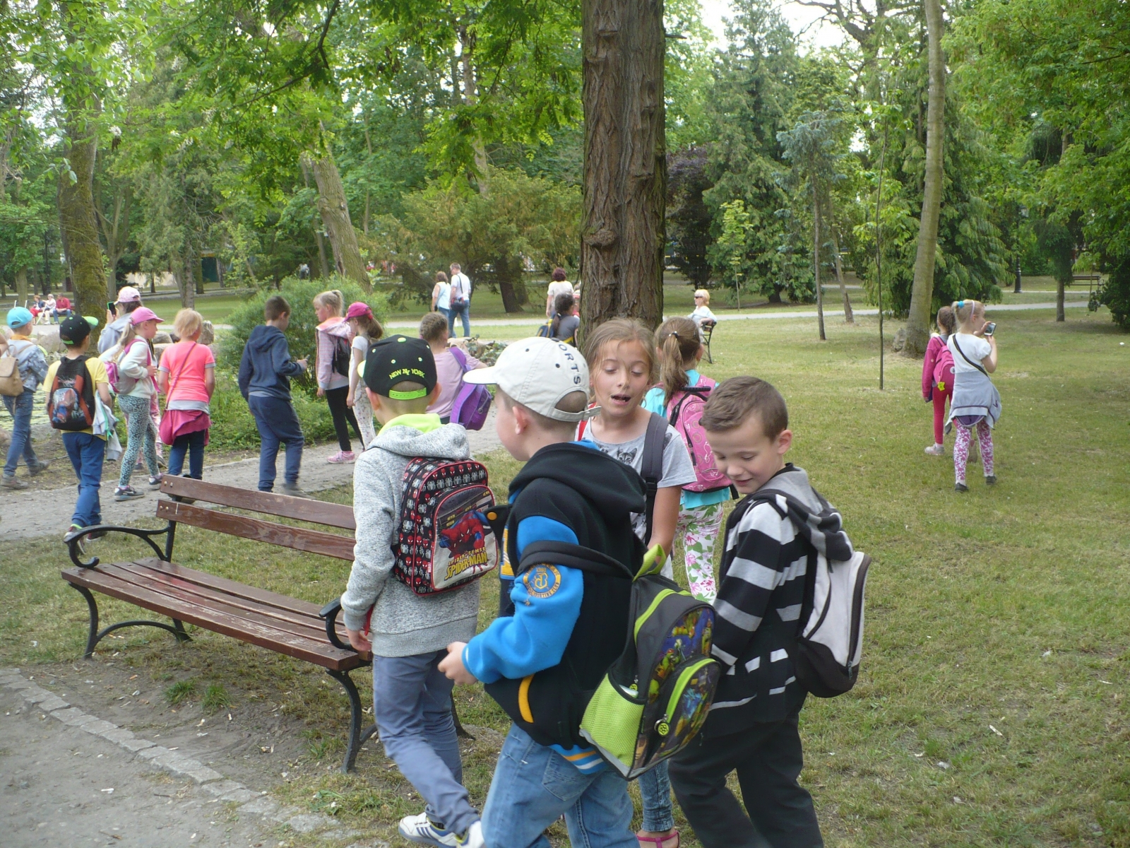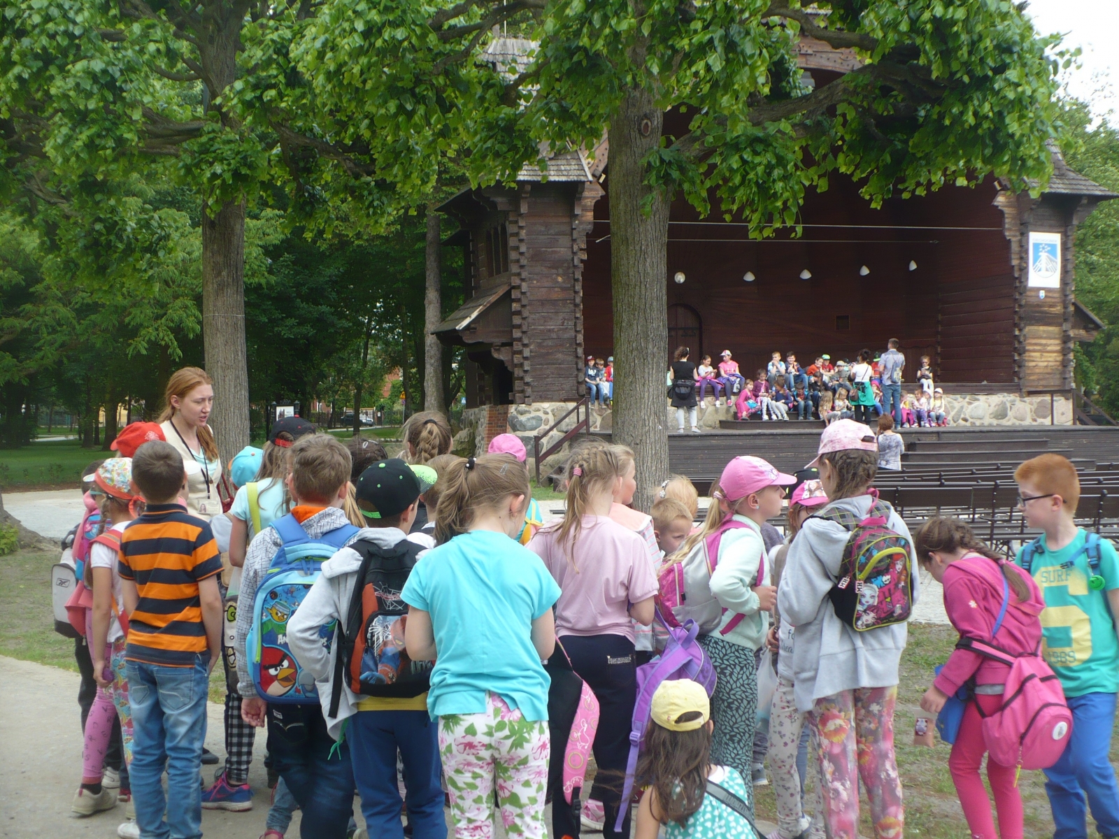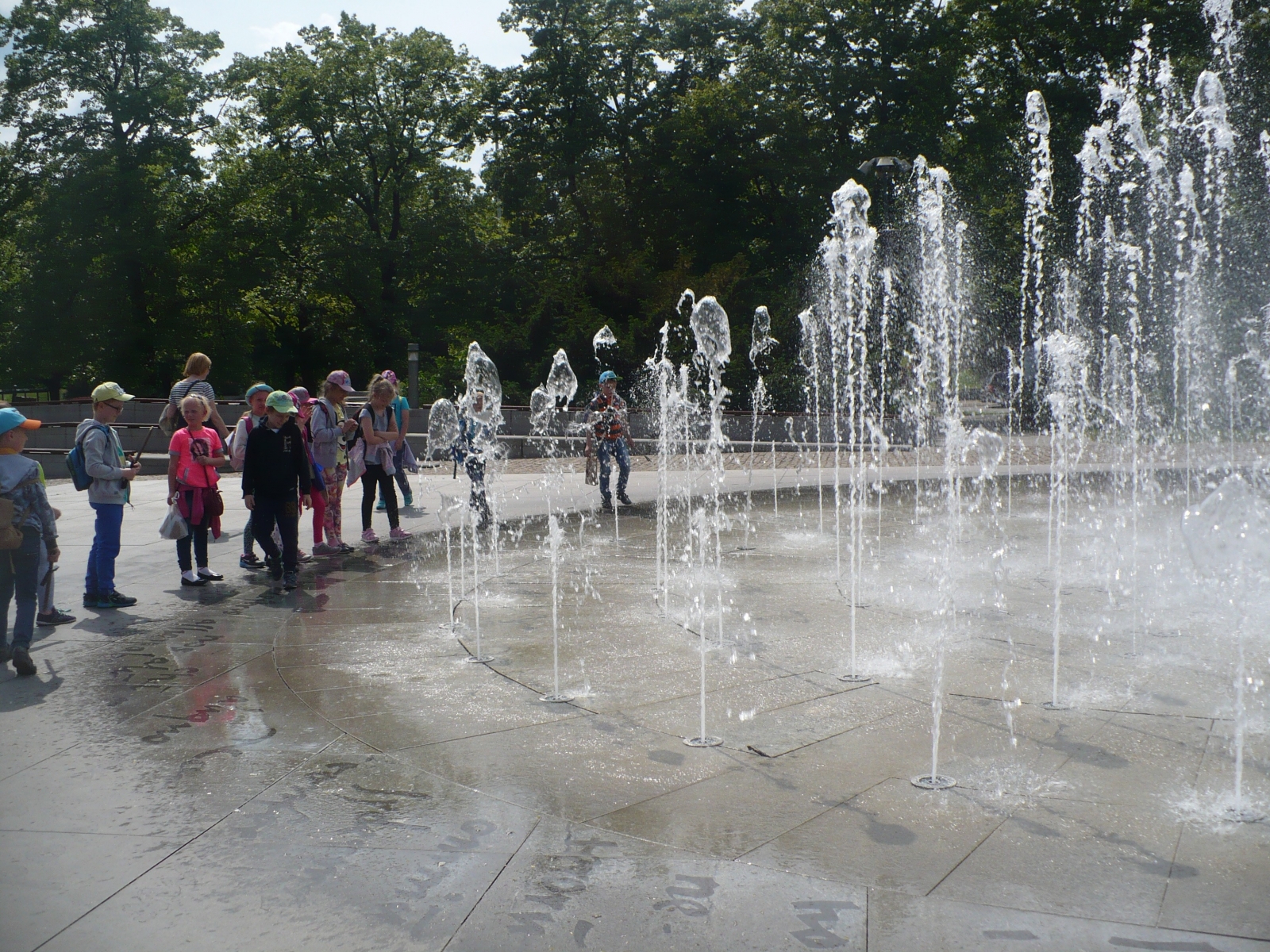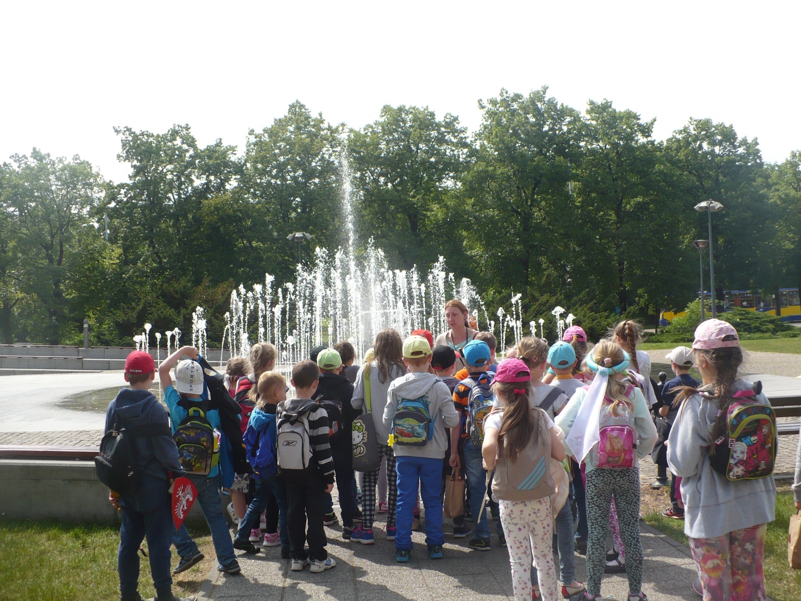 dzieci ruszyły w dalszą drogę do Ciechocinka – słynnego uzdrowiska. Najpierw spacerowały obok Tężni i wdychały solanki. Potem uczniowie podziwiali kolorowe dywany z kwiatów oraz fontanny w Parku Zdrojowym. Największe zainteresowanie wzbudziły piękne pawie; kolorowy – królewski i biały – albinos. Po zrobieniu pamiątkowego zdjęcia przy fontannie „Grzybek” oraz zjedzeniu smacznych lodów dzieci ruszyły w drogę powrotną do domu.
