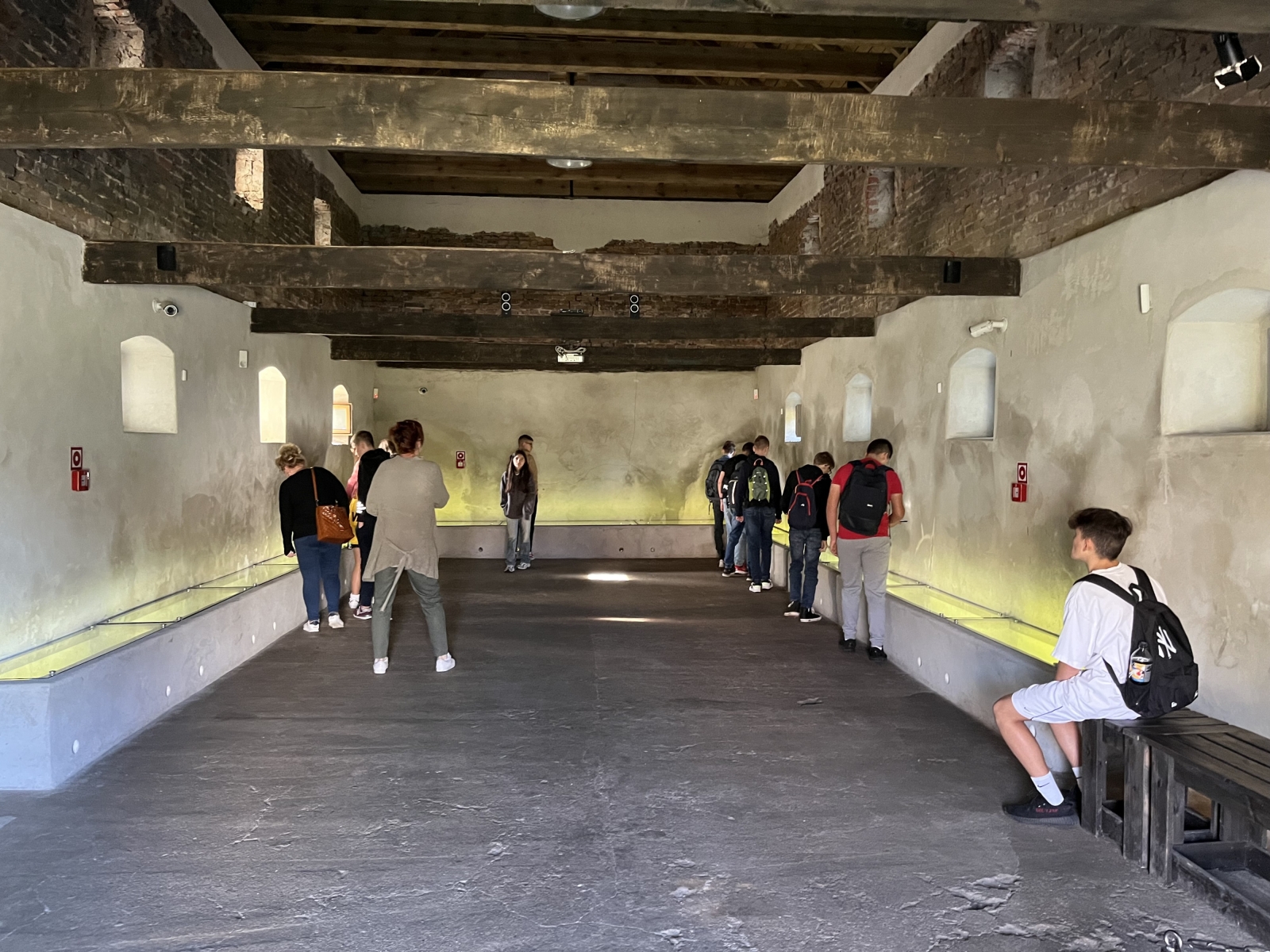 Pani przewodnik przekazała wycieczce wiele informacji dotyczących Obozu Zagłady i dlaczego Niemcy wybrali właśnie to miejsce pod budowę tego kompleksu. Omówiła też historię pałacu, który był częścią terenu obozu. Przewodniczka zapoznała grupę z tematem mobilnych komór gazowych oraz sposobów w jaki Niemcy pozbywali się ciał osób zabitych.