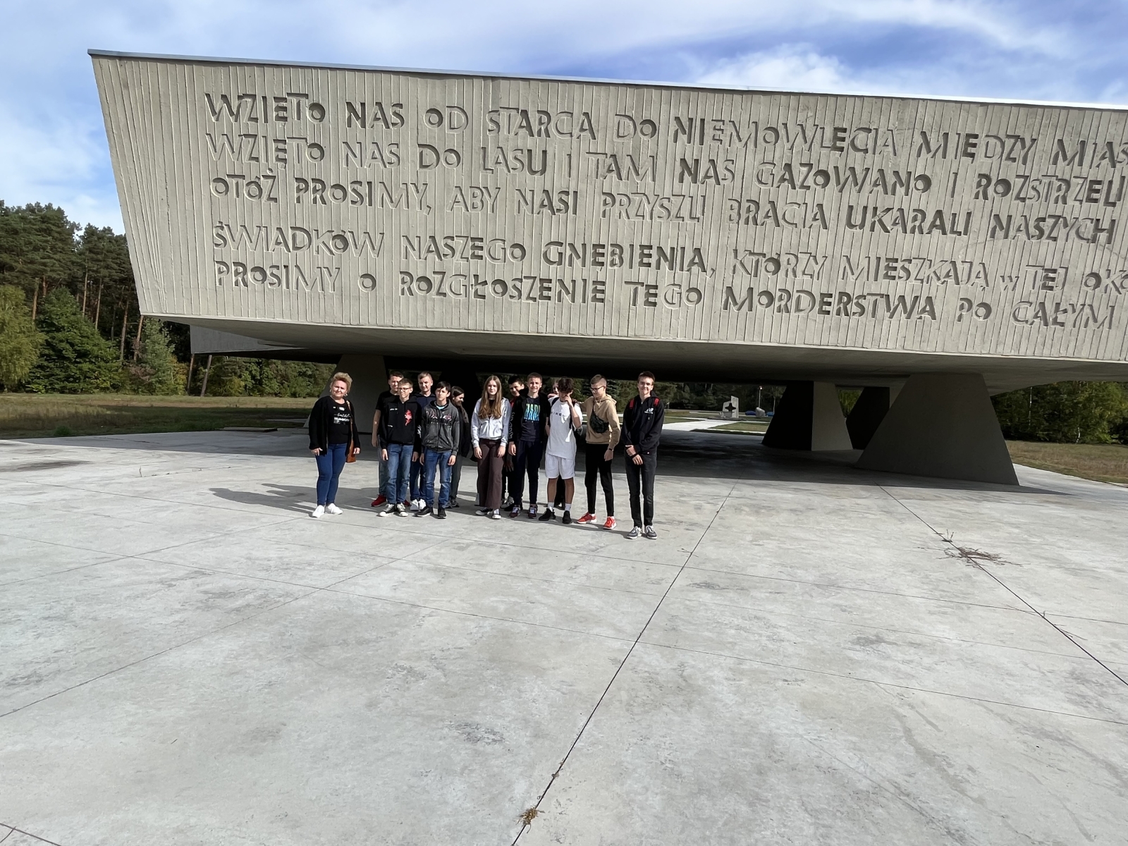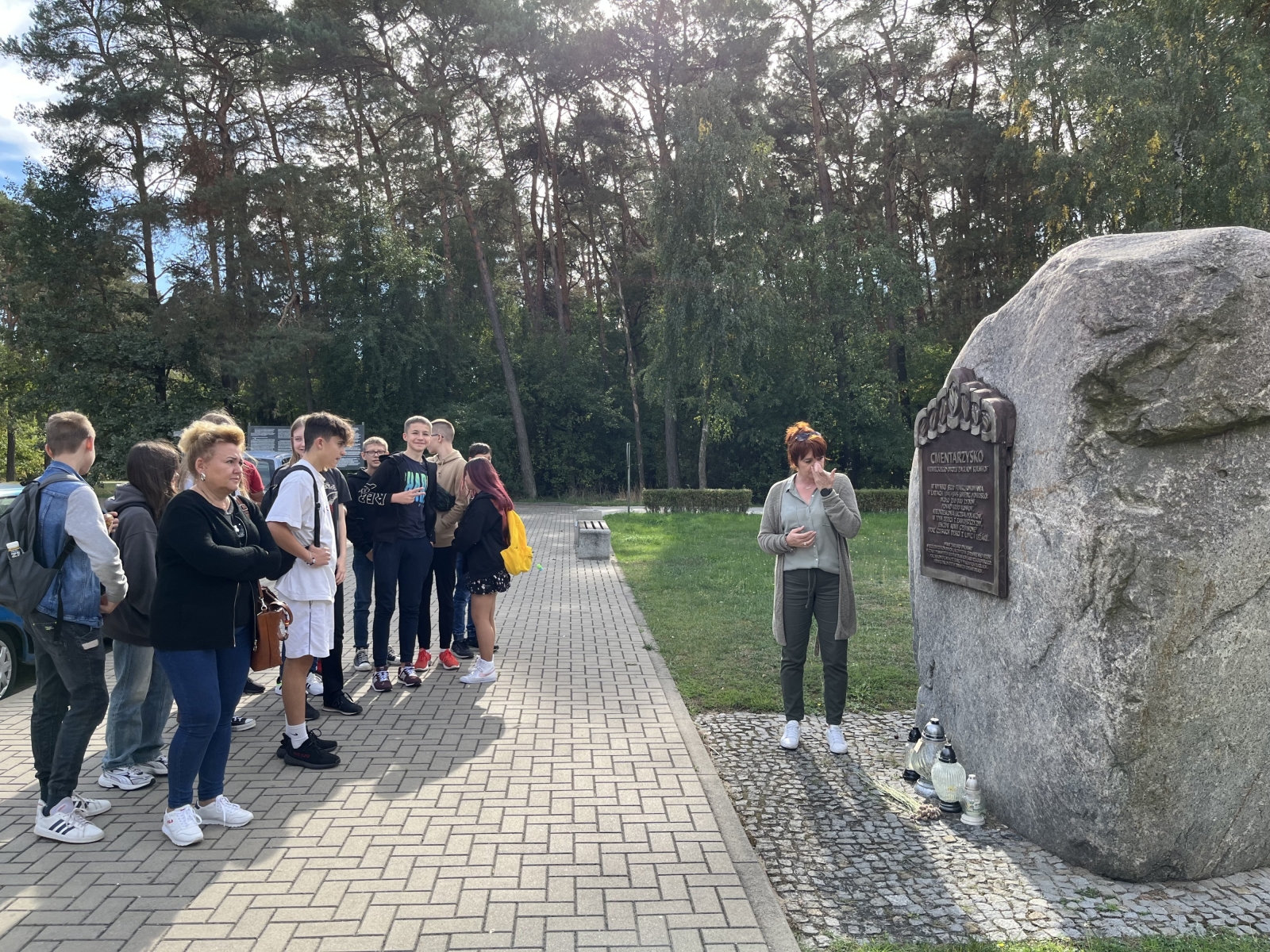 Dnia 3 października klasa 8 a pojechała na wycieczkę edukacyjną do Chełmna. Uczniowie wraz z wychowawczynią o godzinie 8:00 wyruszyli spod szkoły, aby już o godzinie 9:00 zacząć zwiedzanie kompleksu Obozu. Grupa z panią przewodnik zwiedzała Muzeum byłego Obozu Zagłady w Chełmnie nad Nerem.