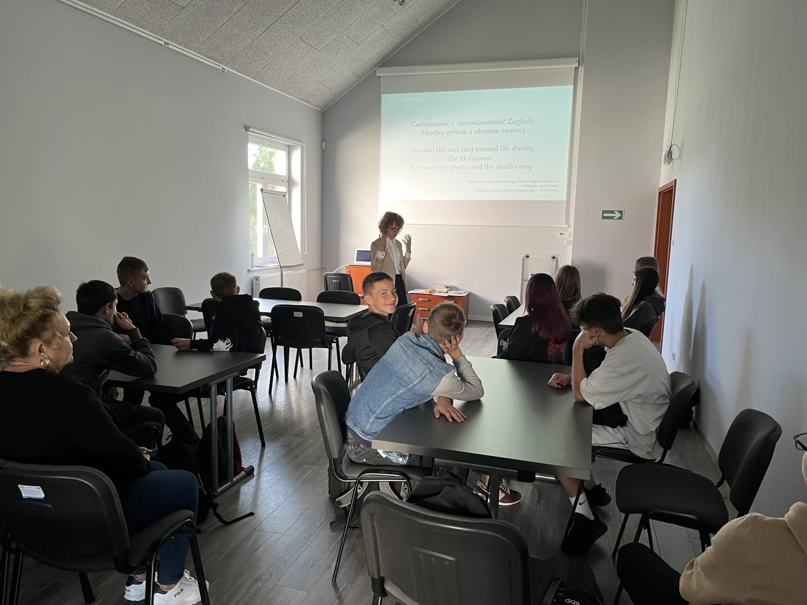 Po zwiedzeniu muzeum grupa udała się na 40 minutowe zajęcia edukacyjne na których uczniowie dowiedzieli się o życiu w gettach, o warunkach w jakich ludzie wysiedleni musieli żyć i jak w takich trudnych czasach radzili sobie z problemami życia codziennego .