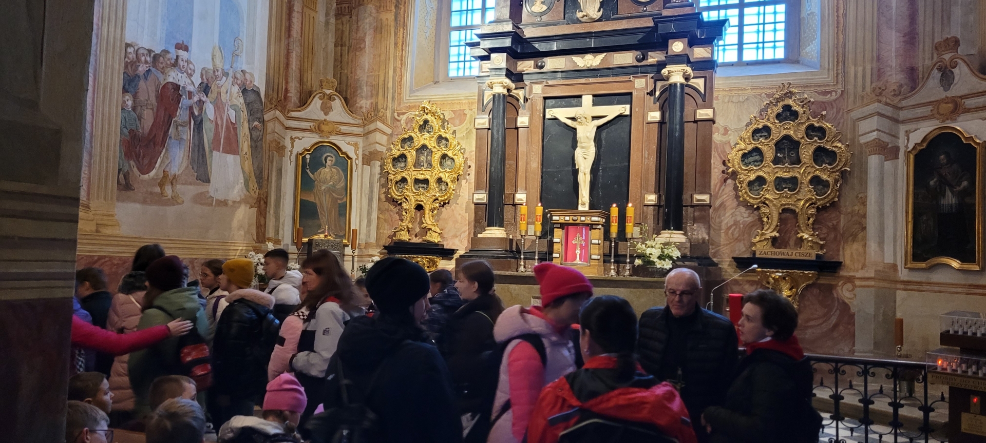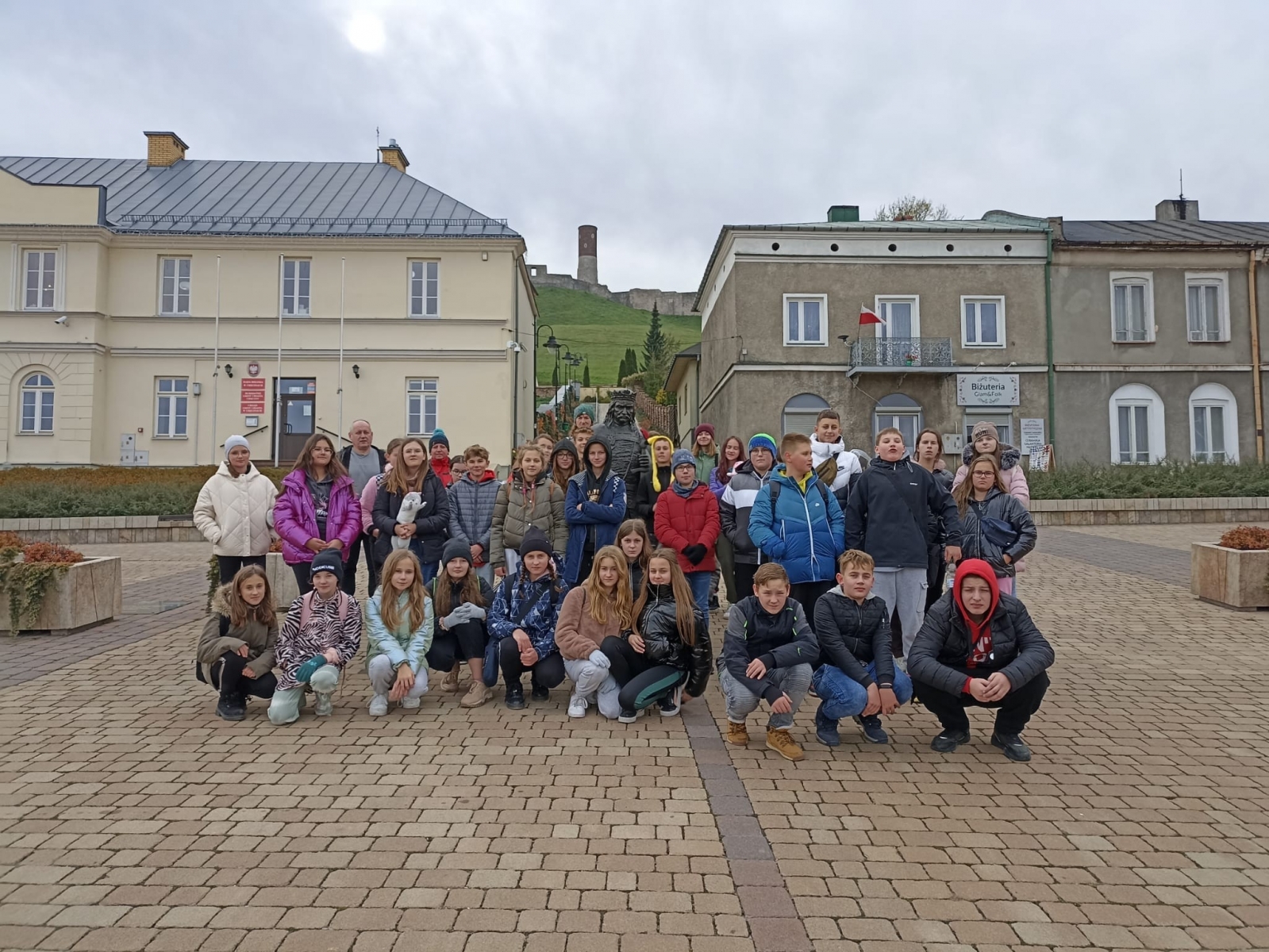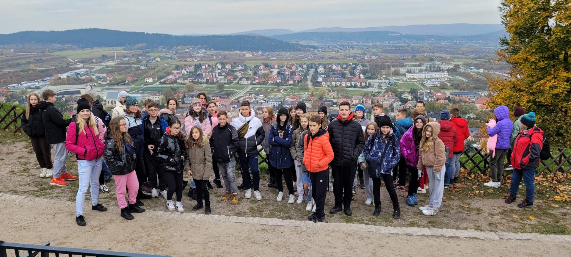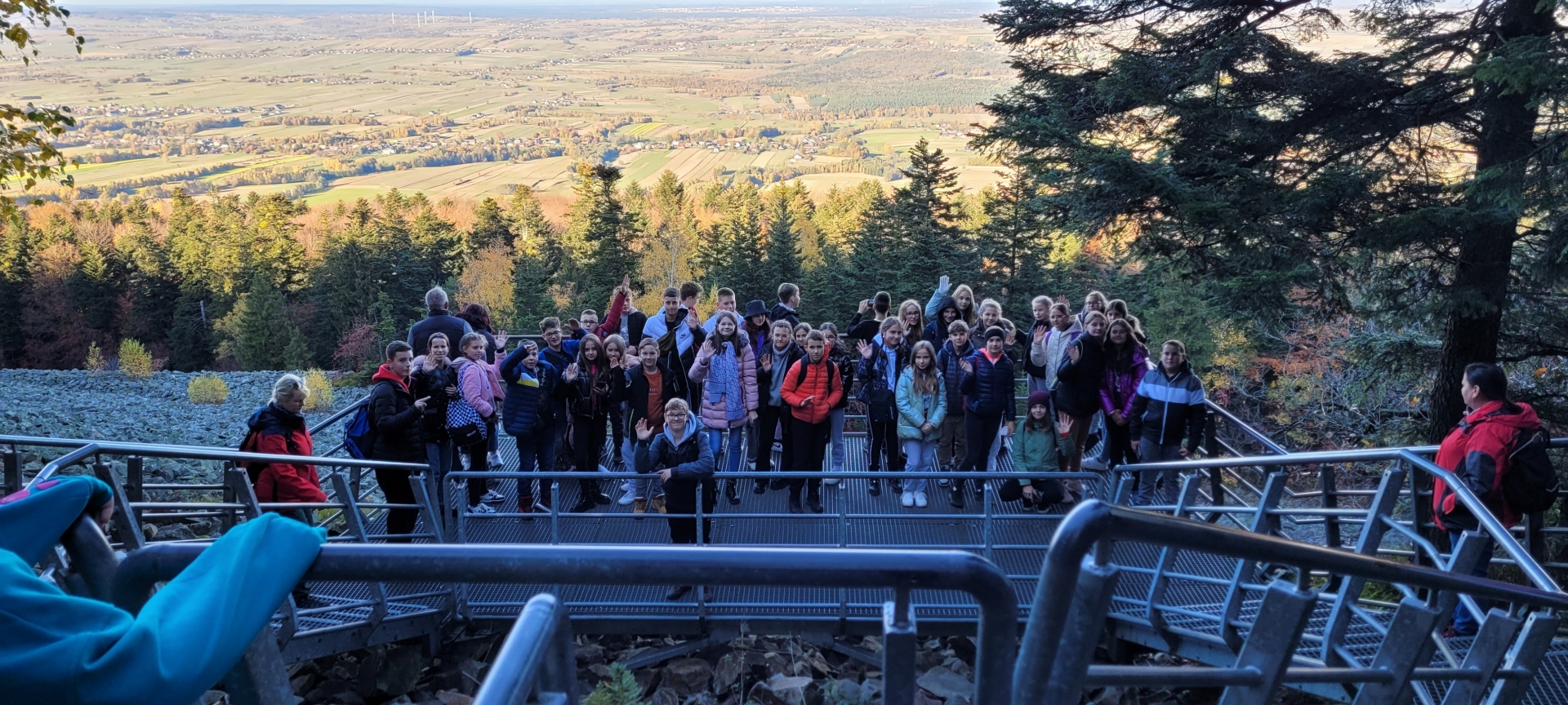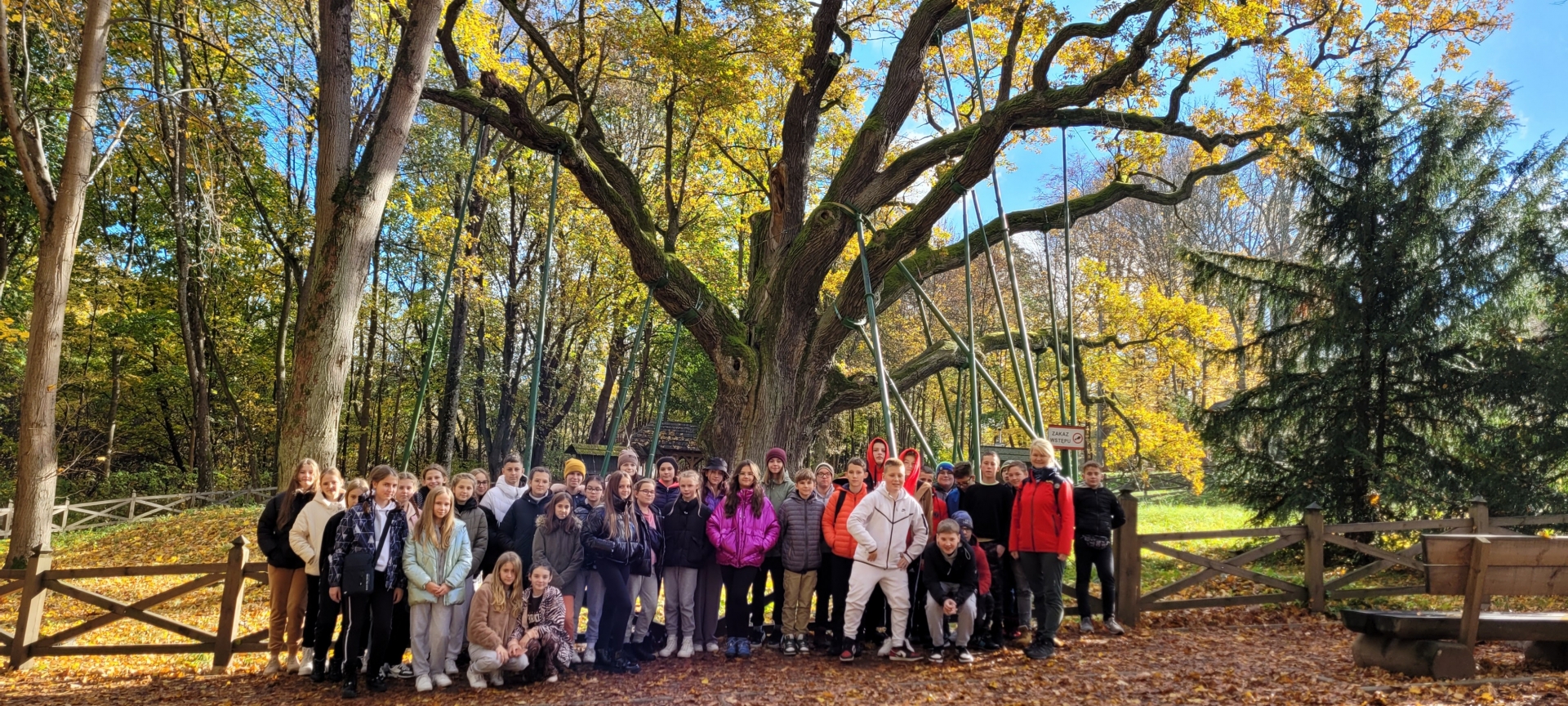 W dniach 20 – 21 października 2022 r. uczniowie klas szóstych uczestniczyli w wycieczce w Góry Świętokrzyskie. Pierwszym punktem na trasie wycieczki był Dąb Bartek – król Puszczy Świętokrzyskiej, jeden z najstarszych w Polsce dębów, od 1954 roku chroniony prawem jako pomnik przyrody. Następnie przejechaliśmy do miejscowości Huta Szklana, skąd wyruszyliśmy na Łysą Górę - drugi szczyt pod względem wysokości w Górach Świętokrzyskich, położony we wschodniej części pasma Łysogór. Na Łysej Górze zwiedziliśmy Muzeum Przyrodnicze Świętokrzyskiego Parku Narodowego, gdzie obejrzeliśmy makietę współczesnego krajobrazu terenu parku i jego okolic oraz makietę przedstawiającą pierwotny krajobraz, zanim człowiek zaczął przekształcać teren. Zapoznaliśmy się z geologicznymi i paleontologicznymi dziejami Gór Świętokrzyskich począwszy od paleozoiku, poprzez mezozoik i kenozoik, zobaczyliśmy zwierzęta, rośliny i grzyby żyjące w jodłowym borze mieszanym zwanym jedliną polską, buczynie oraz borze sosnowym. Następnie zwiedziliśmy pobenedyktyński zespół klasztorny, gdzie znajdują się relikwie Drzewa Krzyża Świętego. Relikwie zawierają drewno z krzyża, na którym został ukrzyżowany Jezus Chrystus. W podziemiach klasztoru znajduje się kilka krypt, z których najważniejszą jest krypta Jeremiego Wiśniowieckiego, gdzie mogliśmy zobaczyć jego zmumifikowane ciało, które spoczywa w przeszklonej trumnie. W drodze powrotnej odwiedziliśmy galerię widokową na największe świętokrzyskie gołoborze. Po zejściu z Łysej Góry przejechaliśmy do Kielc, gdzie odbyliśmy spacer po zabytkowej części miasta.