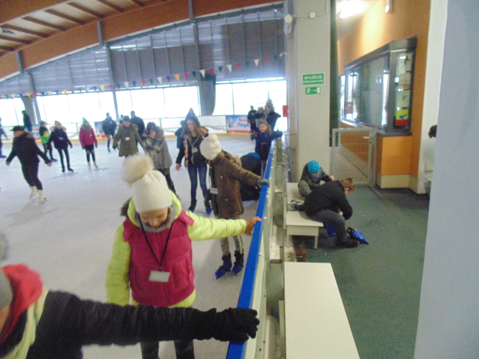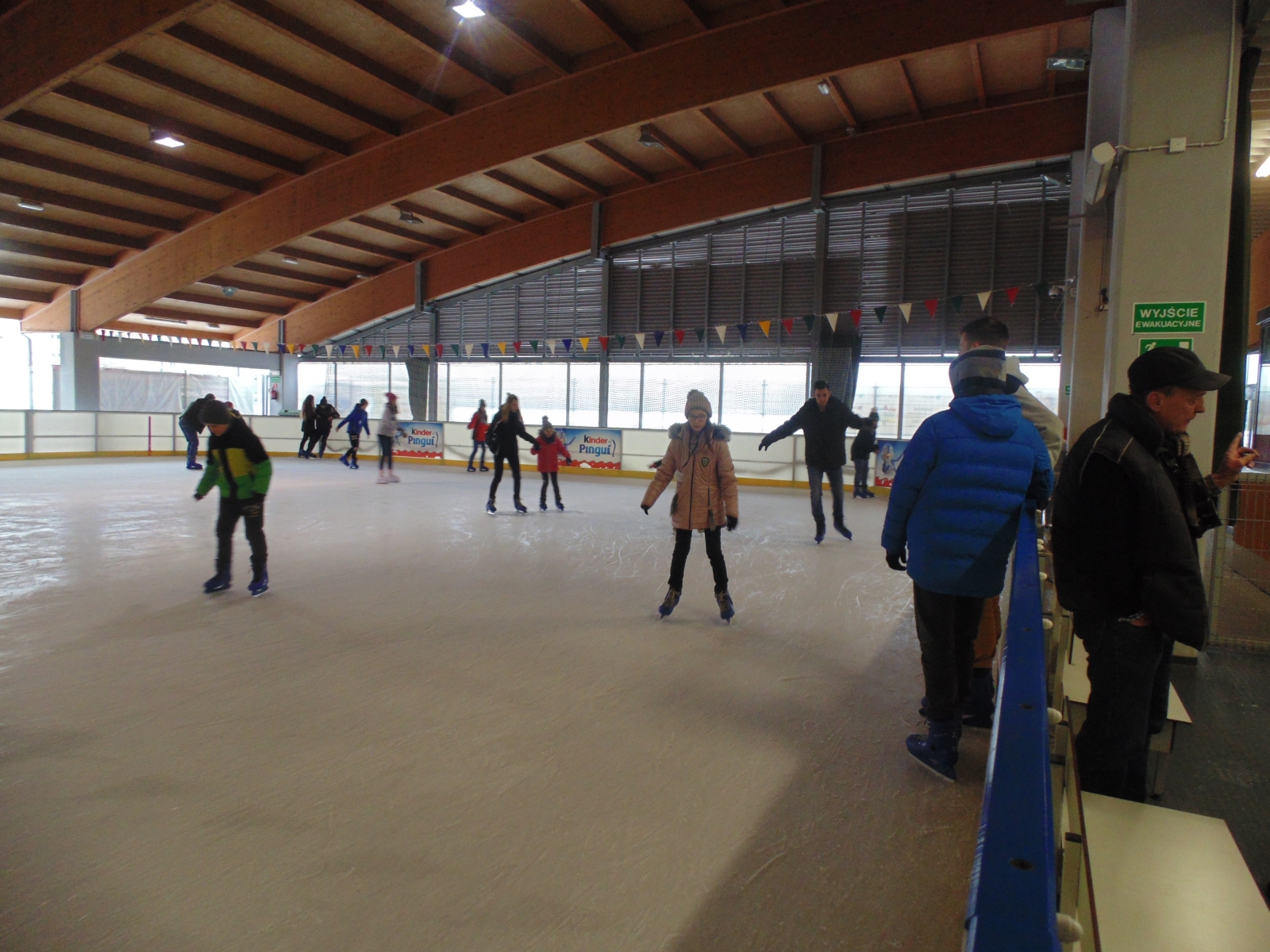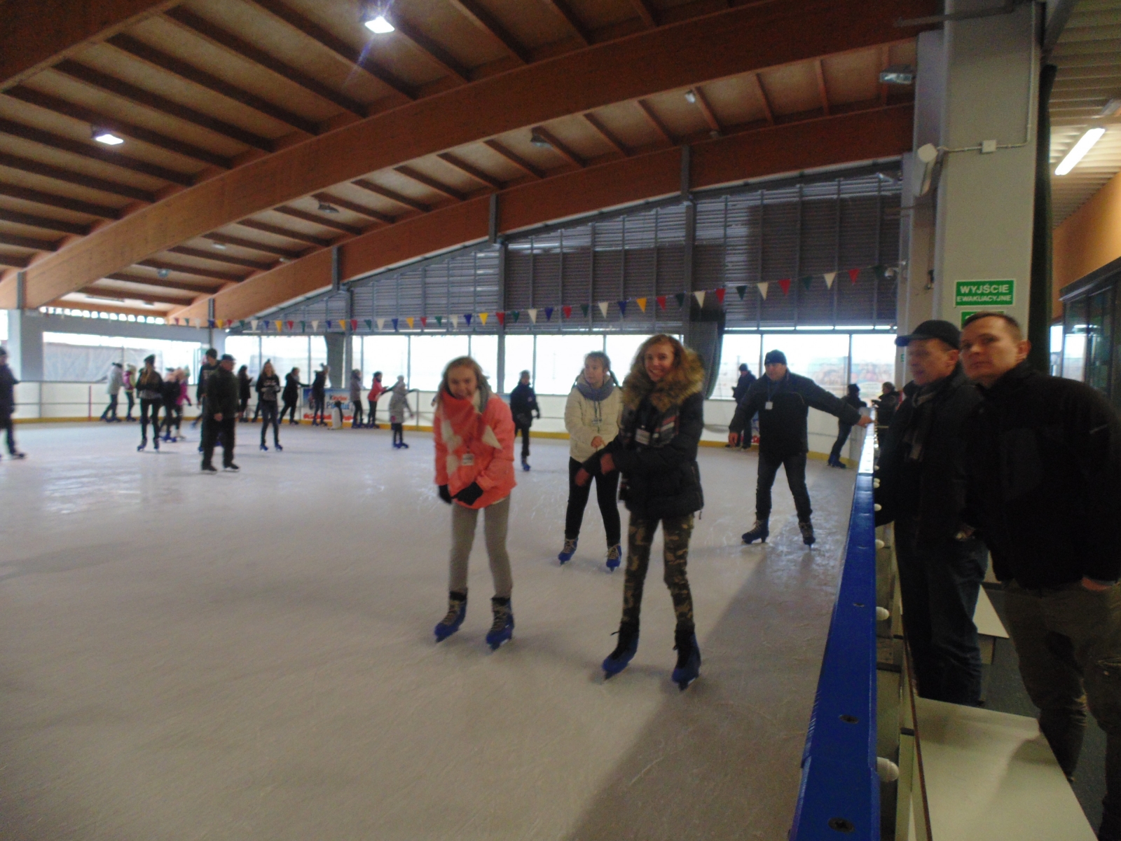 We wtorek 31 stycznia grupa uczniów wraz z opiekunami udała się na lodowisko w Kaliszu. Młodzi adepci zimowego szaleństwa podczas dwóch godzin na lodowisku poznali atrakcję łyżew. Uczniowie zaawansowani rozwijali swoje umiejętności jazdy na lodzie, natomiast początkujący poznali technikę utrzymania się na lodzie, odpychania oraz "miękkiego lądowania". Wszystkie potknięcia, niekontrolowane obroty przyśpieszenia, oraz próby szaleństwa były szybko weryfikowane przez śliskie podłoże. Wszystkim upadkom towarzyszył śmiech i zabawa. Jazda na łyżwach była świetną formą aktywnego odpoczynku w ferie zimowe.