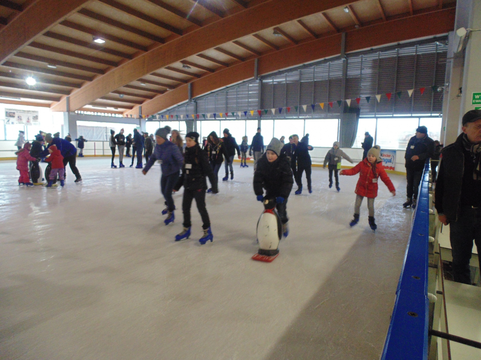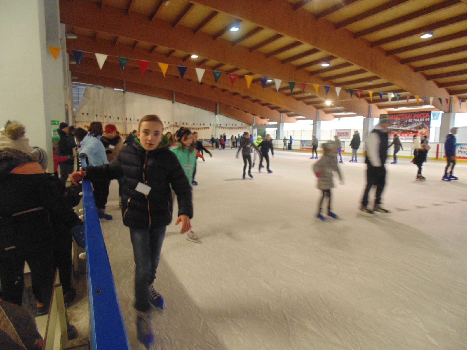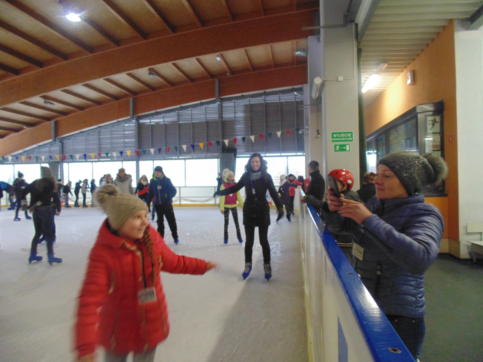 We wtorek 31 stycznia grupa uczniów wraz z opiekunami udała się na lodowisko w Kaliszu. Młodzi adepci zimowego szaleństwa podczas dwóch godzin na lodowisku poznali atrakcję łyżew. Uczniowie zaawansowani rozwijali swoje umiejętności jazdy na lodzie, natomiast początkujący poznali technikę utrzymania się na lodzie, odpychania oraz "miękkiego lądowania". Wszystkie potknięcia, niekontrolowane obroty przyśpieszenia, oraz próby szaleństwa były szybko weryfikowane przez śliskie podłoże. Wszystkim upadkom towarzyszył śmiech i zabawa. Jazda na łyżwach była świetną formą aktywnego odpoczynku w ferie zimowe.