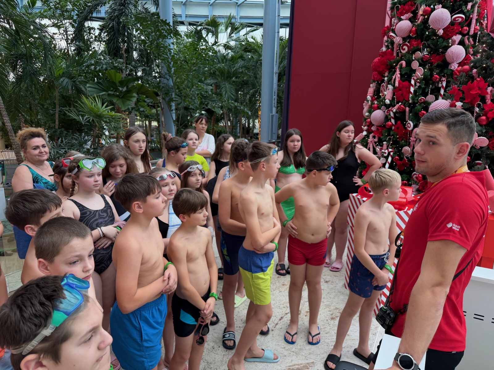 Nad bezpieczeństwem czuwali także ratownicy, którzy spotkanie rozpoczęli od przypomnienia regulaminu korzystania z pływalni.