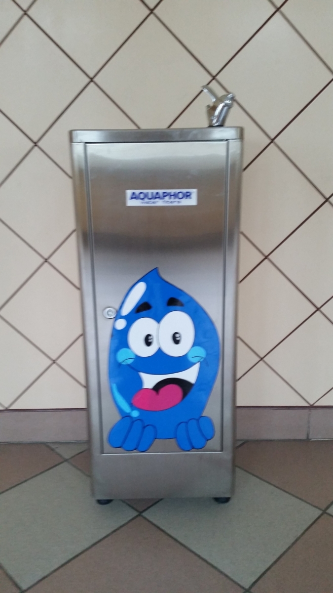 Dbając o zdrowy styl życia naszych uczniów szkoła zakupiła i zamontowała "poidełka", które zapewniają naszym podopiecznym czystą i zdrową wodę. Jak zapewnia producent- "Dzięki umieszczonemu wewnątrz poidełka trójstopniowemu filtrowi stacjonarnemu AQUAPHOR Kryształ B ECO z membraną kapilarną, pochodząca z niego woda jest krystalicznie czysta i świeża. Membrana kapilarna poza działaniem bakteriostatycznym jest w stanie zatrzymać bakterie pochodzące z wodociągu (dzięki ultrafiltracji do 0,1 mikrona). Woda, oczyszczona przez poidełko AQUAPHOR z systemem Kryształ B ECO posiada właściwości hipoalergiczne i antyoksydacyjne." Mamy nadzieję, że w ten sposób nie tylko będziemy zaspokajać pragnienie uczniów, ale i wpajać zdrowe nawyki żywieniowe.