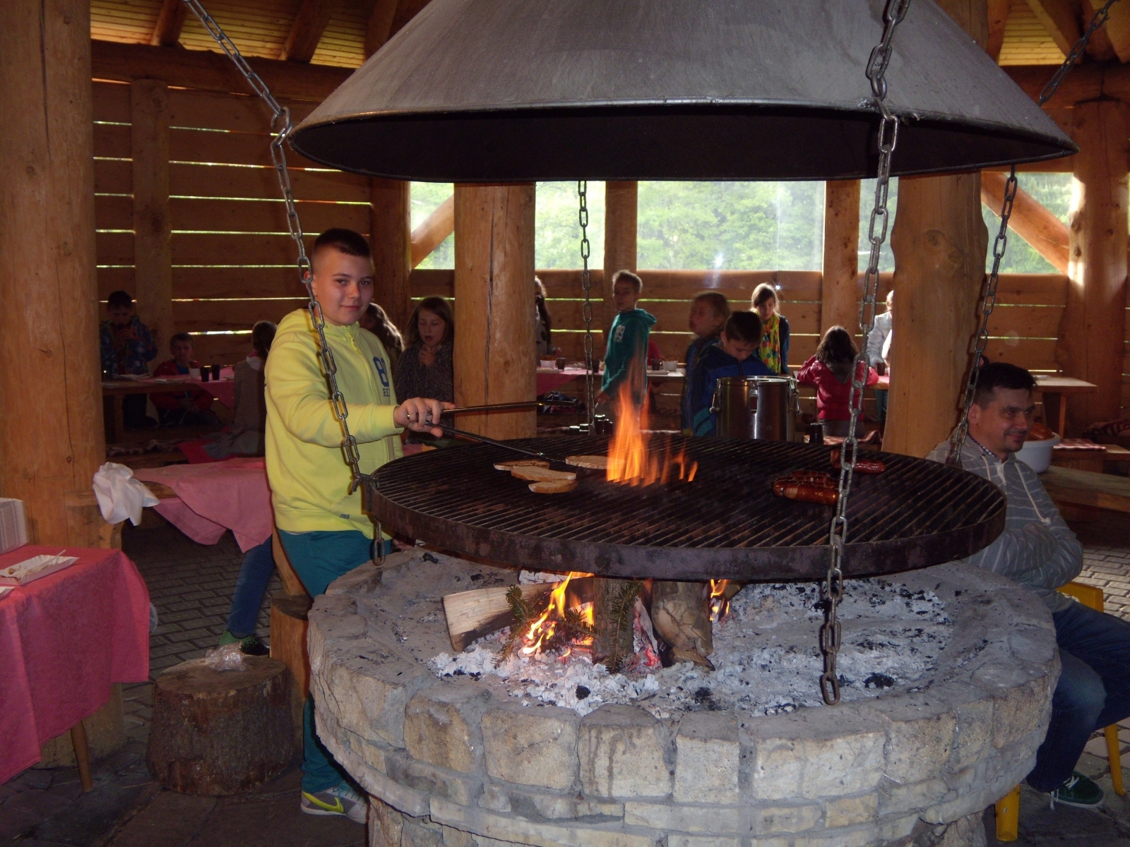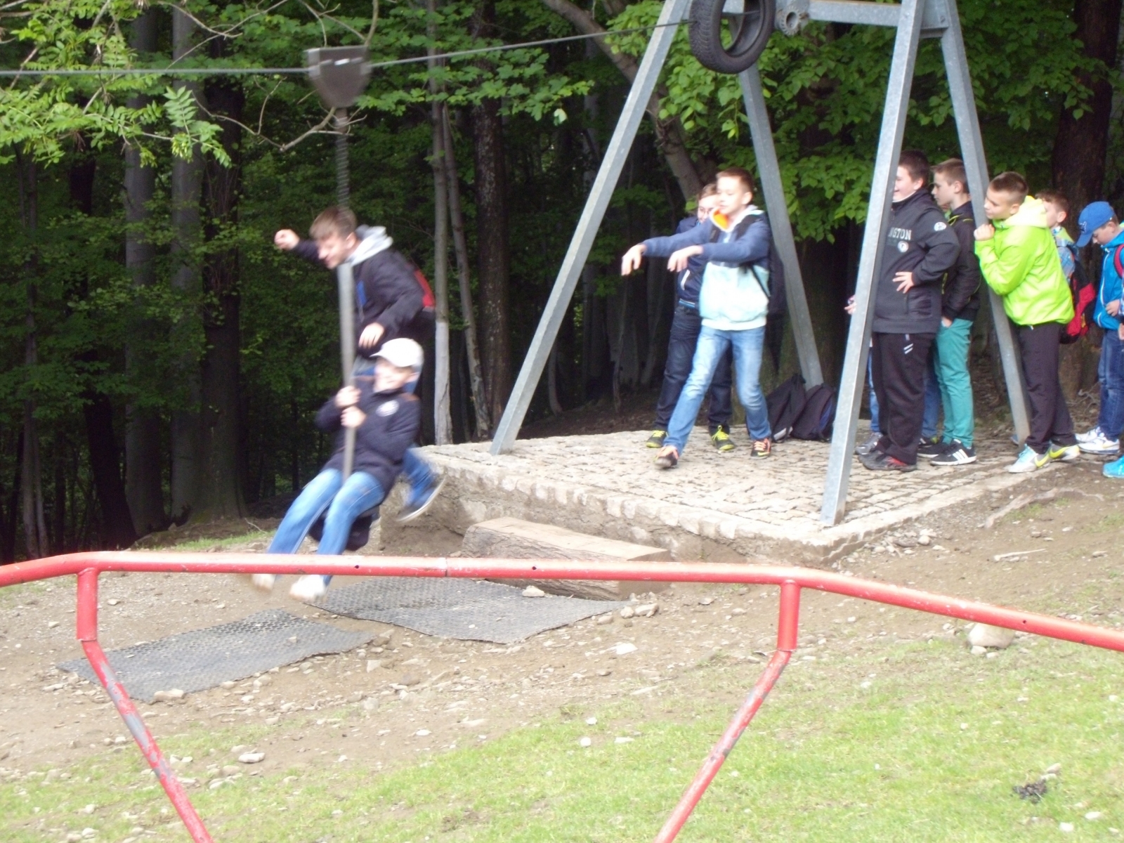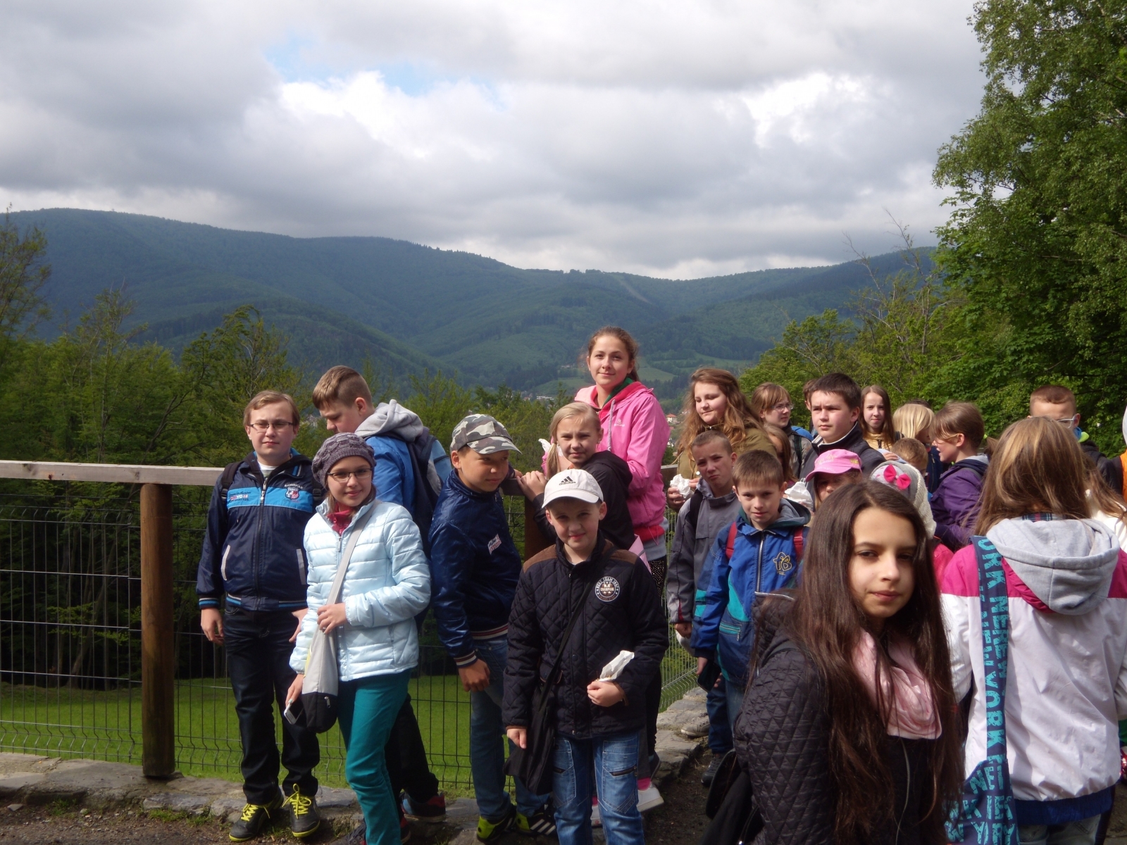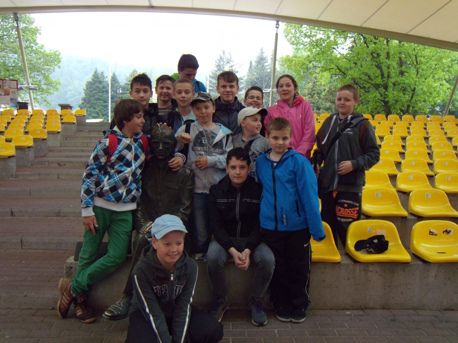 W czwartkowy poranek zwiedzanie rozpoczęliśmy od zobaczenia zapory Wisła Czarne, która została usytuowana w miejscu połączenia dwóch potoków źródłowych rzeki Wisły, wypływających z terenu ścisłego rezerwatu przyrody „Barania Góra”. Od strony tamy podziwialiśmy Pałac Prezydenta Rzeczypospolitej Polskiej w Wiśle, który usytuowany jest na wzgórzu. Około południa zamek podziwialiśmy już z bliska, zwiedzając jego piękne wnętrza oraz olbrzymi ogród z siłownią prezydencką i kaplicą. Zamek został wybudowany w latach 1929-1931 jako dar dla ówczesnego Prezydenta RP – Ignacego Mościckiego. Kolejnym punktem wycieczki była wizyta na skoczni narciarskiej im. Adama Małysza w Wiśle-Malince, jednej z dwóch dużych skoczni w Polsce. Nie lada gratką okazał się przejazd wyciągiem krzesełkowym na skocznię, podczas którego oglądaliśmy piękne widoki Beskidu Śląskiego. Wieczorem personel ośrodka przygotował dla nas prawdziwą niespodziankę – kolację w chacie grillowej. Na olbrzymim palenisku pieczono nam kiełbaski, które w takich warunkach smakowały wyśmienicie. Mieliśmy również ciepłą herbatkę, a na deser pyszną szarlotkę. Po poczęstunku, pełni energii rozegraliśmy mecze piłki nożnej i siatkowej oraz korzystaliśmy z placu zabaw.