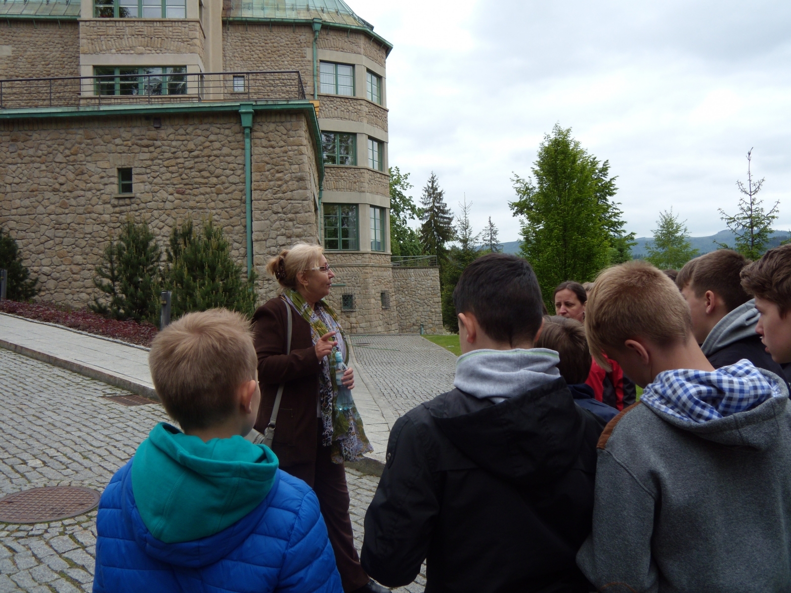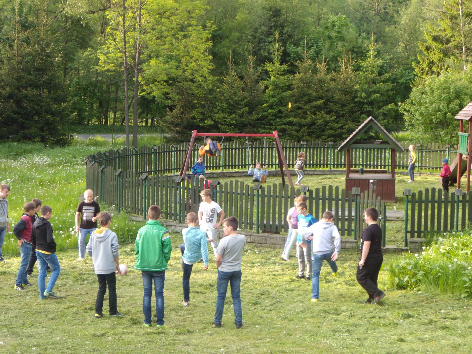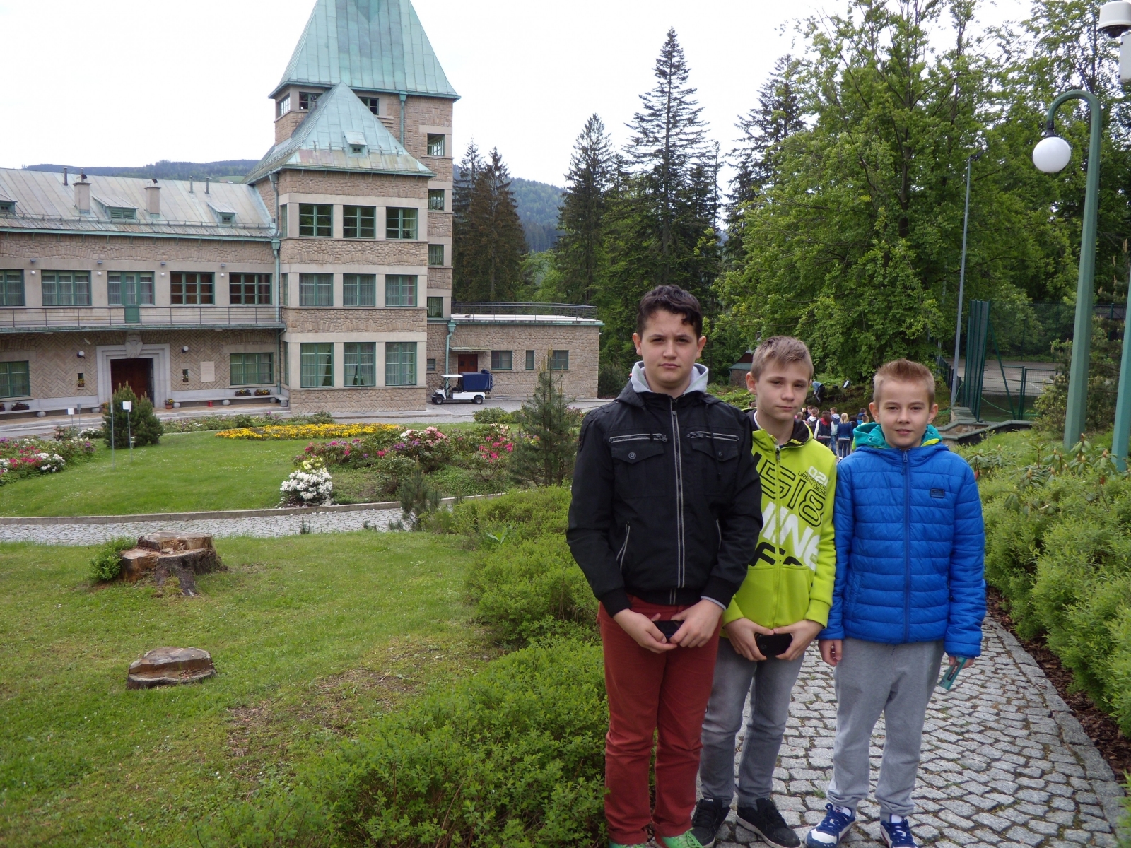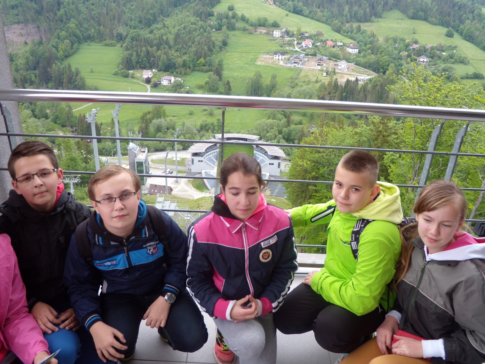 W czwartkowy poranek zwiedzanie rozpoczęliśmy od zobaczenia zapory Wisła Czarne, która została usytuowana w miejscu połączenia dwóch potoków źródłowych rzeki Wisły, wypływających z terenu ścisłego rezerwatu przyrody „Barania Góra”. Od strony tamy podziwialiśmy Pałac Prezydenta Rzeczypospolitej Polskiej w Wiśle, który usytuowany jest na wzgórzu. Około południa zamek podziwialiśmy już z bliska, zwiedzając jego piękne wnętrza oraz olbrzymi ogród z siłownią prezydencką i kaplicą. Zamek został wybudowany w latach 1929-1931 jako dar dla ówczesnego Prezydenta RP – Ignacego Mościckiego. Kolejnym punktem wycieczki była wizyta na skoczni narciarskiej im. Adama Małysza w Wiśle-Malince, jednej z dwóch dużych skoczni w Polsce. Nie lada gratką okazał się przejazd wyciągiem krzesełkowym na skocznię, podczas którego oglądaliśmy piękne widoki Beskidu Śląskiego. Wieczorem personel ośrodka przygotował dla nas prawdziwą niespodziankę – kolację w chacie grillowej. Na olbrzymim palenisku pieczono nam kiełbaski, które w takich warunkach smakowały wyśmienicie. Mieliśmy również ciepłą herbatkę, a na deser pyszną szarlotkę. Po poczęstunku, pełni energii rozegraliśmy mecze piłki nożnej i siatkowej oraz korzystaliśmy z placu zabaw.