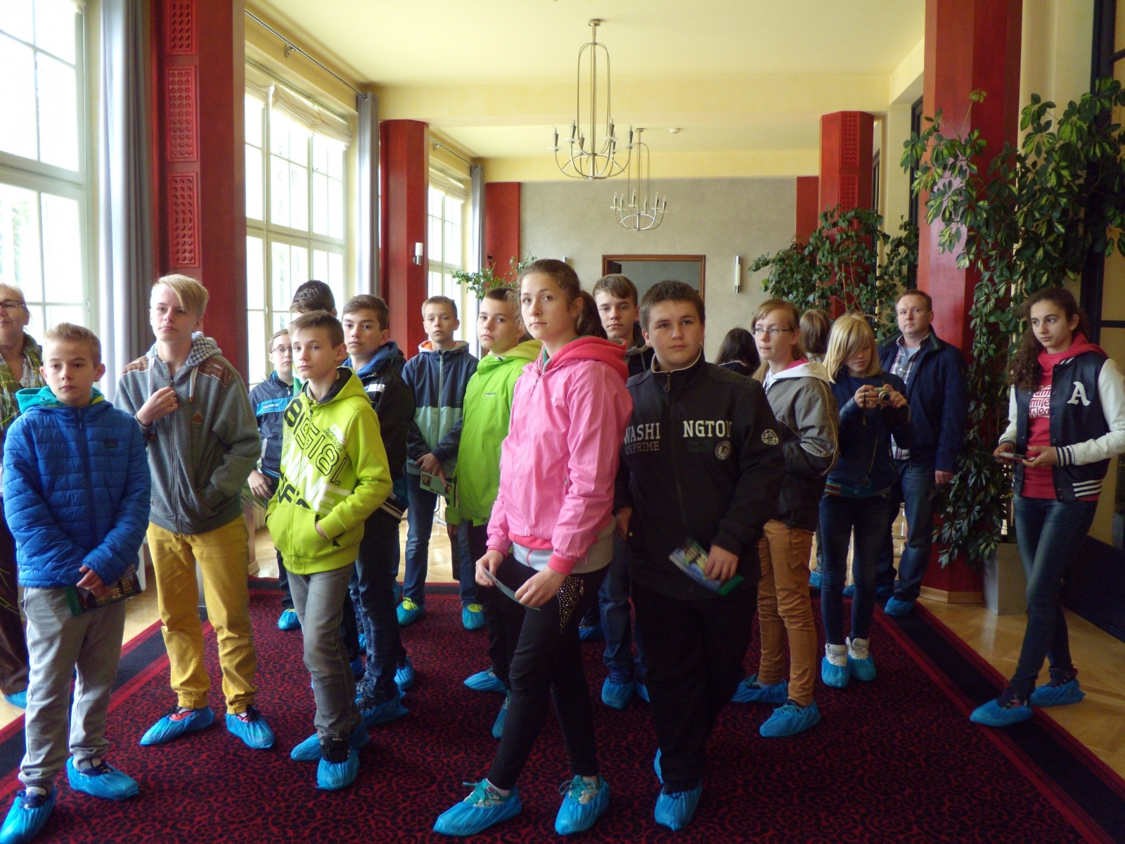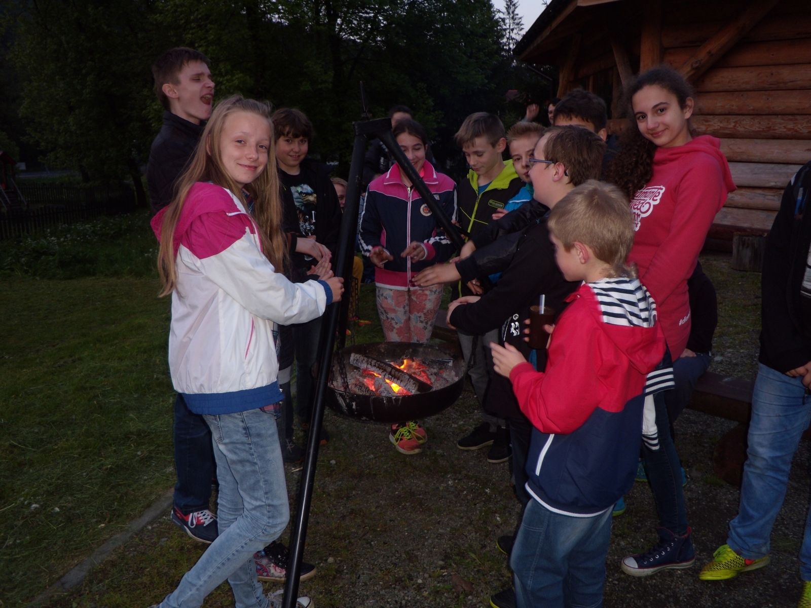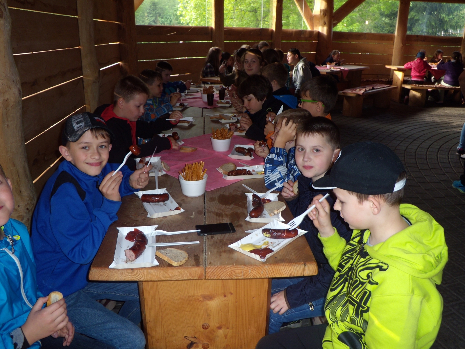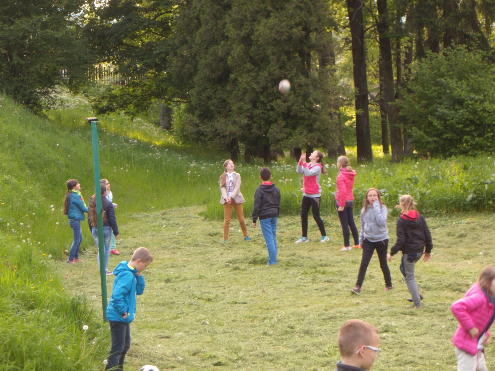 W czwartkowy poranek zwiedzanie rozpoczęliśmy od zobaczenia zapory Wisła Czarne, która została usytuowana w miejscu połączenia dwóch potoków źródłowych rzeki Wisły, wypływających z terenu ścisłego rezerwatu przyrody „Barania Góra”. Od strony tamy podziwialiśmy Pałac Prezydenta Rzeczypospolitej Polskiej w Wiśle, który usytuowany jest na wzgórzu. Około południa zamek podziwialiśmy już z bliska, zwiedzając jego piękne wnętrza oraz olbrzymi ogród z siłownią prezydencką i kaplicą. Zamek został wybudowany w latach 1929-1931 jako dar dla ówczesnego Prezydenta RP – Ignacego Mościckiego. Kolejnym punktem wycieczki była wizyta na skoczni narciarskiej im. Adama Małysza w Wiśle-Malince, jednej z dwóch dużych skoczni w Polsce. Nie lada gratką okazał się przejazd wyciągiem krzesełkowym na skocznię, podczas którego oglądaliśmy piękne widoki Beskidu Śląskiego. Wieczorem personel ośrodka przygotował dla nas prawdziwą niespodziankę – kolację w chacie grillowej. Na olbrzymim palenisku pieczono nam kiełbaski, które w takich warunkach smakowały wyśmienicie. Mieliśmy również ciepłą herbatkę, a na deser pyszną szarlotkę. Po poczęstunku, pełni energii rozegraliśmy mecze piłki nożnej i siatkowej oraz korzystaliśmy z placu zabaw.