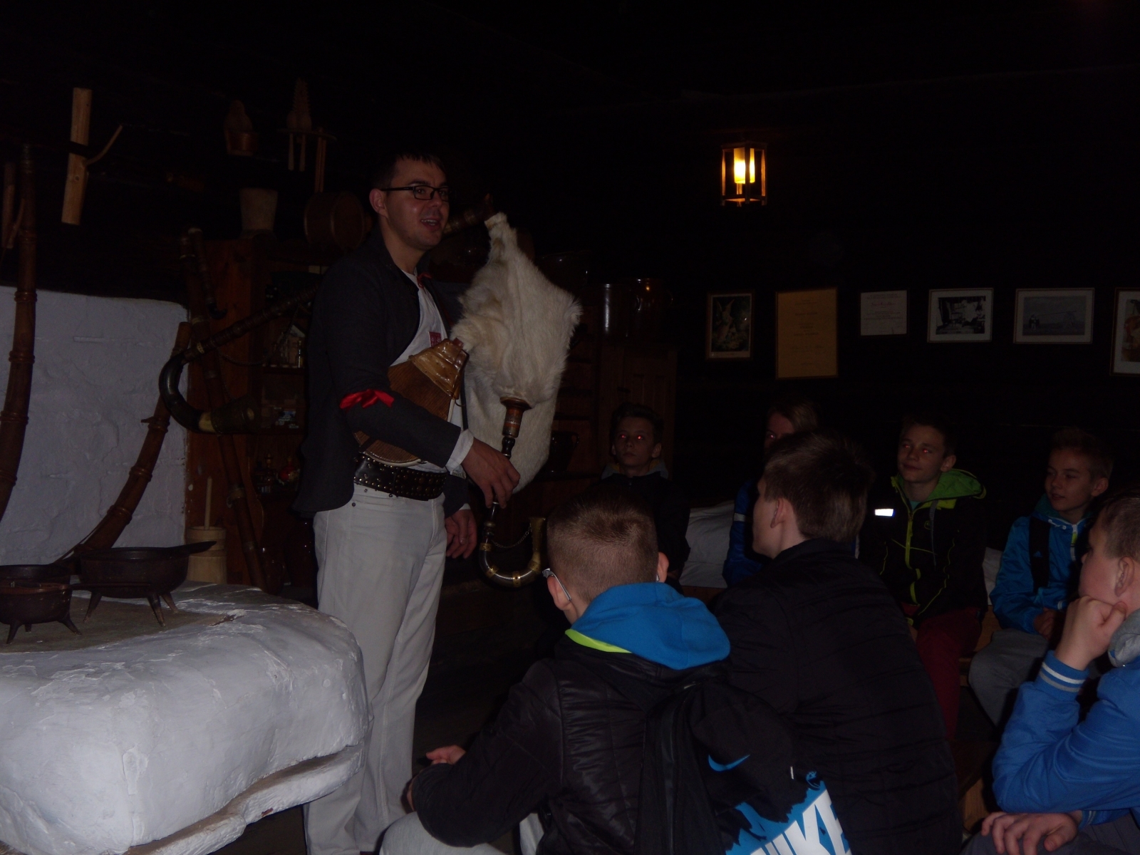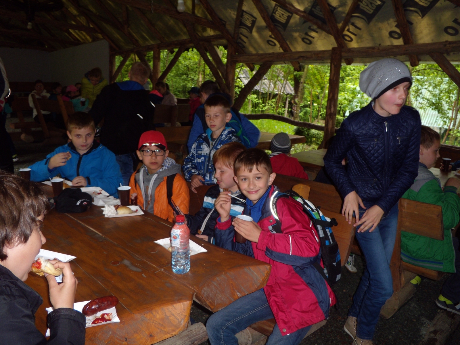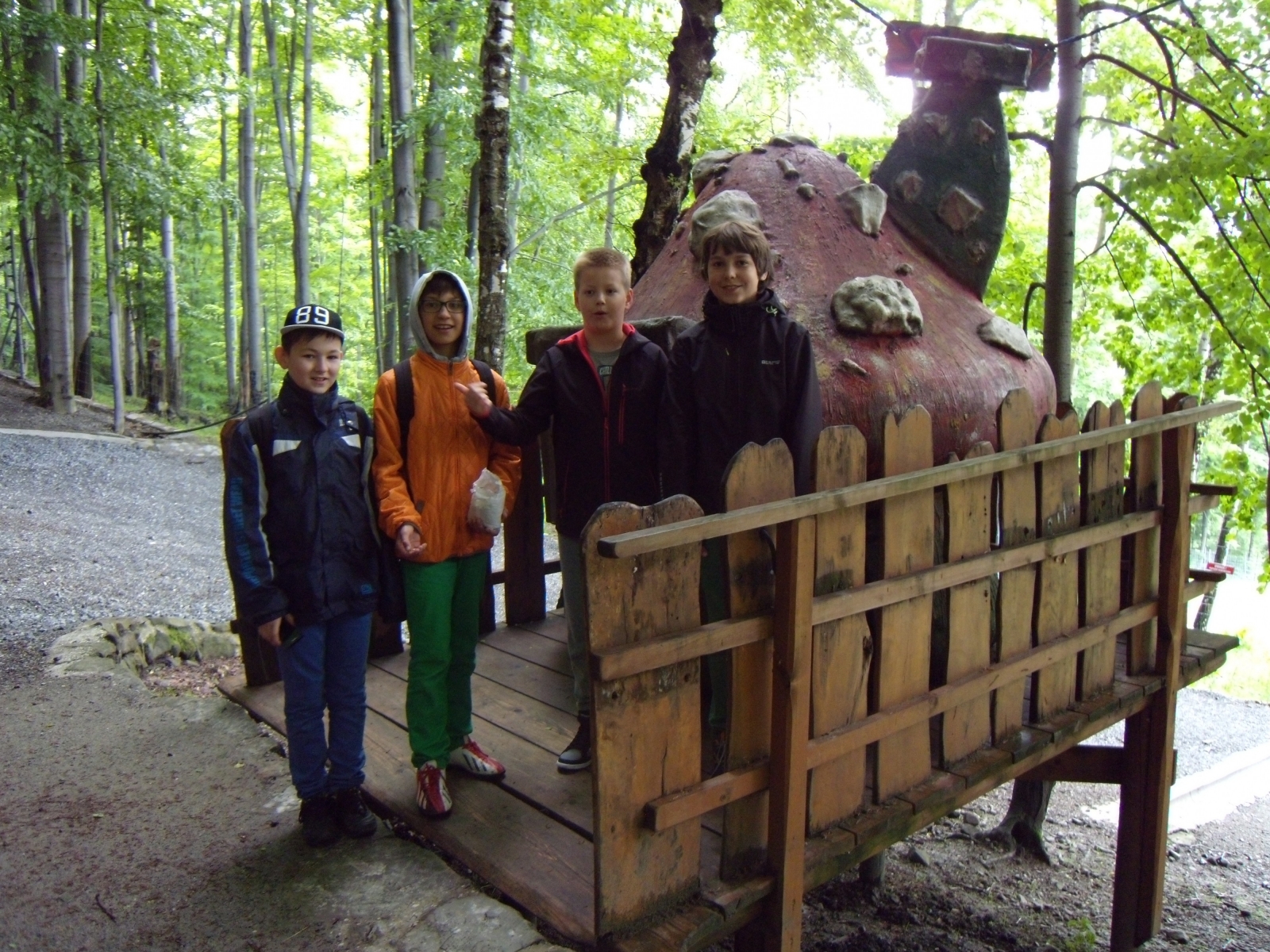 Wtorkowy dzień rozpoczęliśmy od wizyty w Chacie Kawuloka - chacie góralskiej z XIX wieku. Przesympatyczny właściciel, Jasiek opowiadał nam o dawnych dziejach tutejszych górali przeplatając je często dowcipami i grą na różnych instrumentach muzycznych. Kolejnym punktem programu było odwiedzenie Ośrodka Edukacji Ekologicznej w Istebnej. Najważniejszym elementem ośrodka jest diorama, przedstawiająca panoramę beskidzką z najbardziej charakterystycznymi dla tutejszej przyrody gatunkami flory i fauny. Dalej dotarliśmy do Leśnego Grodu w Milówce - ogrodu botanicznego w którym zobaczyliśmy wiele gatunków drzew i krzewów, a także mini-zoo. Najbardziej podobało się nam karmienie owieczek! Na zakończenie pobytu w tym uroczym miejscu mieliśmy poczęstunek - każdy z nas samodzielnie piekł kiełbaskę na grillu. Po południu czekała na nas kolejna atrakcja – dwie godziny wodnych szaleństw w Parku Wodnym Tropikana w Hotelu Gołębiewskim. Wydawać się mogło, że po całym dniu wrażeń byliśmy już bardzo zmęczeni, aczkolwiek po kolacji z niecierpliwością czekaliśmy na dyskotekę. Ach co to była za wspaniała zabawa!