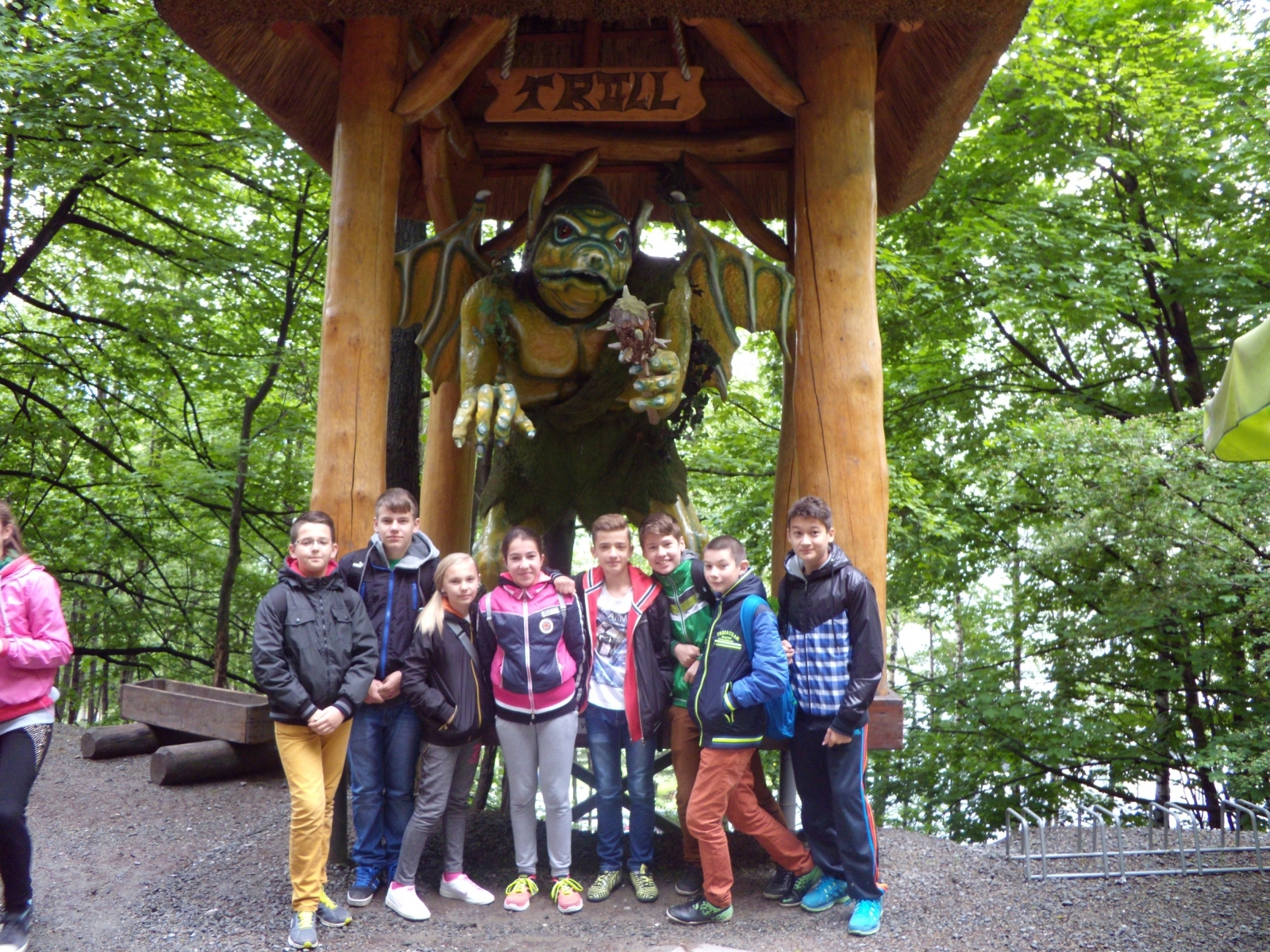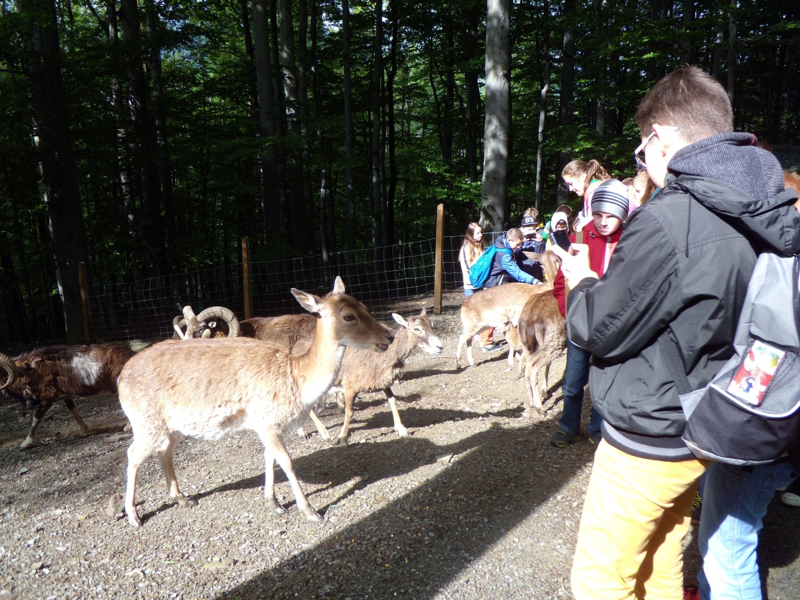 Trzeciego dnia odwiedziliśmy niezwykłe miejsce: Leśny Park Niespodzianek w Ustroniu, gdzie na samym wejściu przywitał nas olbrzymi Troll, a zaraz po nim daniele i muflony, które dosłownie jadły nam z ręki i spacerowały tuż obok nas. To było niesamowite doświadczenie! Mogliśmy fotografować zwierzęta praktycznie w naturalnych warunkach! Były tam żubry, jelenie, sarny, dziki, żbiki, czy jenoty. Jednak największą atrakcję tego niekonwencjonalnego ogrodu zoologicznego była sokolarnia i sowiarnia, gdzie o godz. 11.00 zobaczyliśmy pokaz lotów ptaków drapieżnych. Następnie udaliśmy się do pijalni wód w Parku Zdrojowym, a po skosztowaniu leczniczych wód spacerkiem poszliśmy w stronę autokaru podziwiając panoramę uzdrowiska Ustroń. Po pysznym obiedzie wybraliśmy się jeszcze raz do centrum Wisły. Odwiedziliśmy Muzeum Narciarstwa, gdzie zobaczyliśmy bogatą kolekcję nart, a wśród eksponatów narty Adama Małysza, na których zdobył Mistrzostwo Polski. Następnie po raz drugi zawitaliśmy do Parku Wodnego Tropikana i ćwiczyliśmy umiejętności pływackie. Wieczorem odbył się seans filmowy.