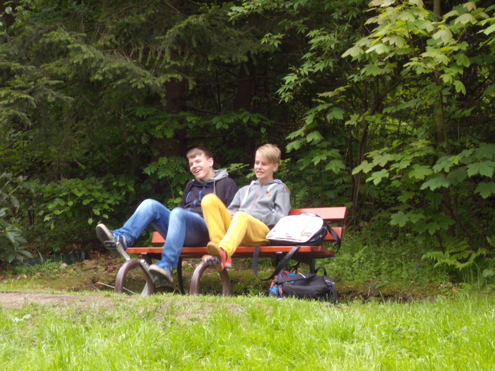 Po przyjeździe, pysznym obiedzie i rozpakowaniu walizek wybraliśmy się do centrum Wisły, celem bliższego zapoznania się z okolicą. Odwiedziliśmy Dom Zdrojowy, gdzie znajduję się czekoladowa figura Adama Małysza – najsłynniejszego mieszkańca Wisły. Następnie spacerkiem udaliśmy się do Zabytkowego Parku Przygód, w którym mogliśmy zobaczyć miniatury charakterystycznych budowli położonych nad rzeką Wisłą. Wśród nich był m.in. Wawel, Zamek Królewski w Warszawie, czy Żuraw w Gdańsku.
