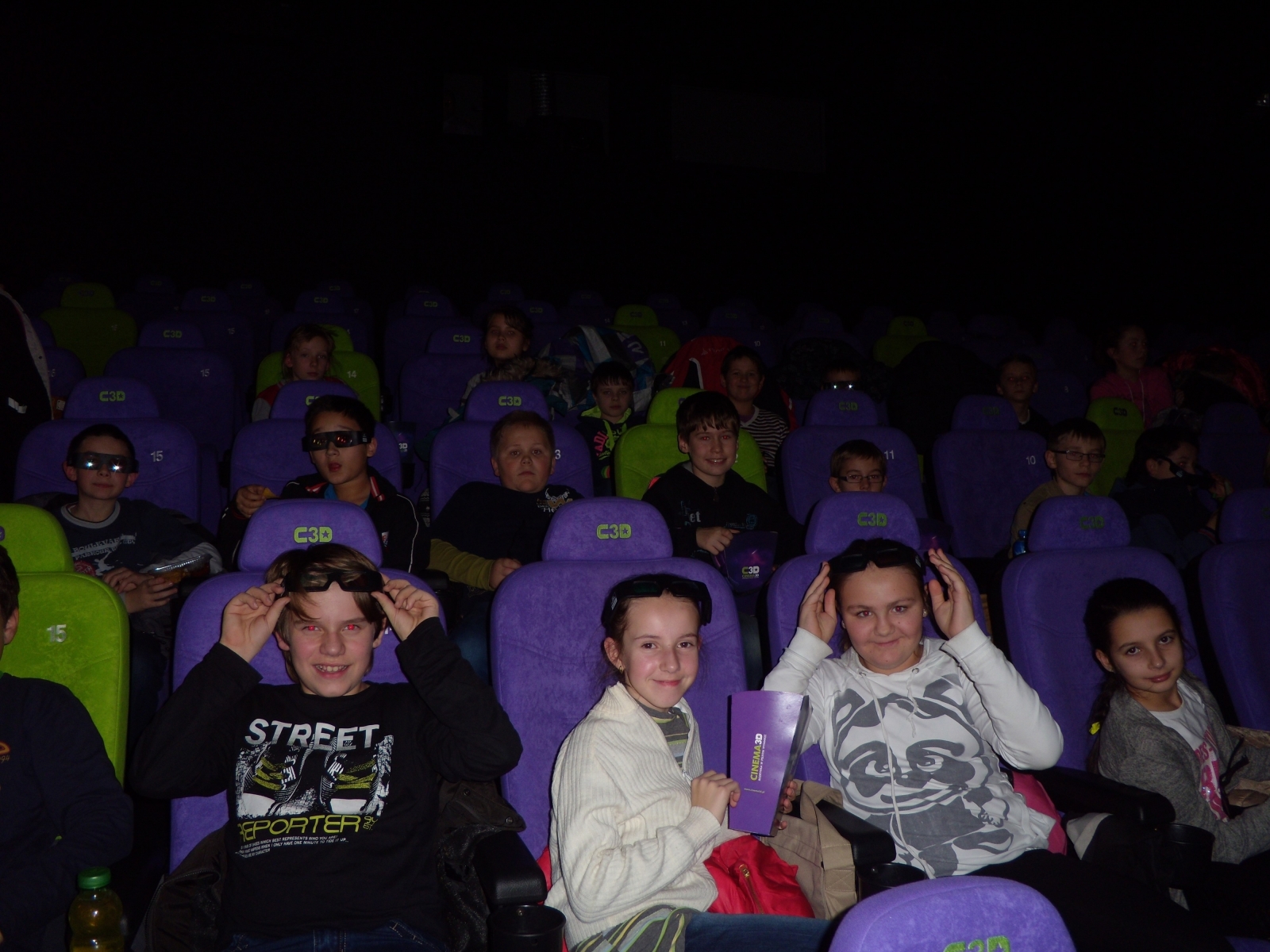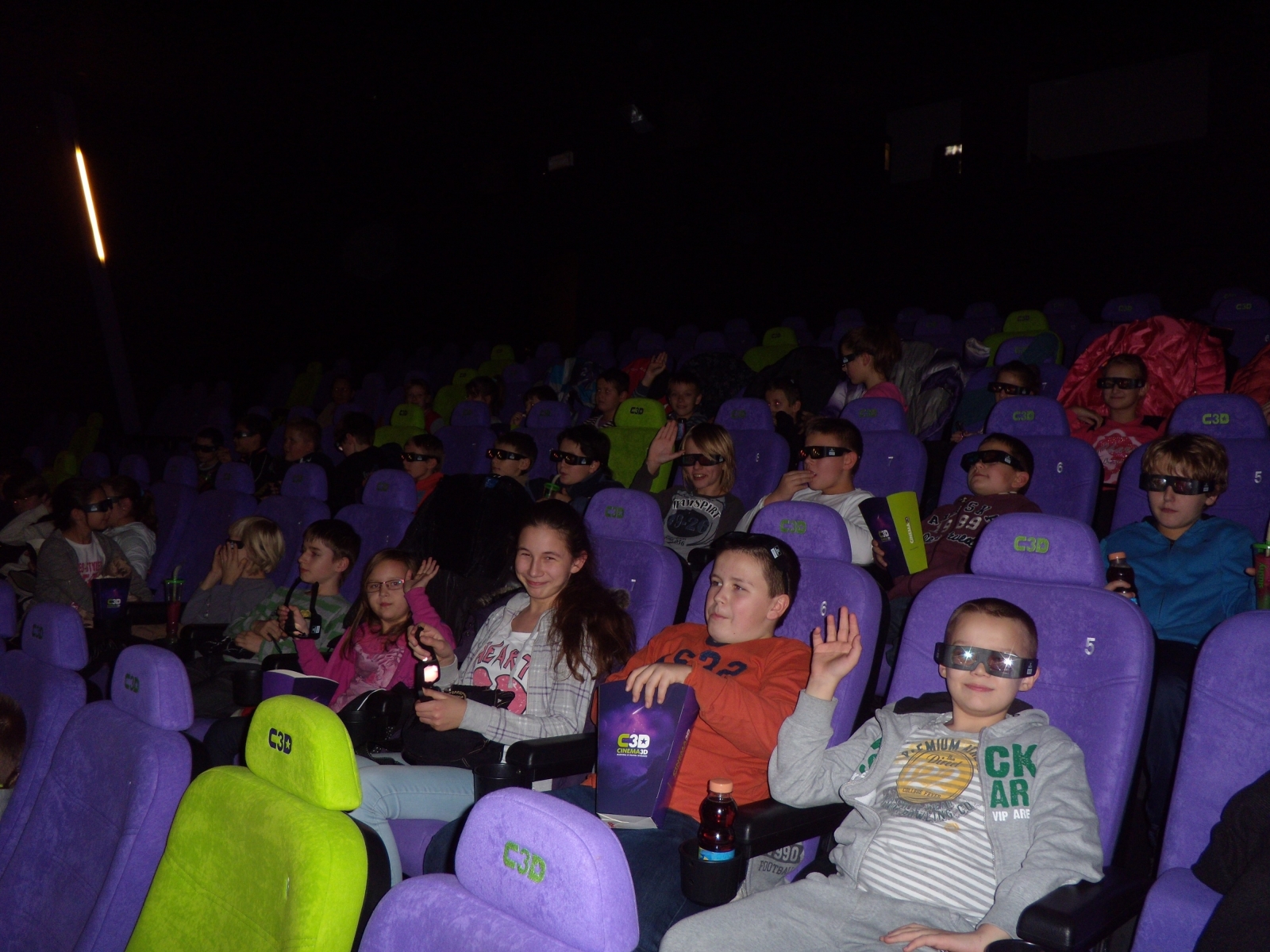 Zadowoleni, z okularami na nosach zasiedliśmy w wygodnych fotelach niecierpliwie czekając na start filmu. „Ratujmy mikołaja” jest opowieścią o elfie Bernardzie, który udaje się w ratunkową misję, aby uratować Świętego Mikołaja i święta Bożego Narodzenia. Przygody niezdarnego elfa wywołały całą masę zabawnych komplikacji, na sali kinowej co chwilę wybuchał gromki śmiech dzieci.